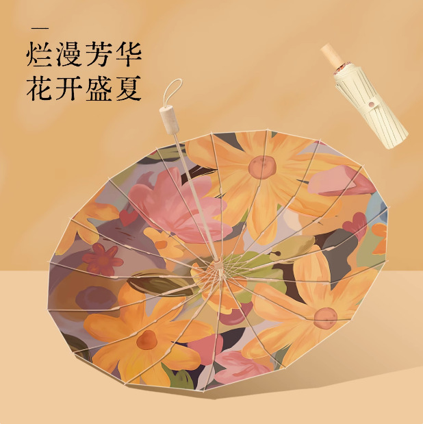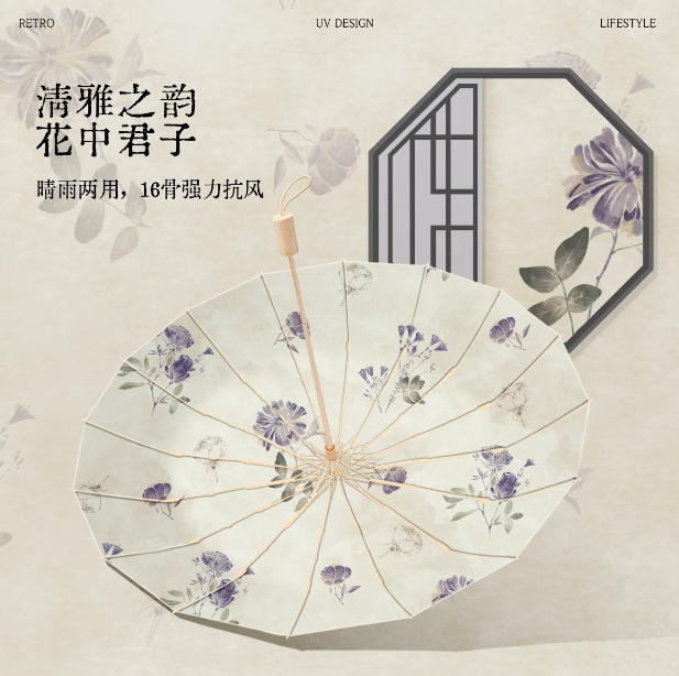 16骨雨伞大号抗风加固复古伞晴雨两用女折叠高级遮阳伞防晒双人伞
