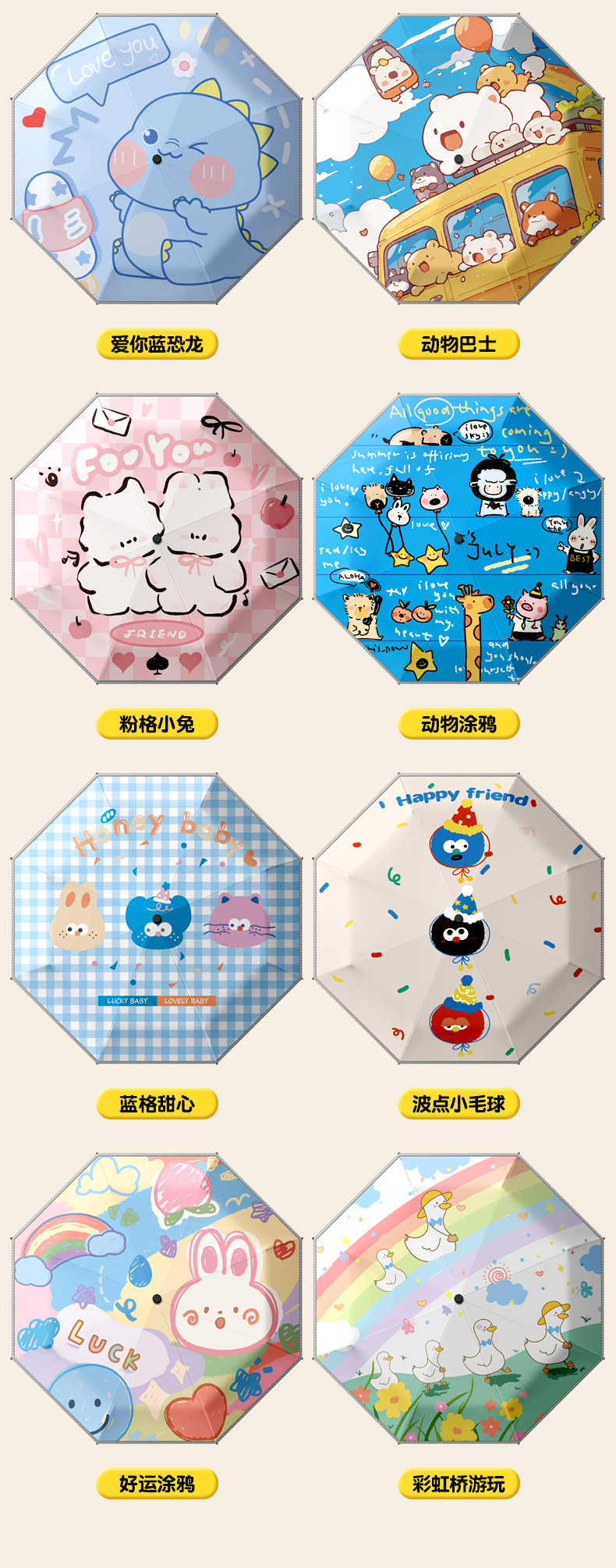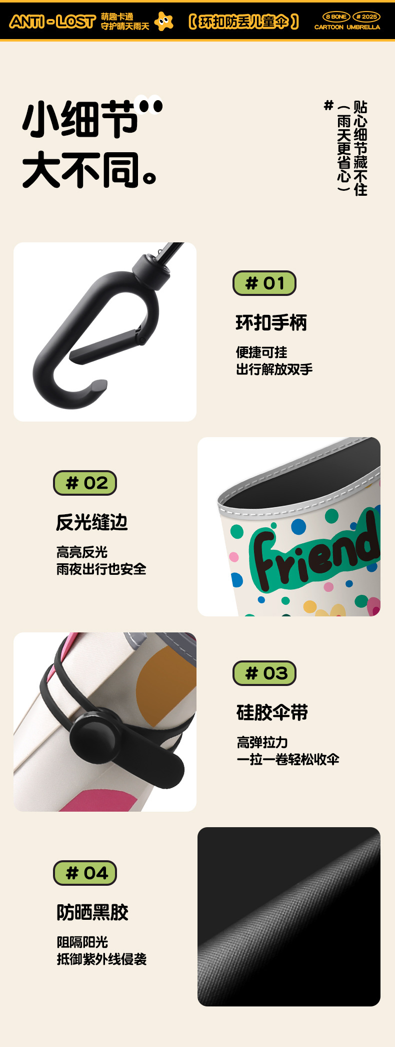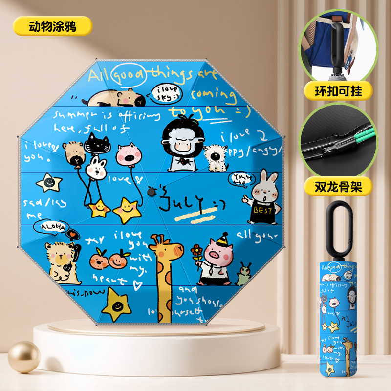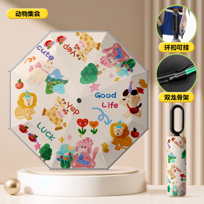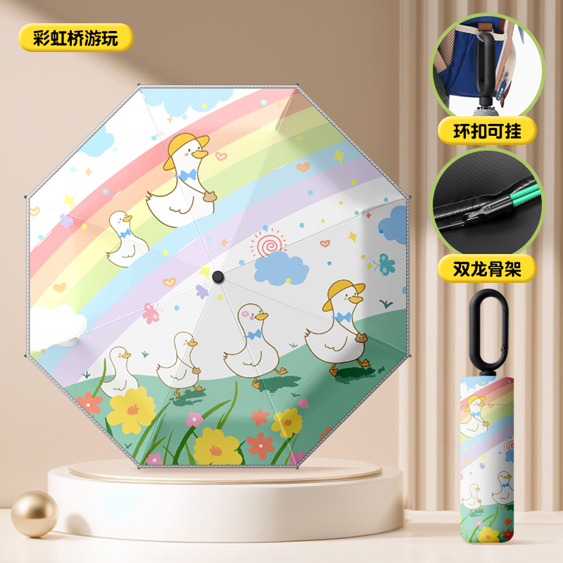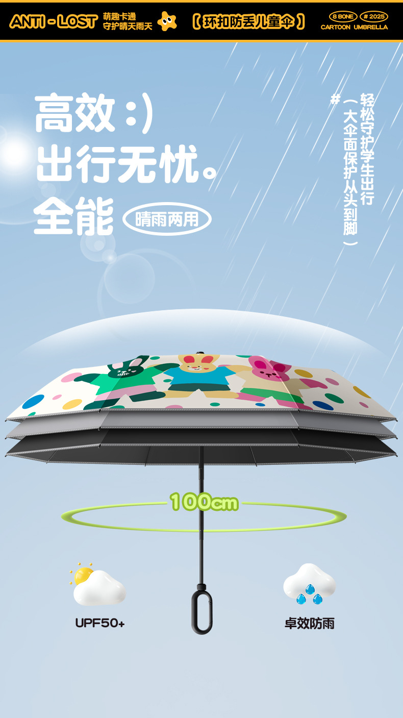 环扣儿童雨伞手动折叠小学生男女孩上学专用晴雨两用防晒防紫外线