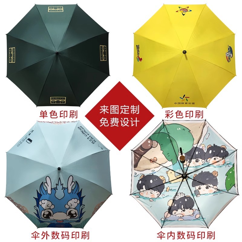 长柄雨伞定制logo满版明星印图案高端商务酒店专用订制银行广告伞