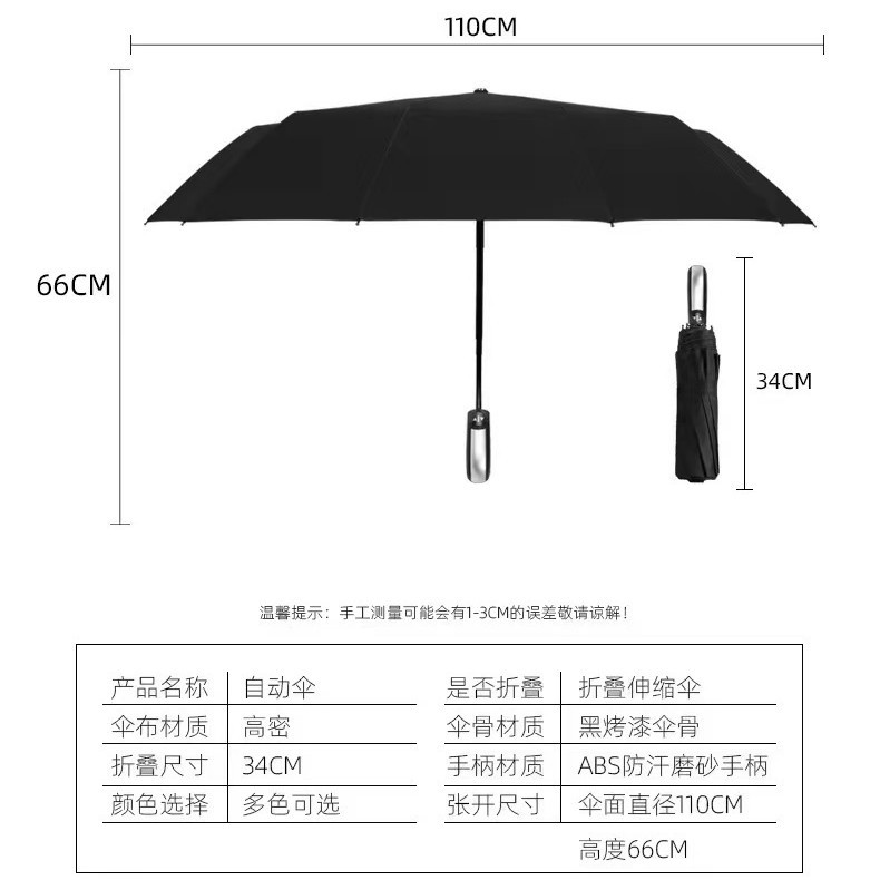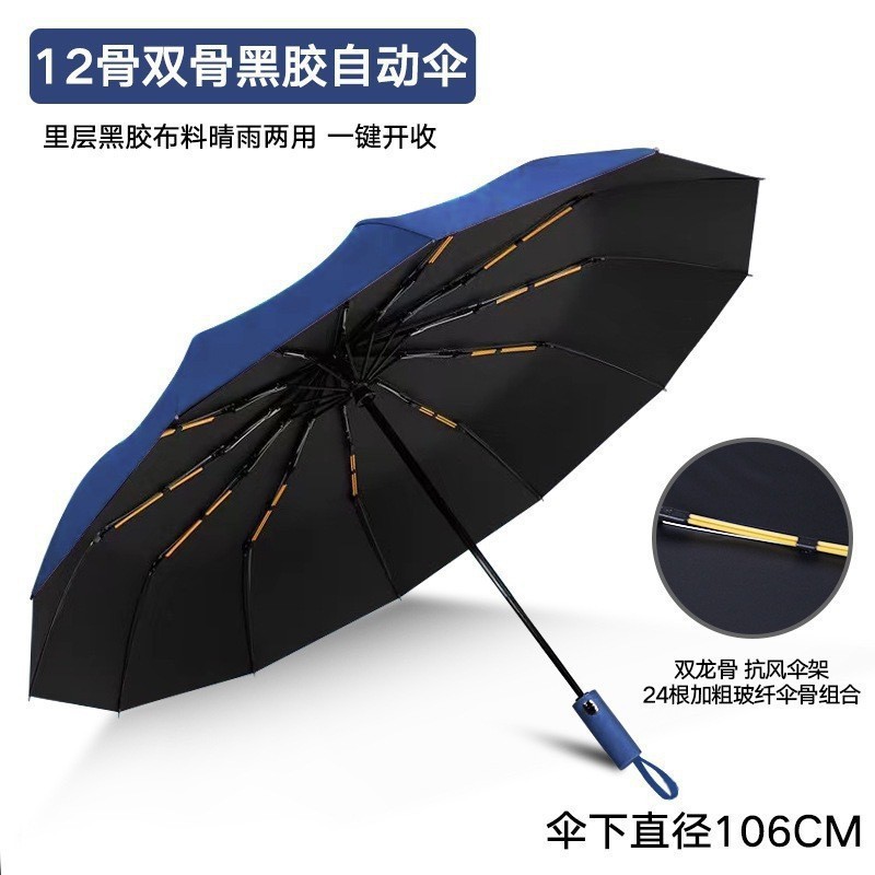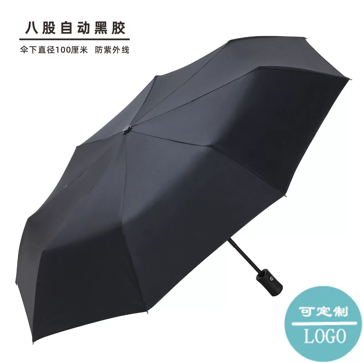 十骨全自动晴雨伞广告伞加印logo加大商务黑胶防晒三折叠伞礼品太