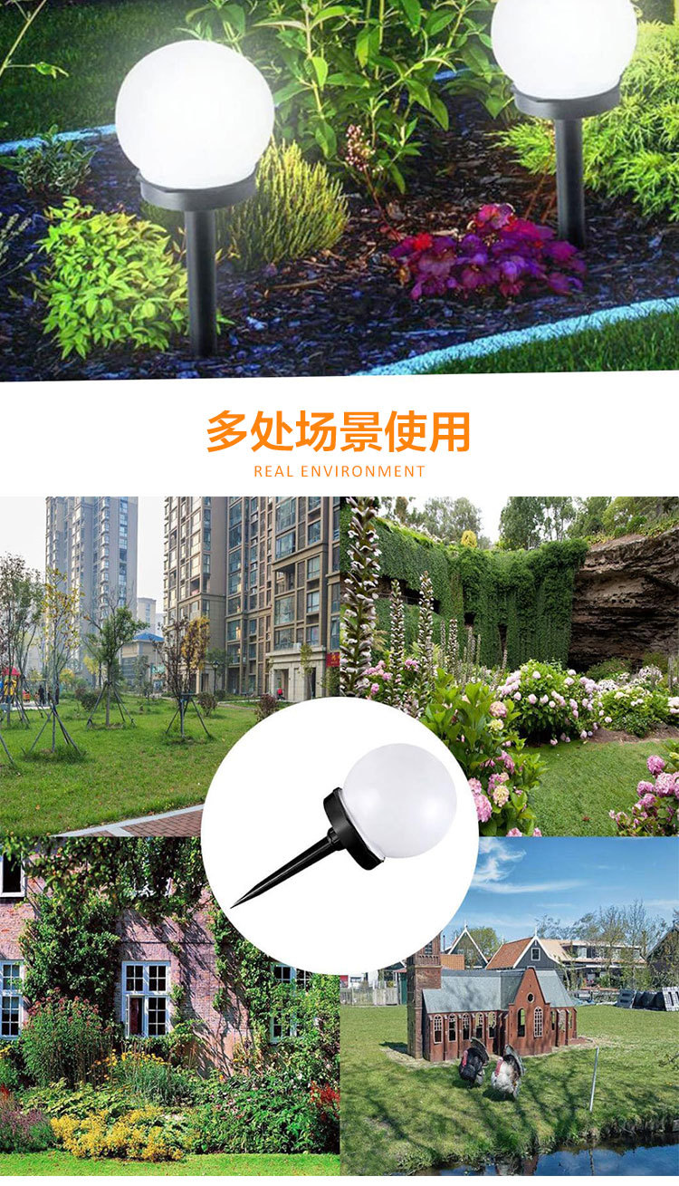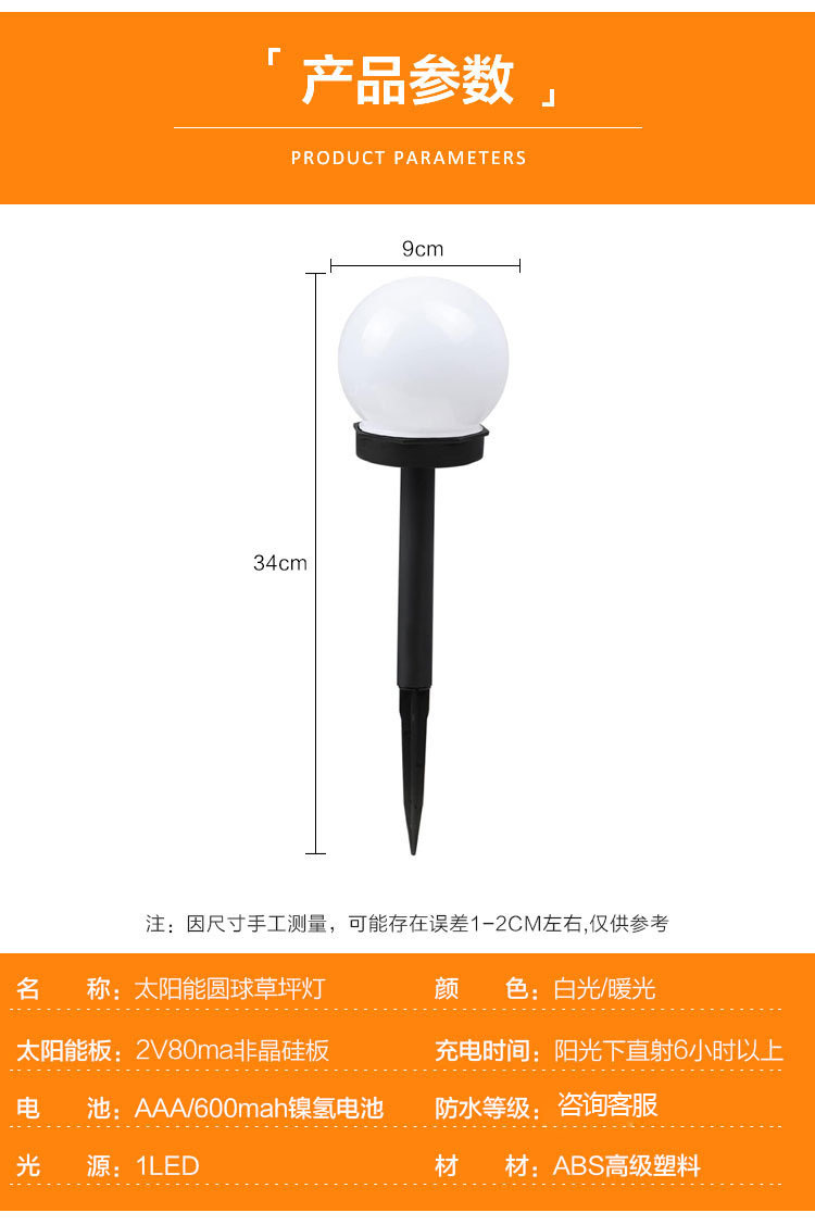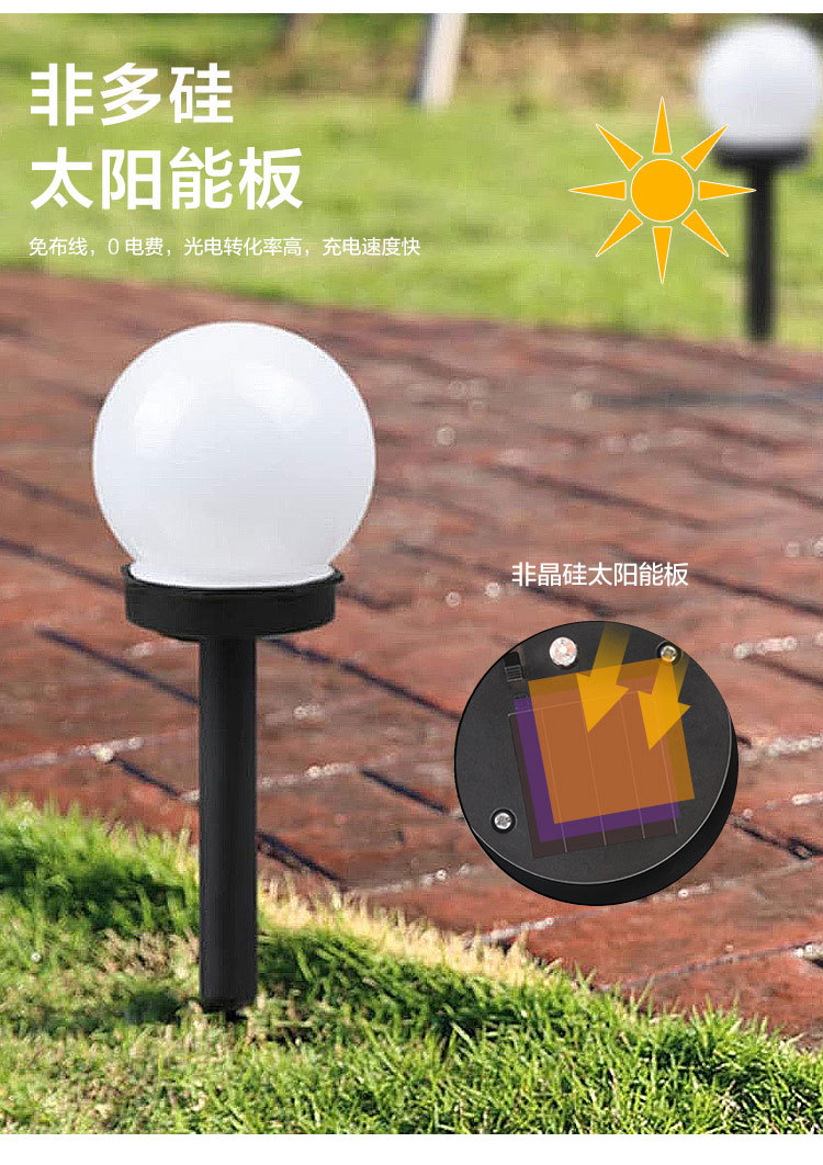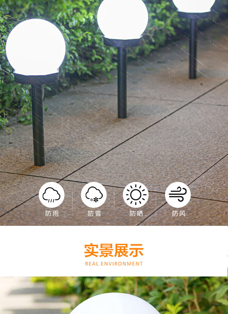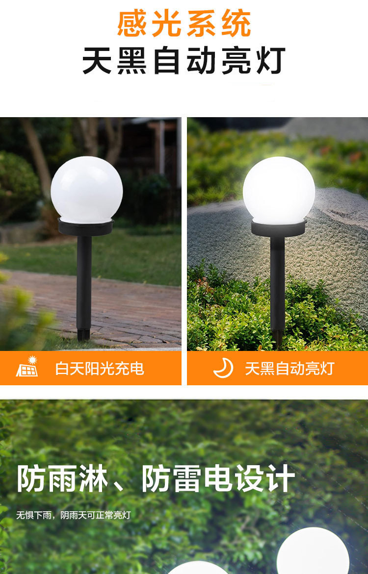 户外太阳能10cm白球地插灯庭院装饰草坪灯防水花园景观灯圆球灯