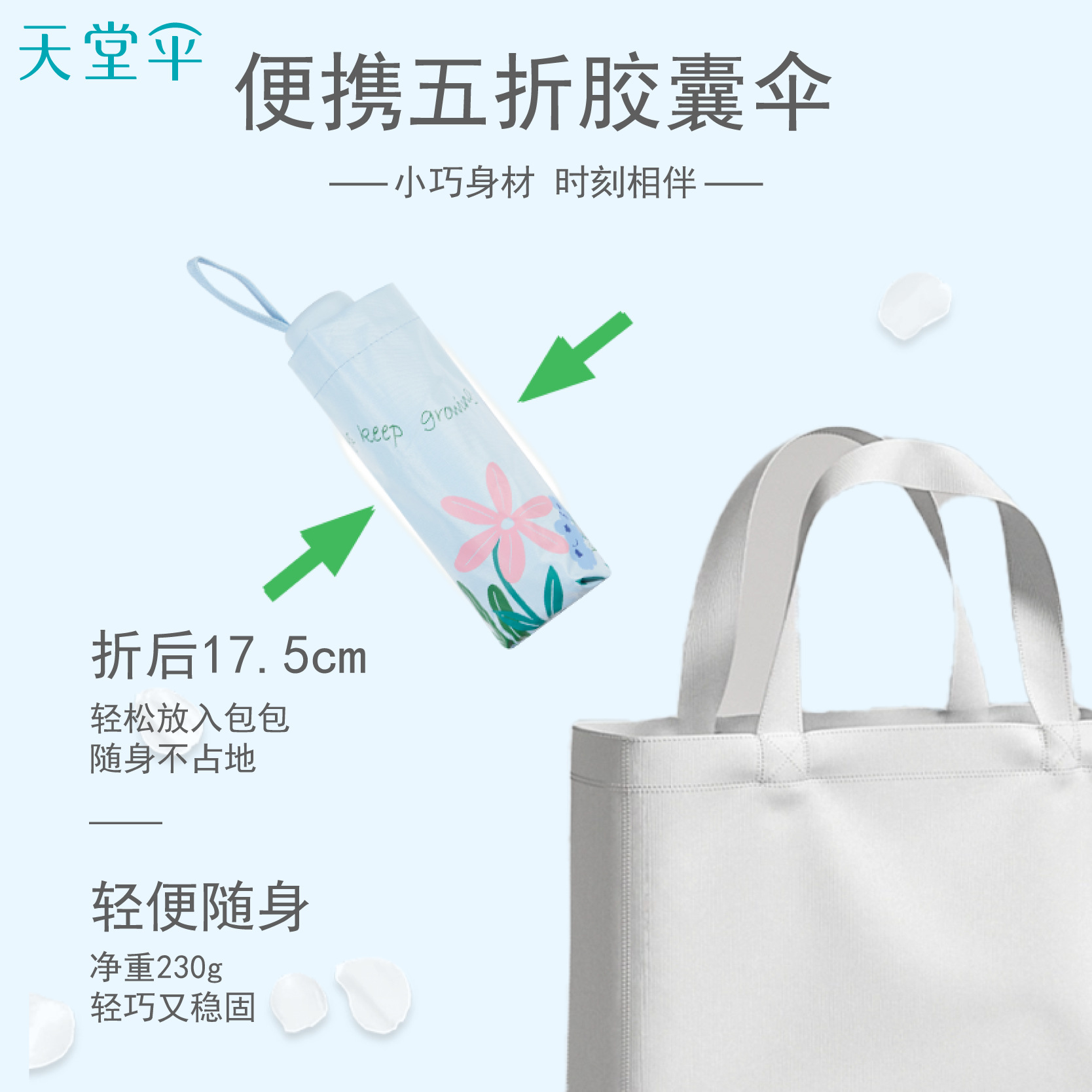天堂伞新品五折向阳而生胶囊伞五折伞超轻防紫外线防晒晴雨两用