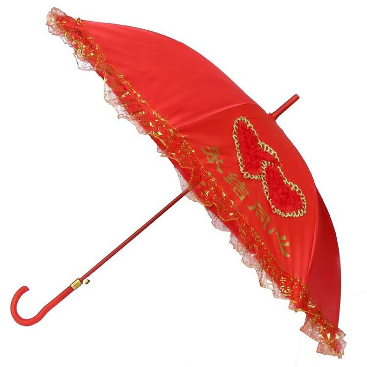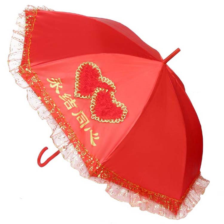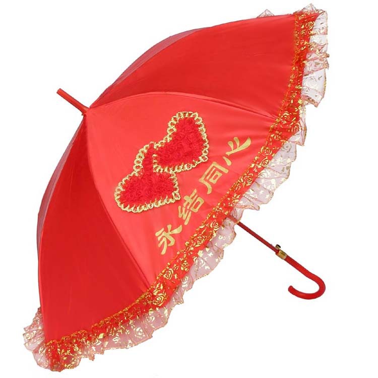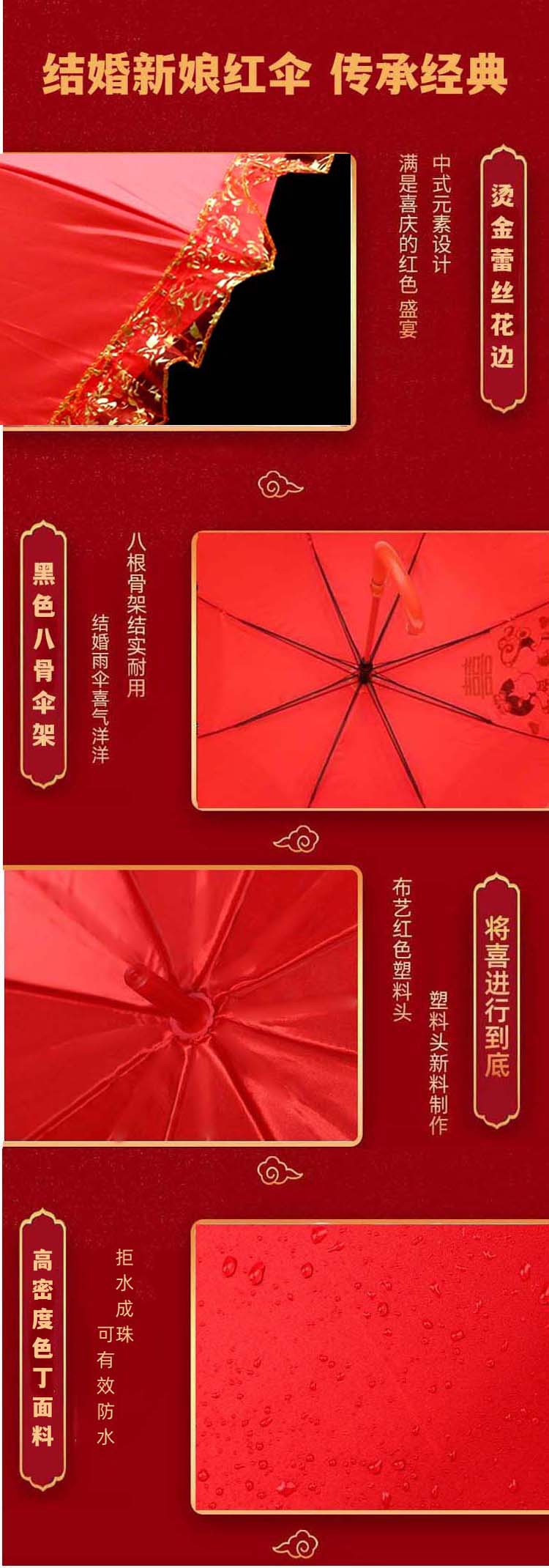 婚庆结婚红色伞婚礼红雨伞新娘伞女方出嫁蕾丝边长柄古风红伞婚伞