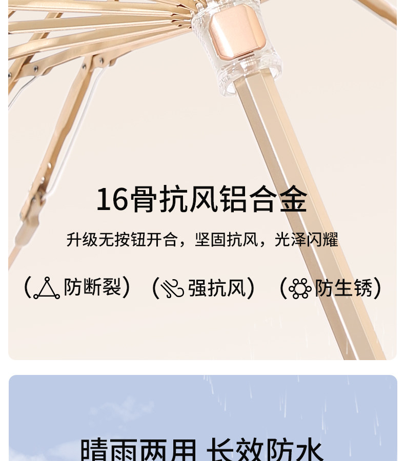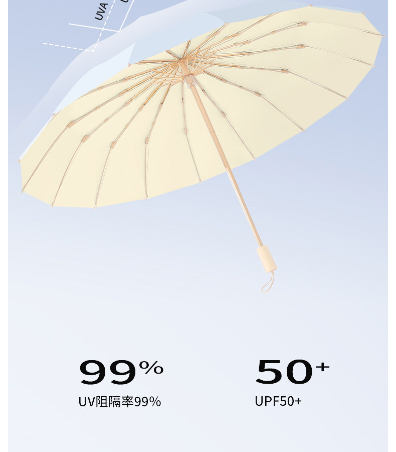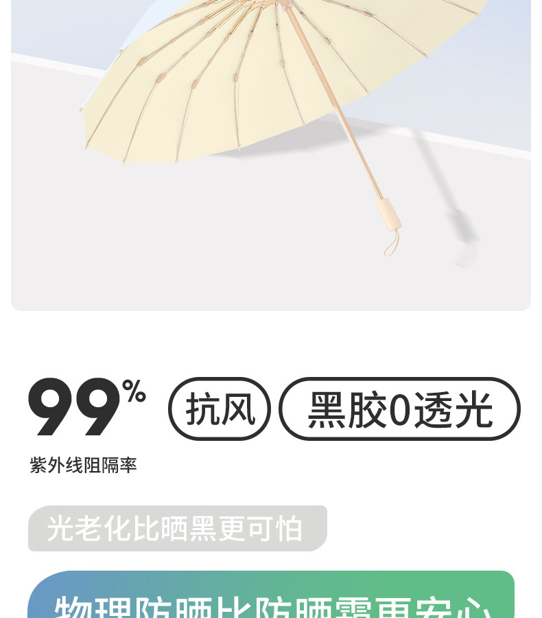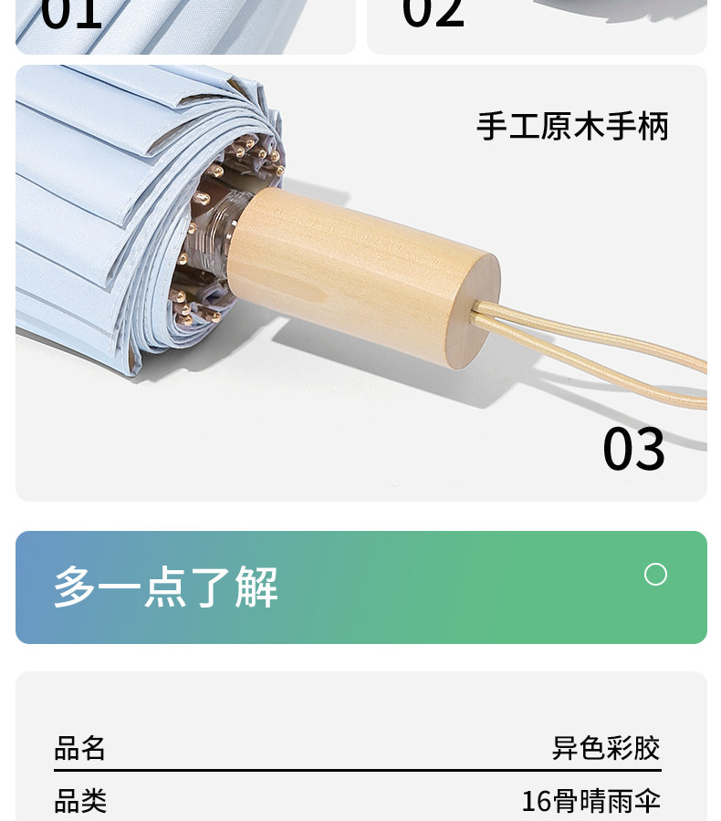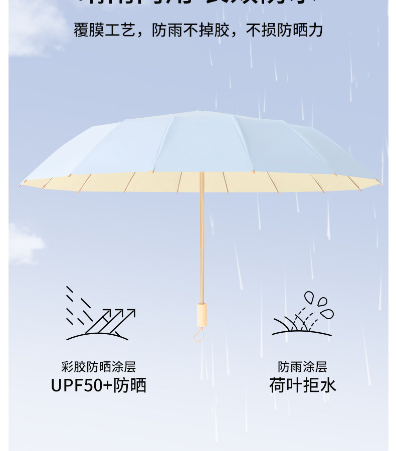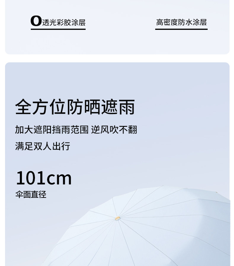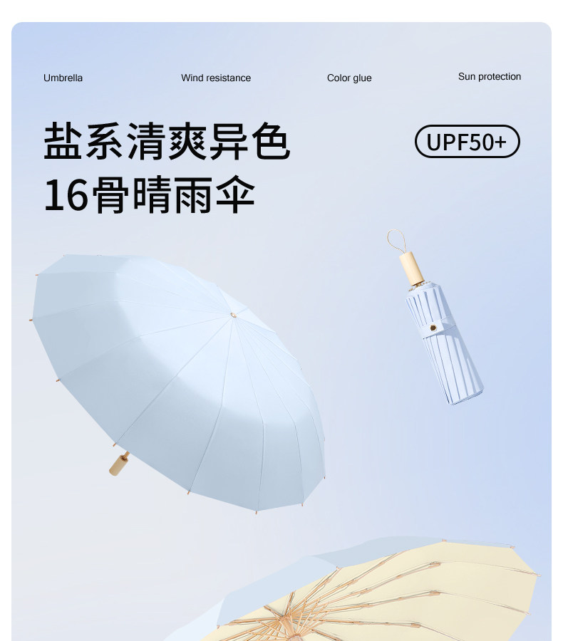 高级感16骨雨伞女晴雨两用彩胶防晒太阳伞防紫外线加大三折遮阳伞