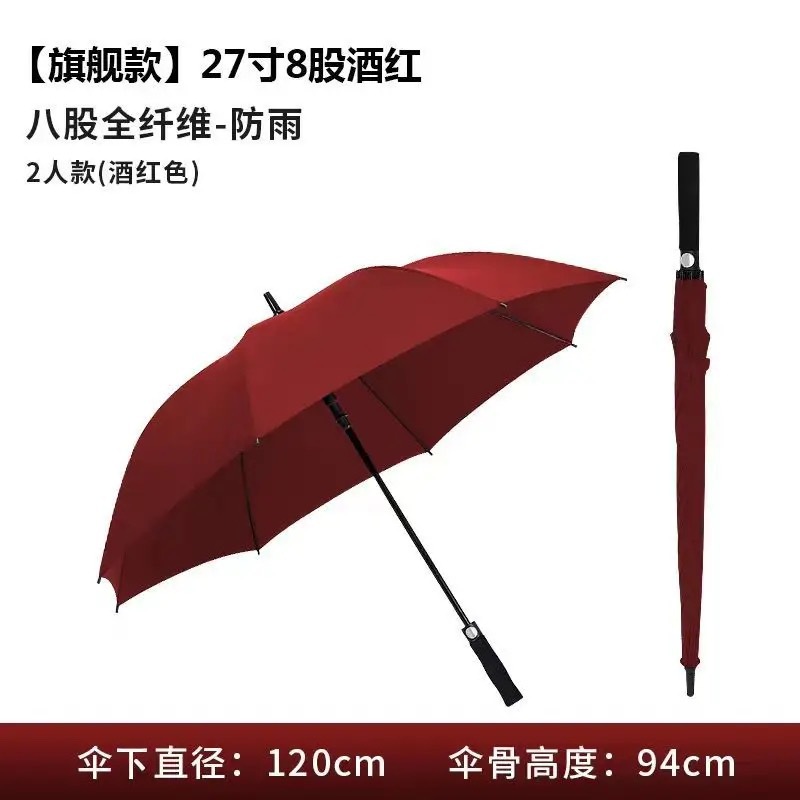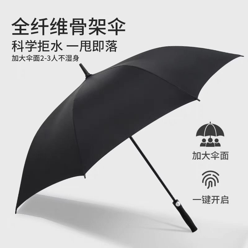 27寸加厚黑胶雨伞加大长柄伞广告礼品伞全纤维直杆高尔夫雨伞批发