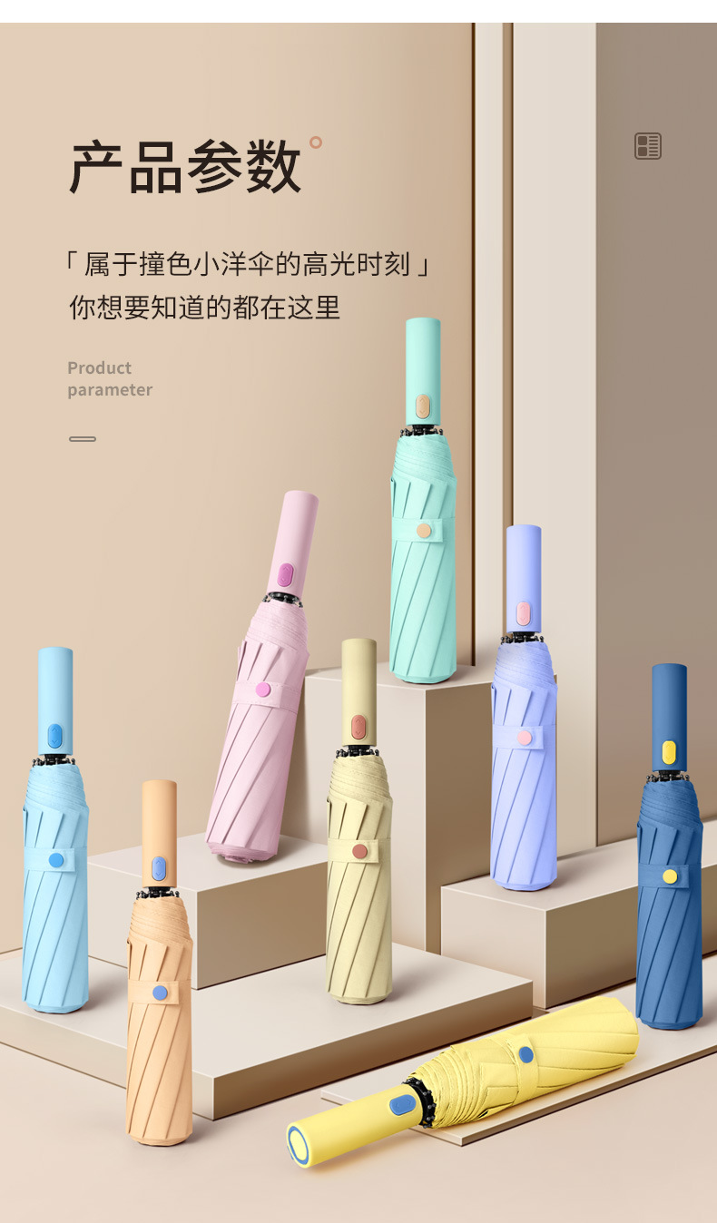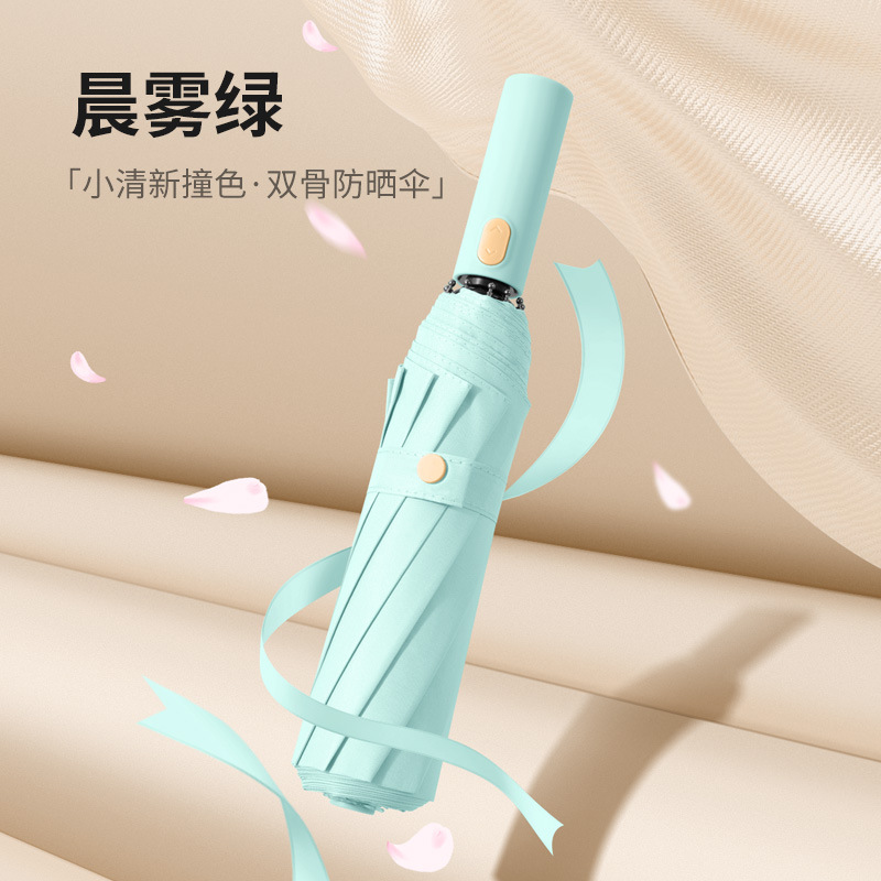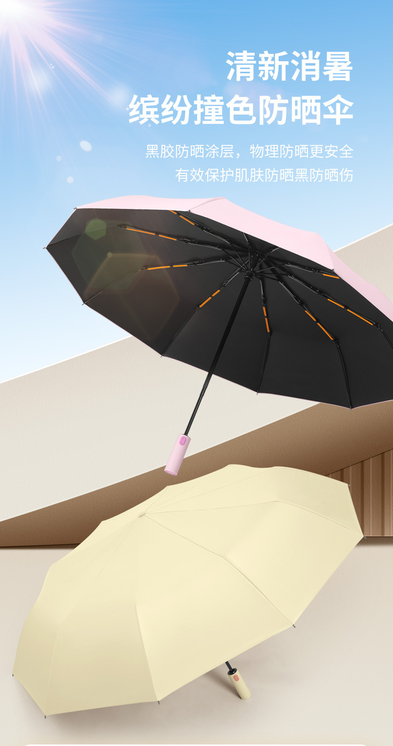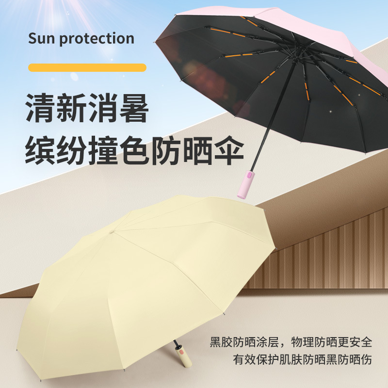 全自动十骨马卡龙色系防紫外线黑胶晴雨两用伞广告批印logo礼品伞