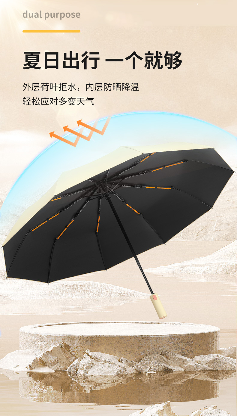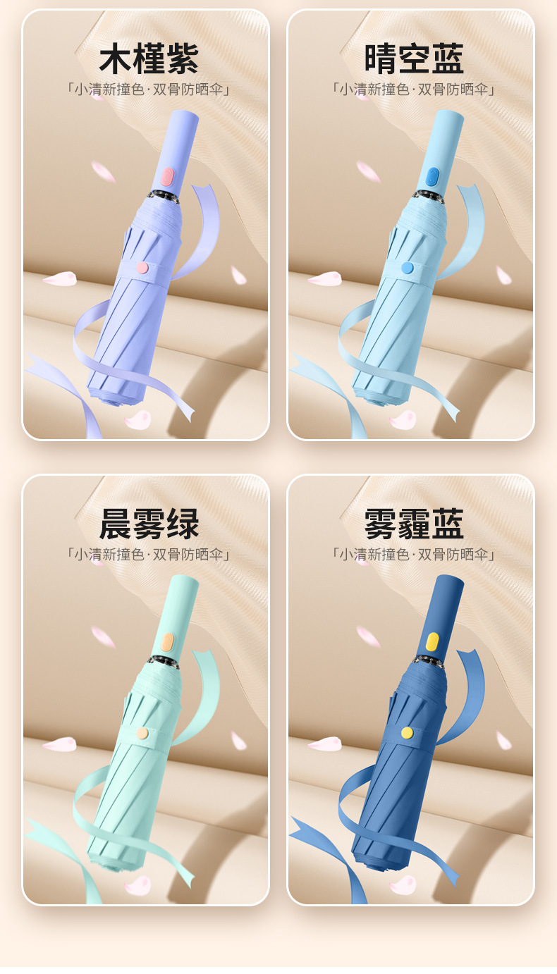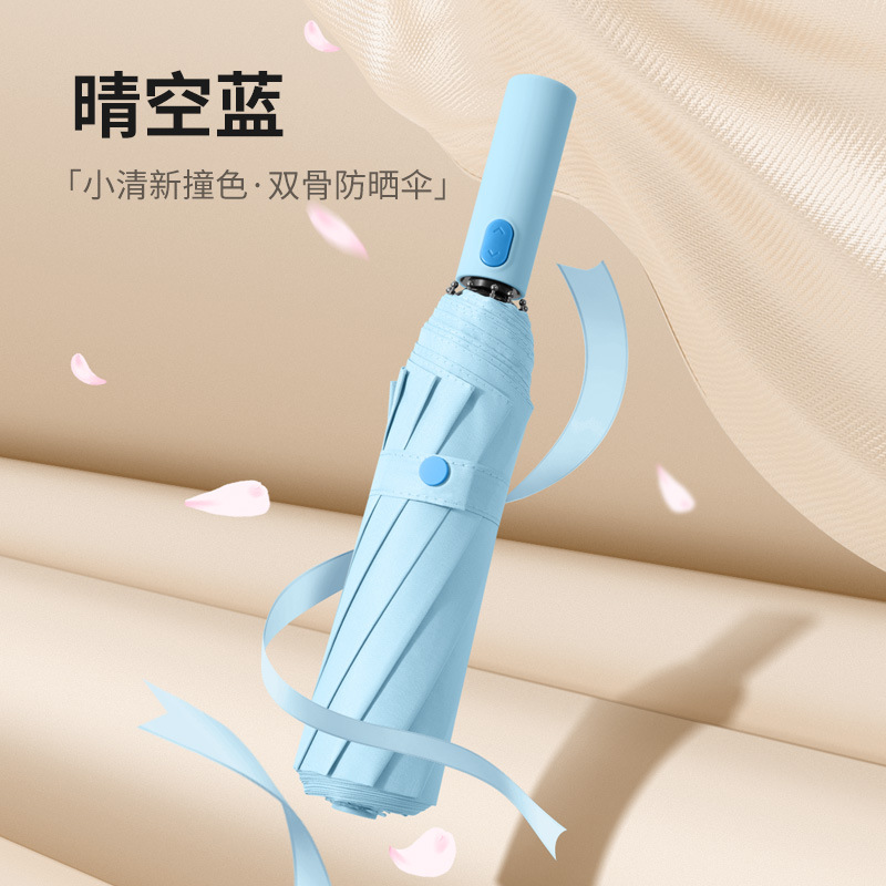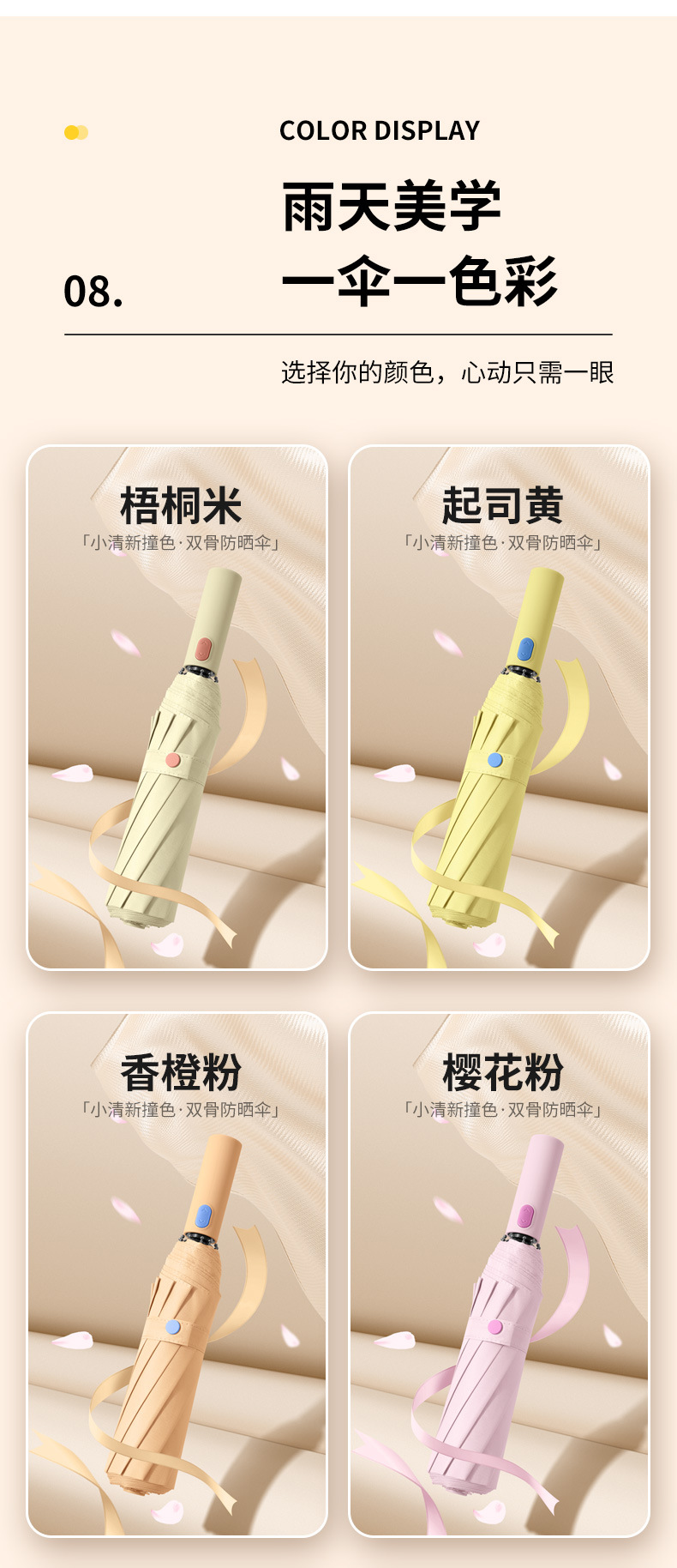 全自动十骨马卡龙色系防紫外线黑胶晴雨两用伞广告批印logo礼品伞