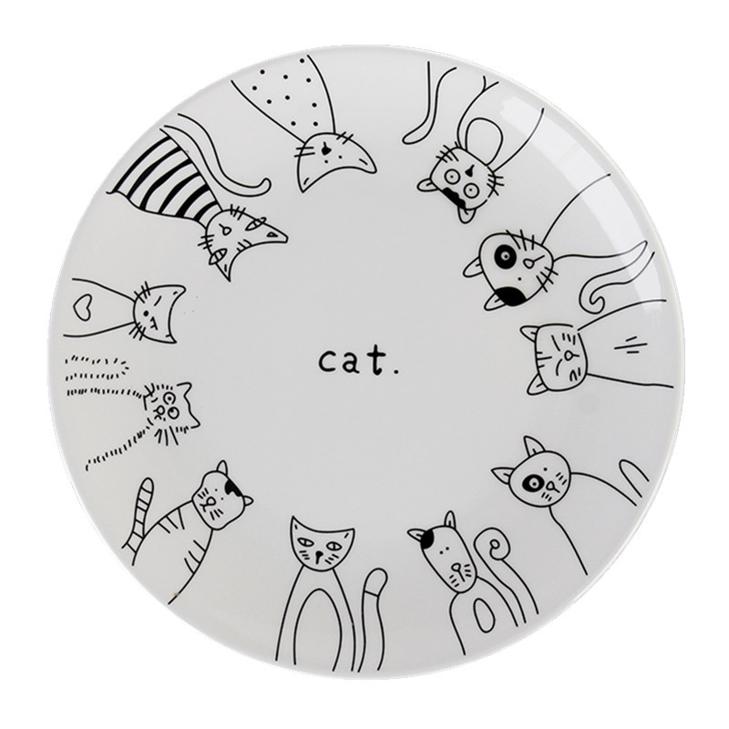 北欧陶瓷餐具猫款早餐盘西餐盘点心盘菜盘子汤碗咖啡杯马克杯勺子