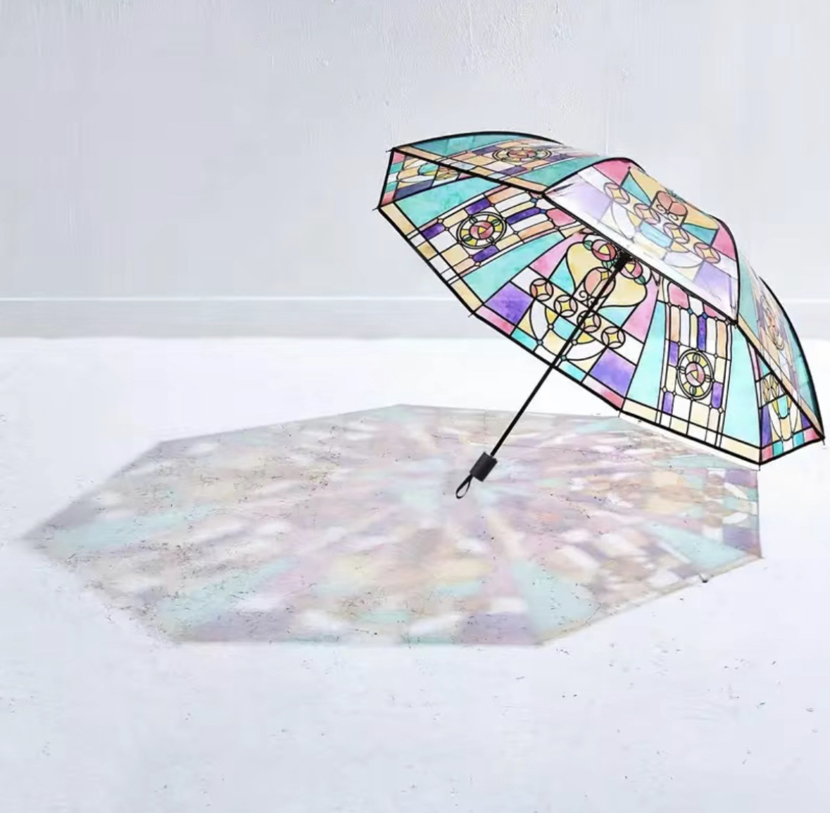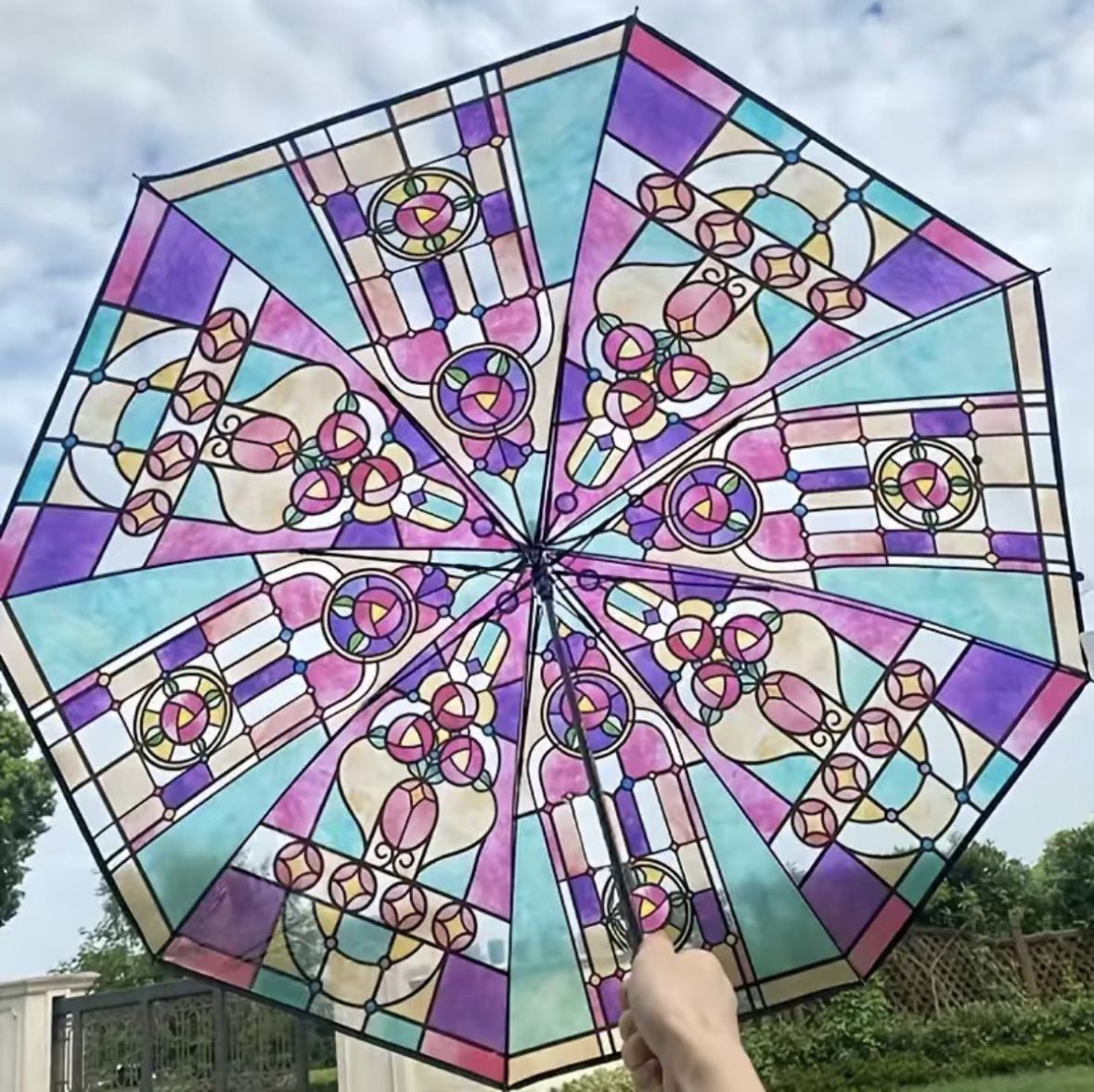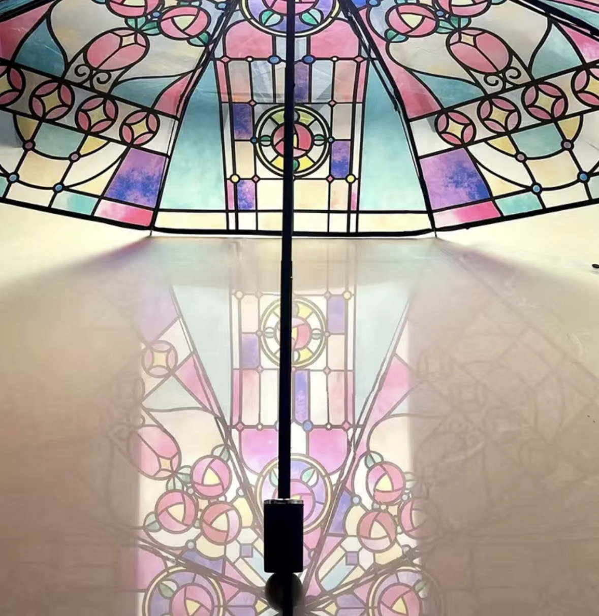 雨伞自动批发日本23寸教堂玻璃伞透明POE直杆长柄晴雨伞定图案