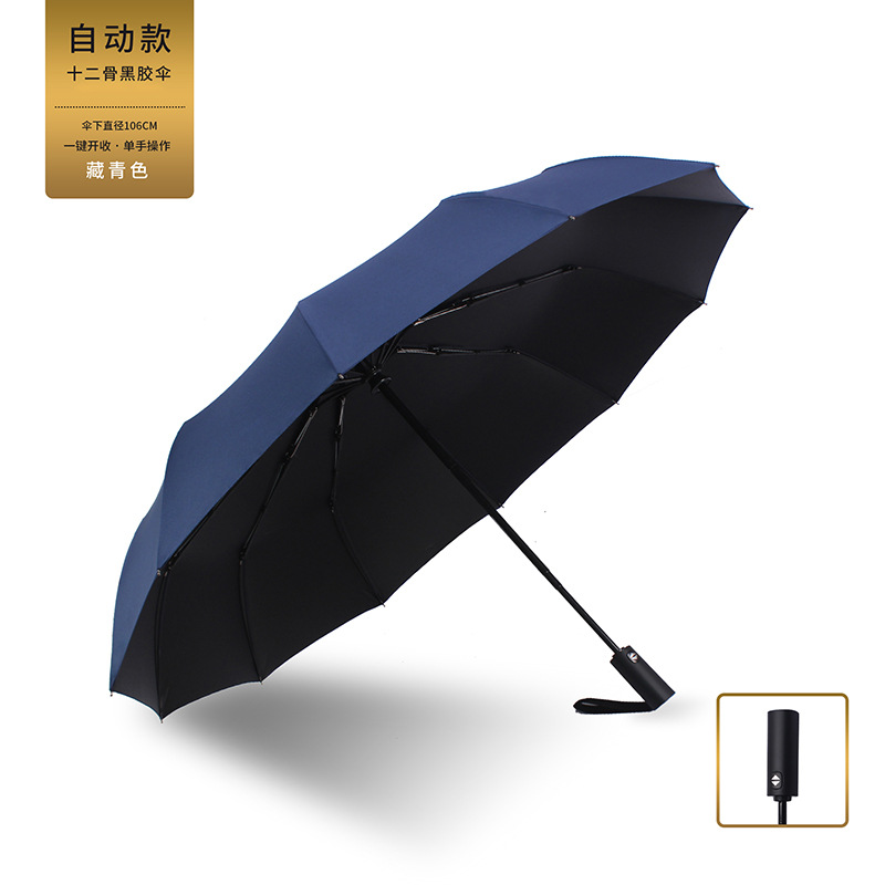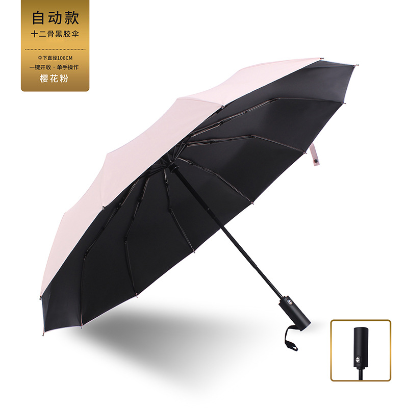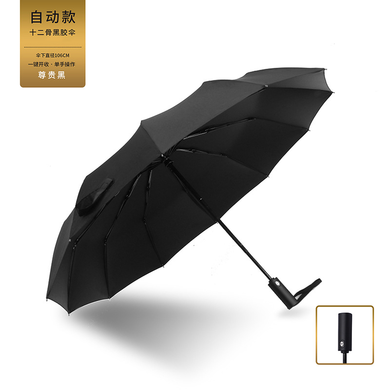 12骨全自动晴雨两用伞黑胶防晒遮阳太阳伞男士商务雨伞定制广告伞