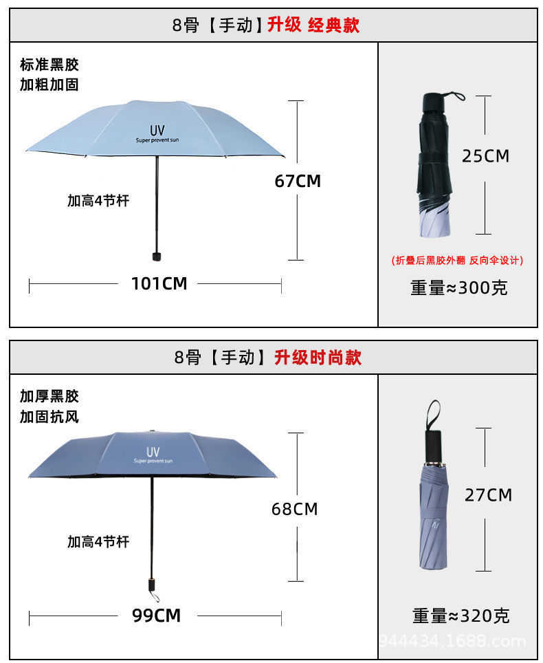自动雨伞UV黑胶防晒防紫外线晴雨伞晴雨两用折叠高级感太阳伞批发