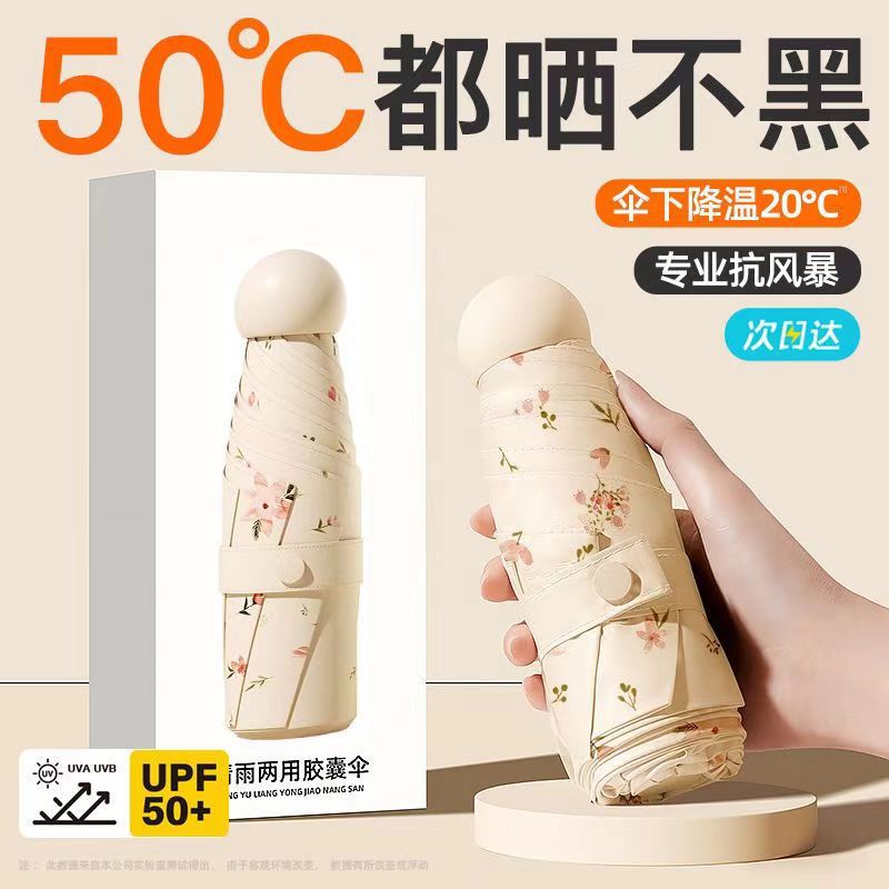 新款花色迷你太阳伞小巧便携胶囊伞防晒伞防紫外线遮阳伞女雨伞