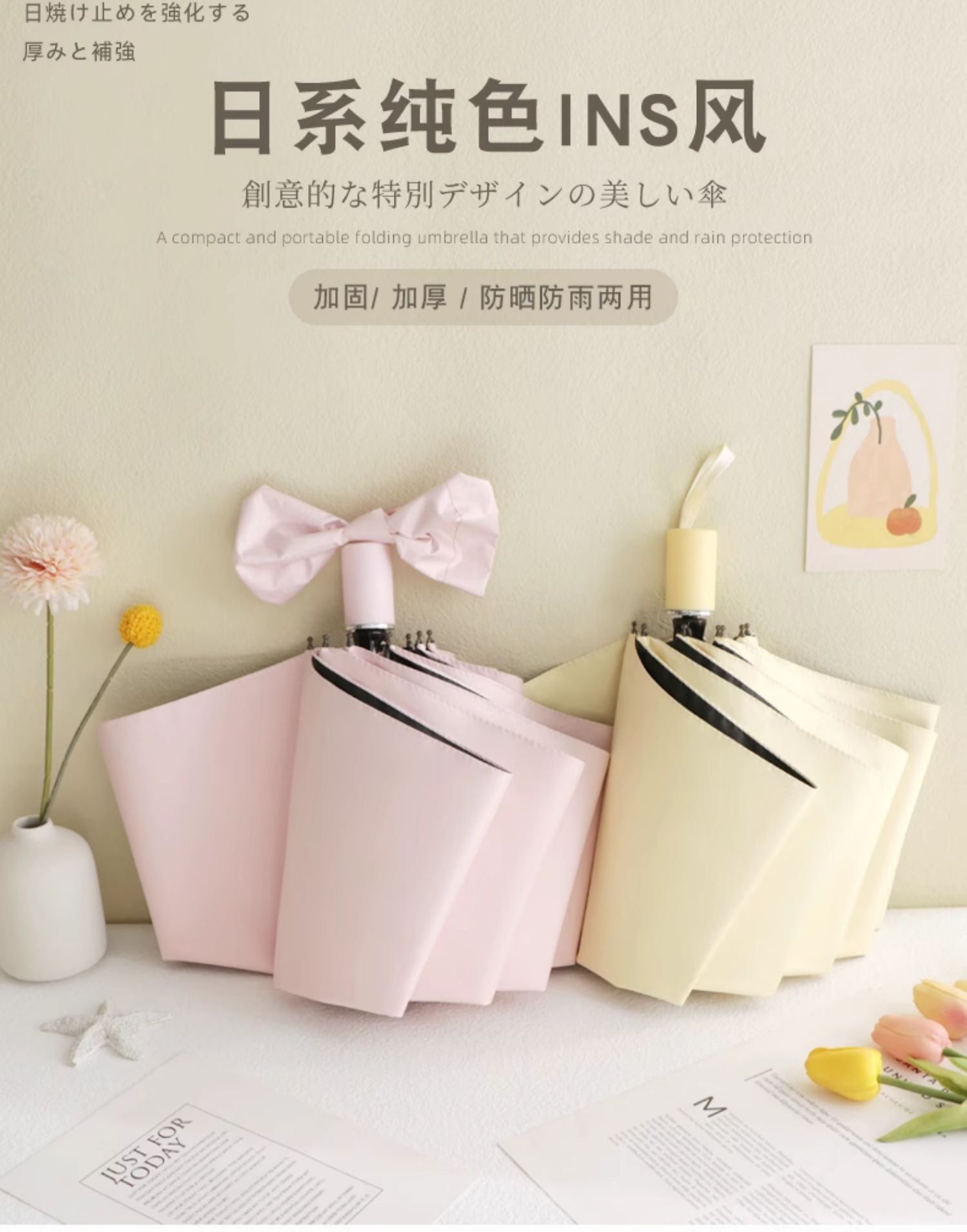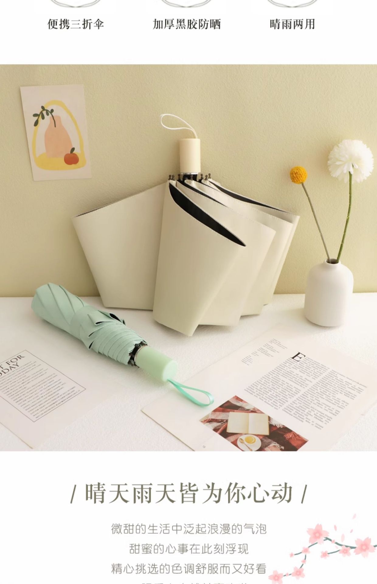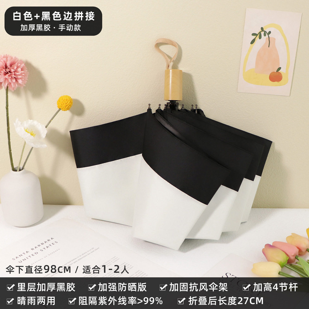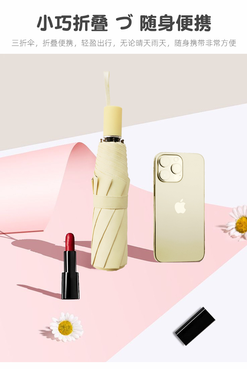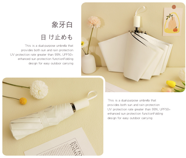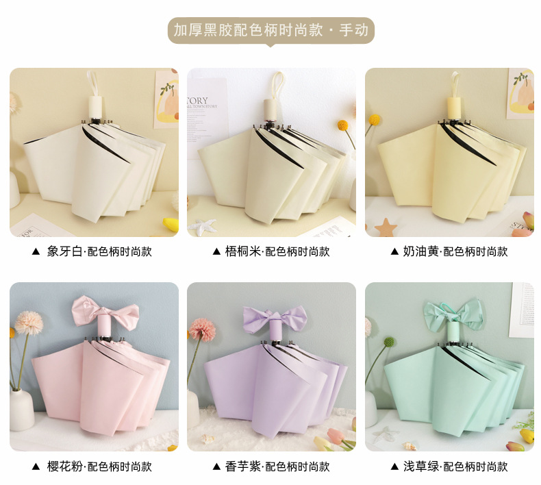 雨伞纯色系奶油风晴雨伞UV太阳伞女防晒防紫外线黑胶防晒雨伞批发