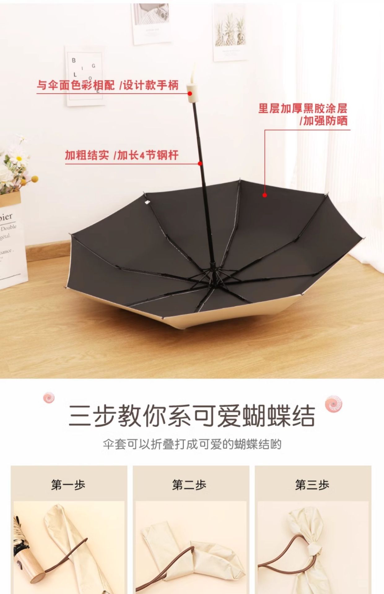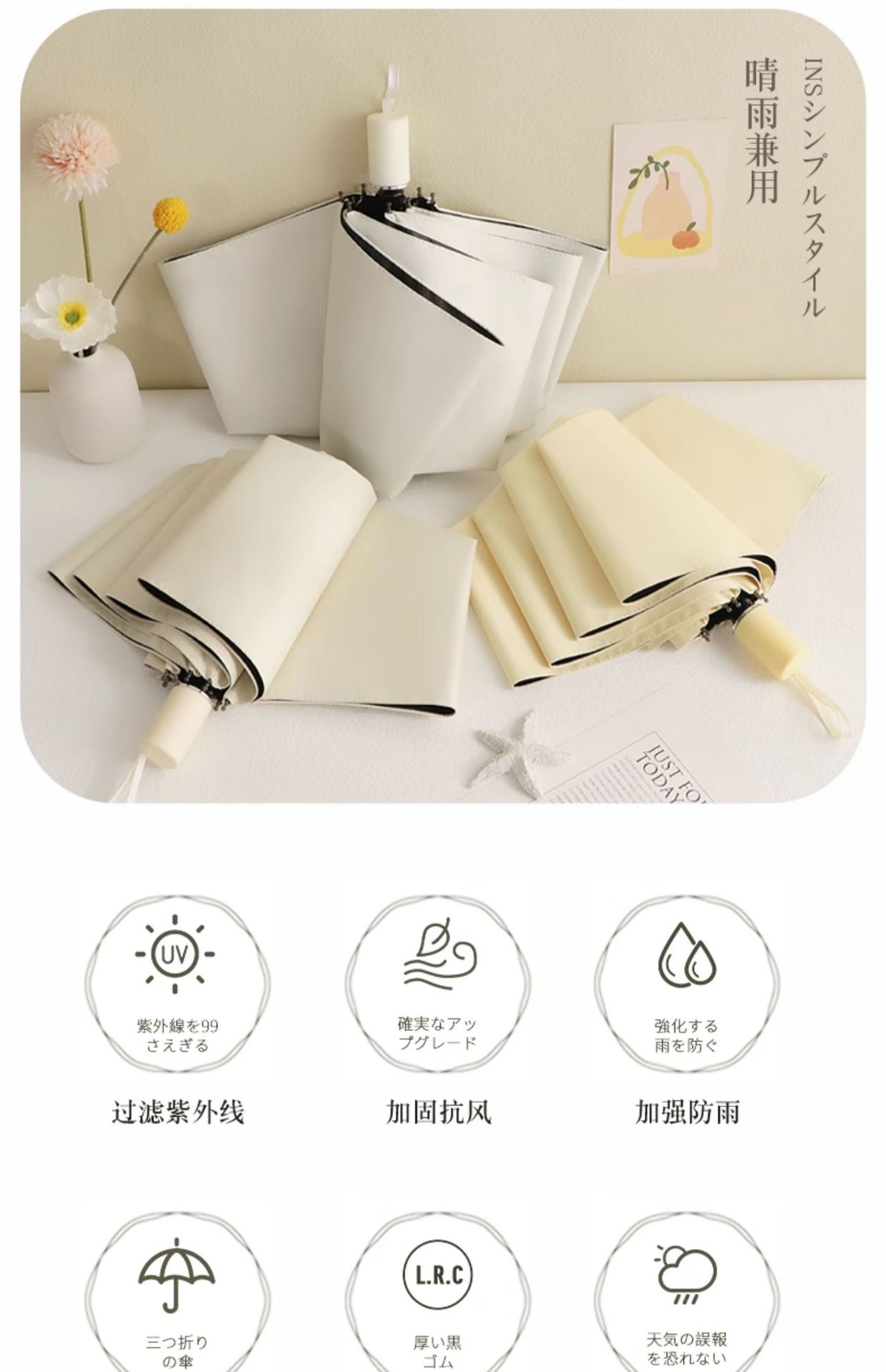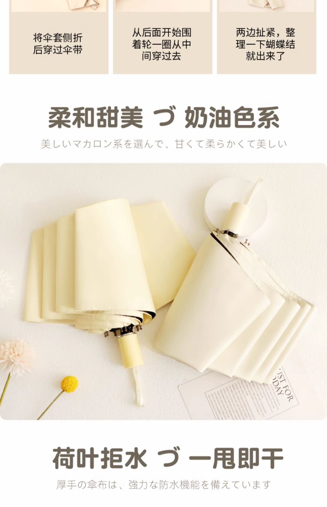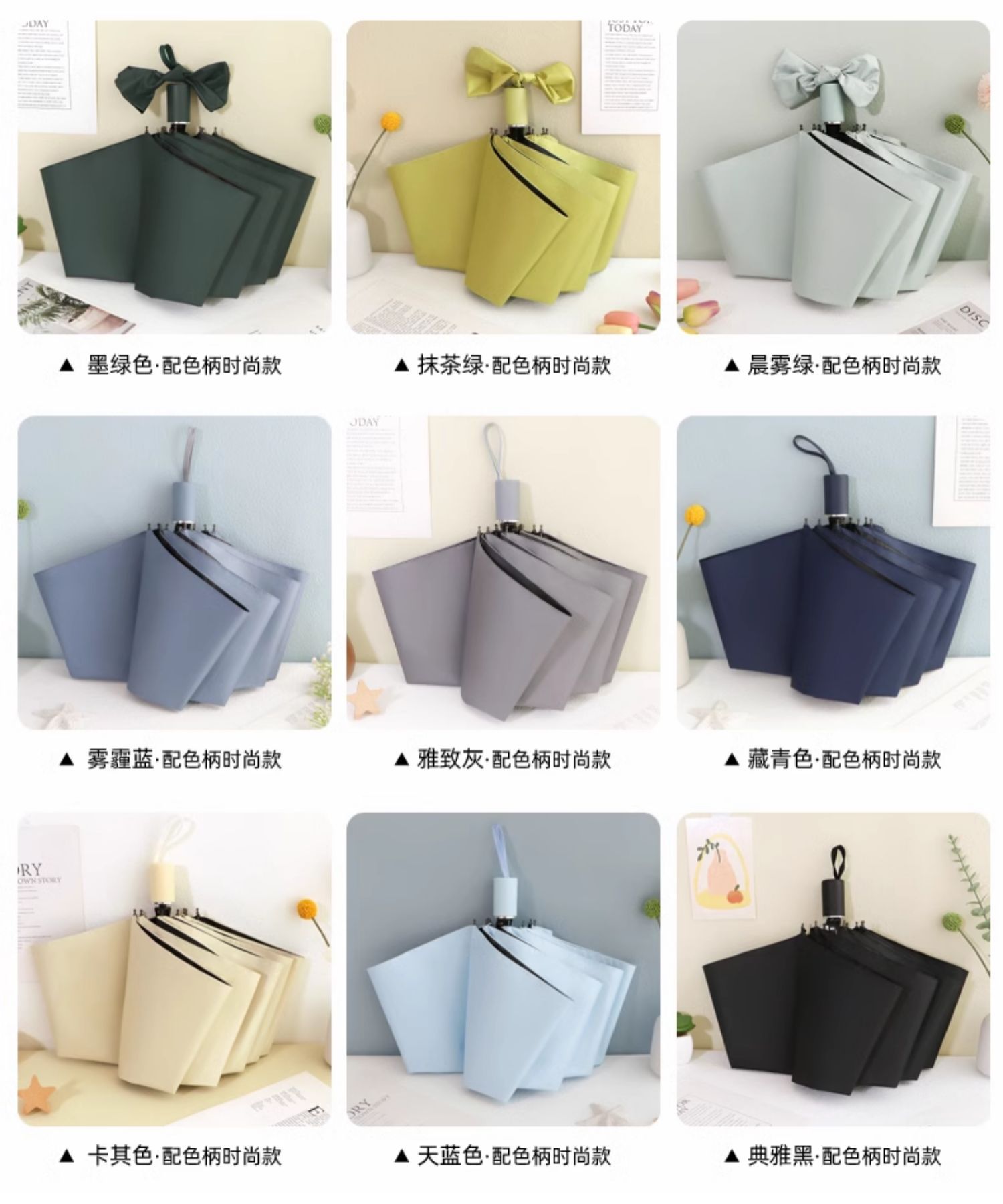 雨伞纯色系奶油风晴雨伞UV太阳伞女防晒防紫外线黑胶防晒雨伞批发