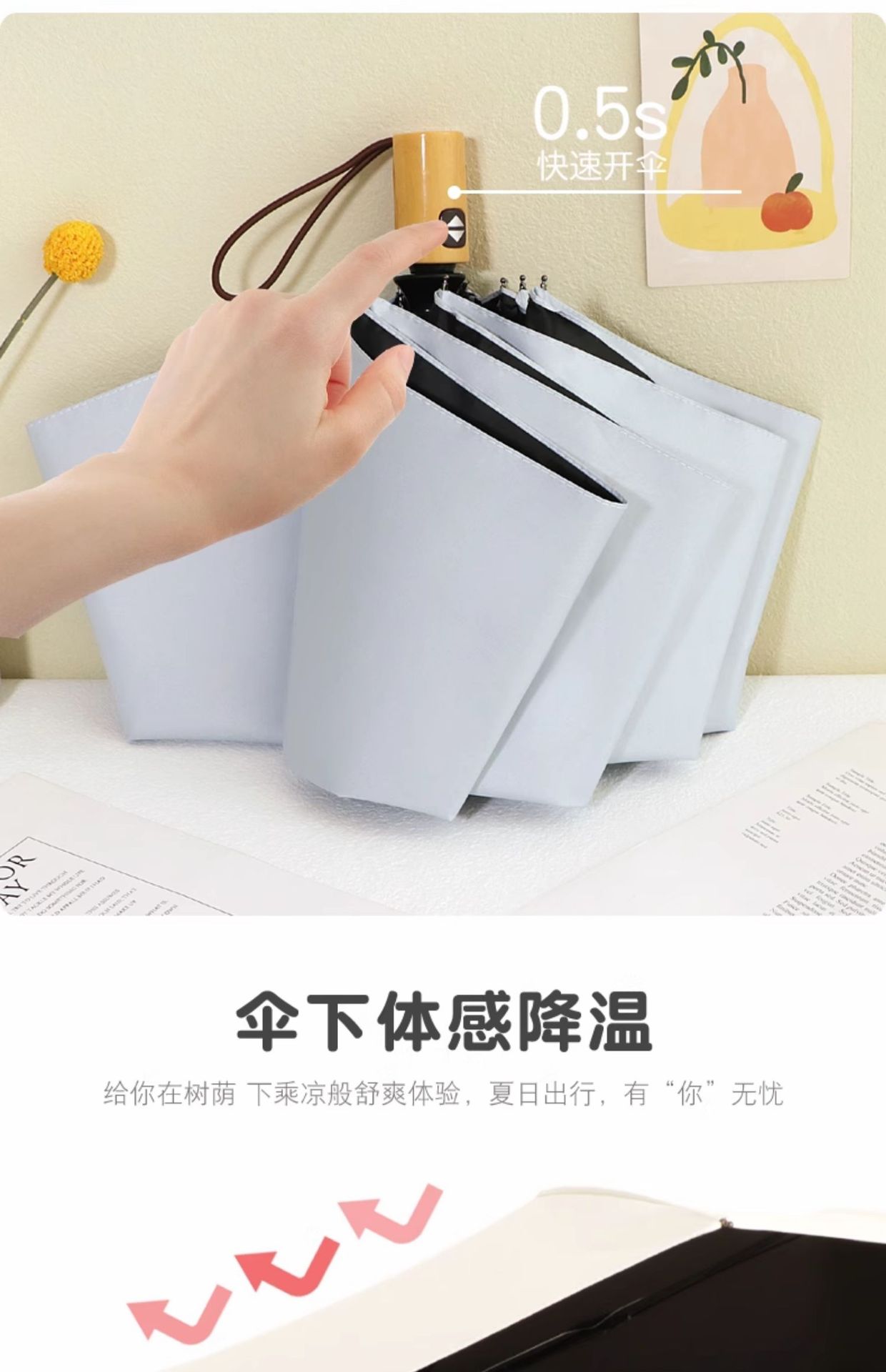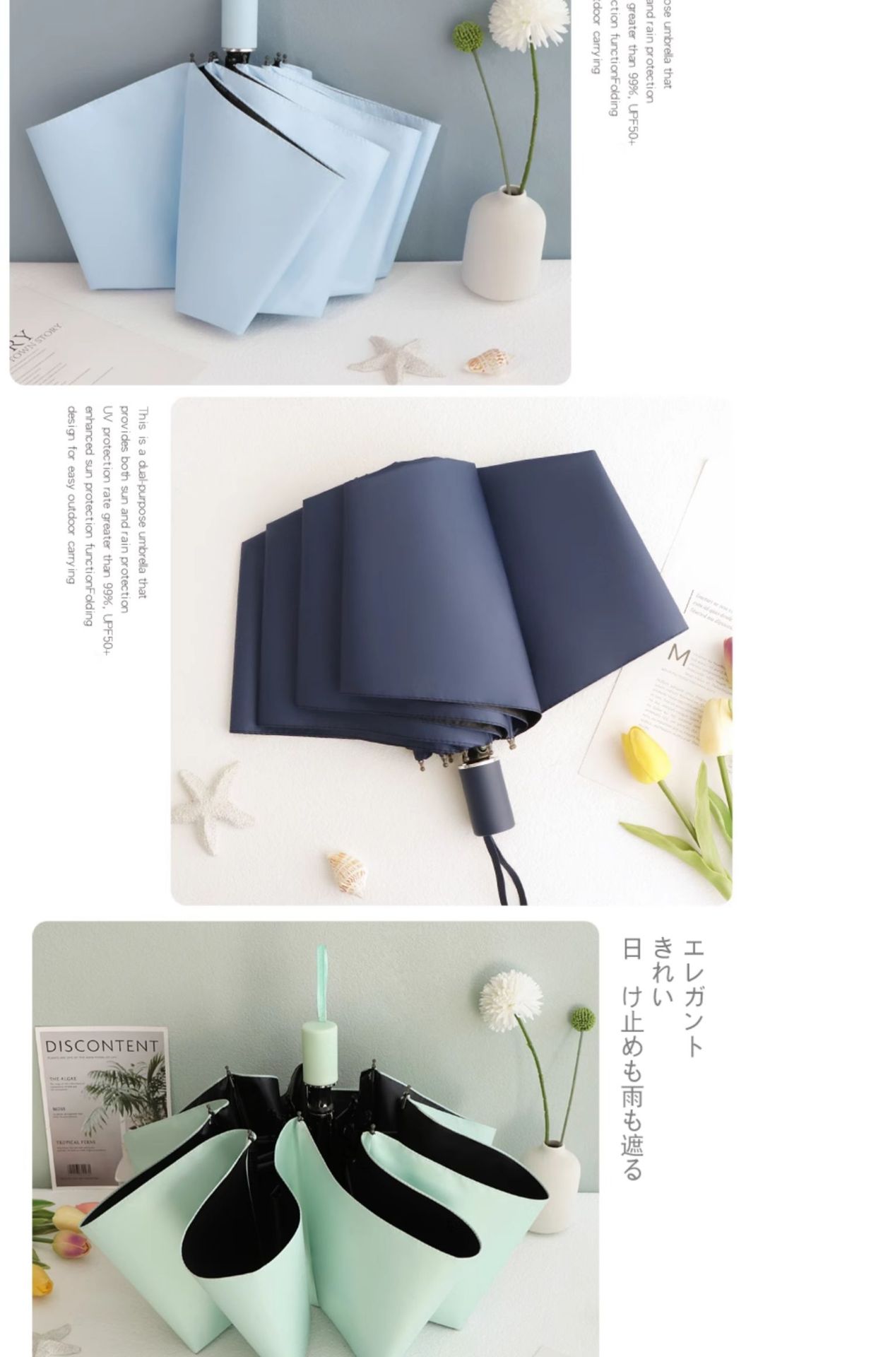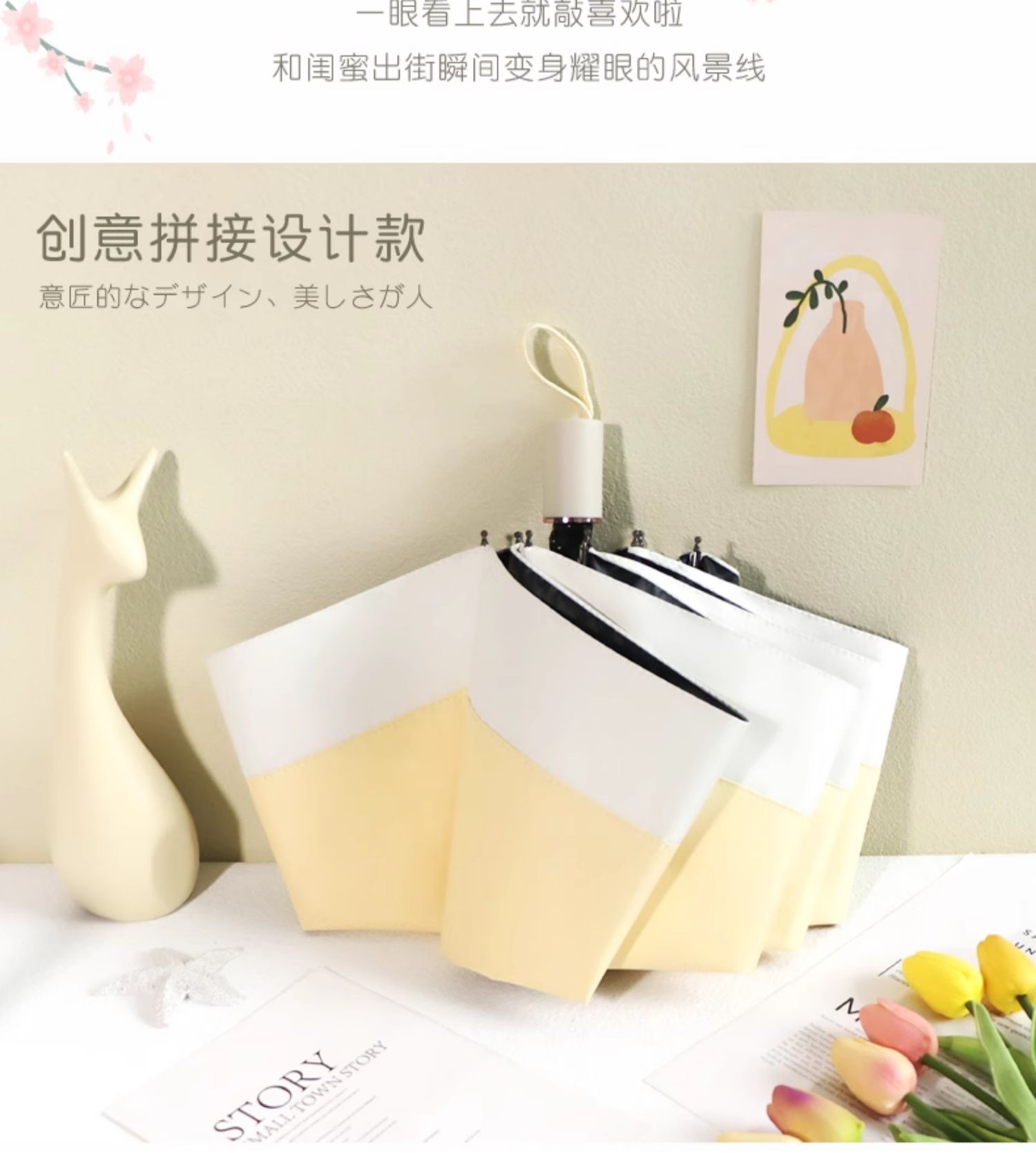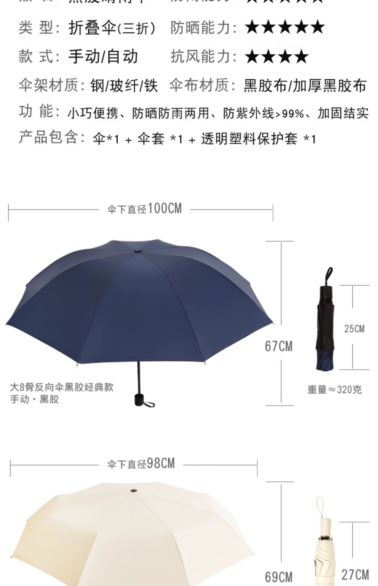 雨伞纯色系奶油风晴雨伞UV太阳伞女防晒防紫外线黑胶防晒雨伞批发
