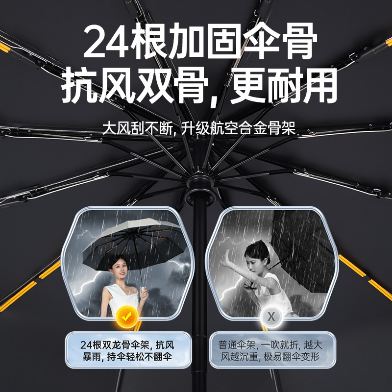 24骨全自动雨伞12骨双龙骨黑胶晴雨伞防晒太阳伞现货批发广告伞