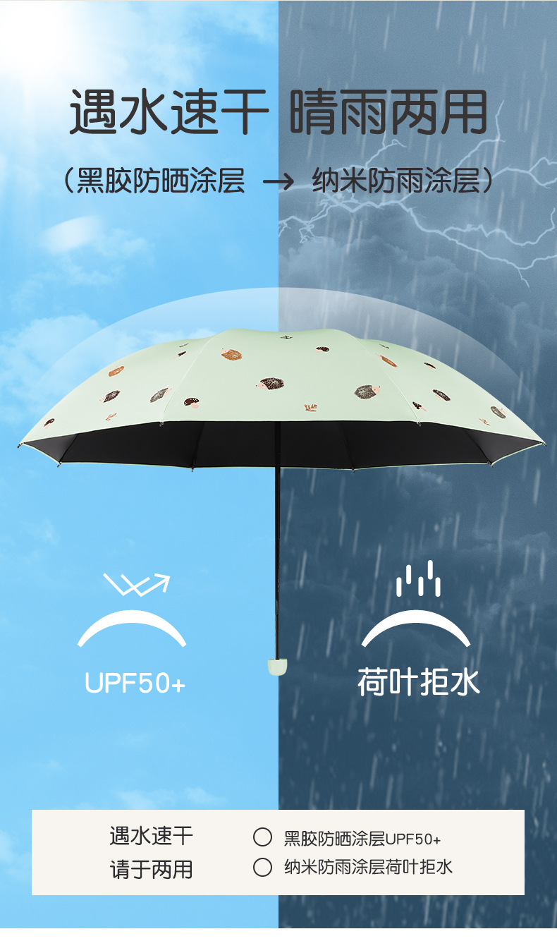 天堂伞太阳伞学生上学专用防晒防紫外线晴雨两用小巧便携三折伞