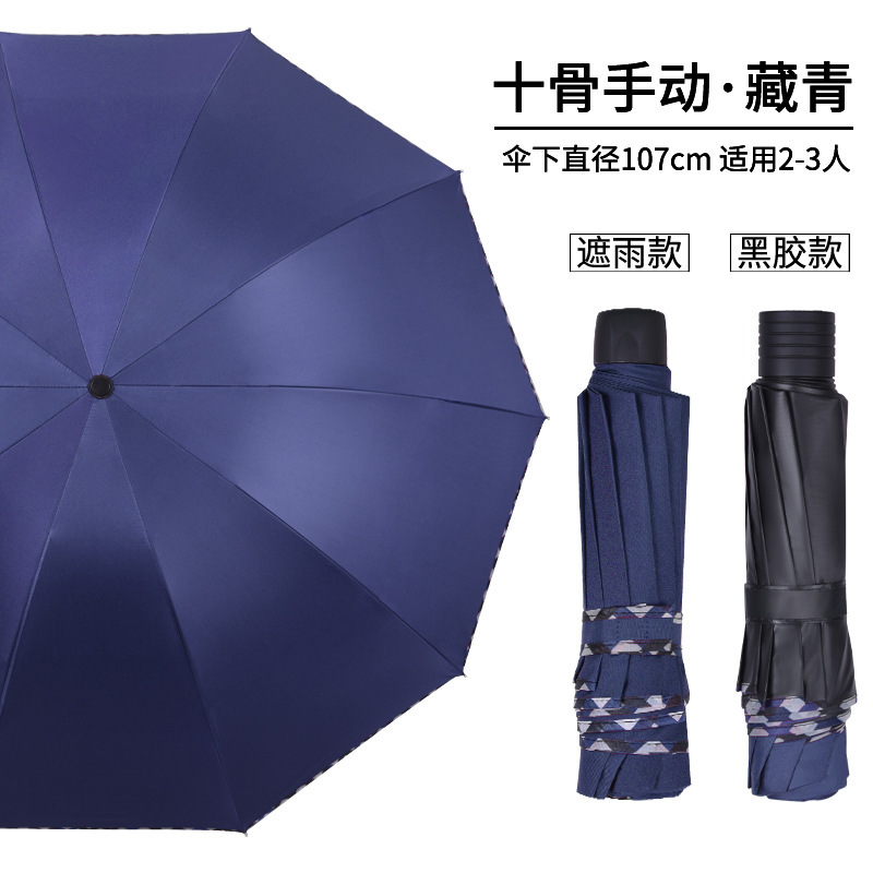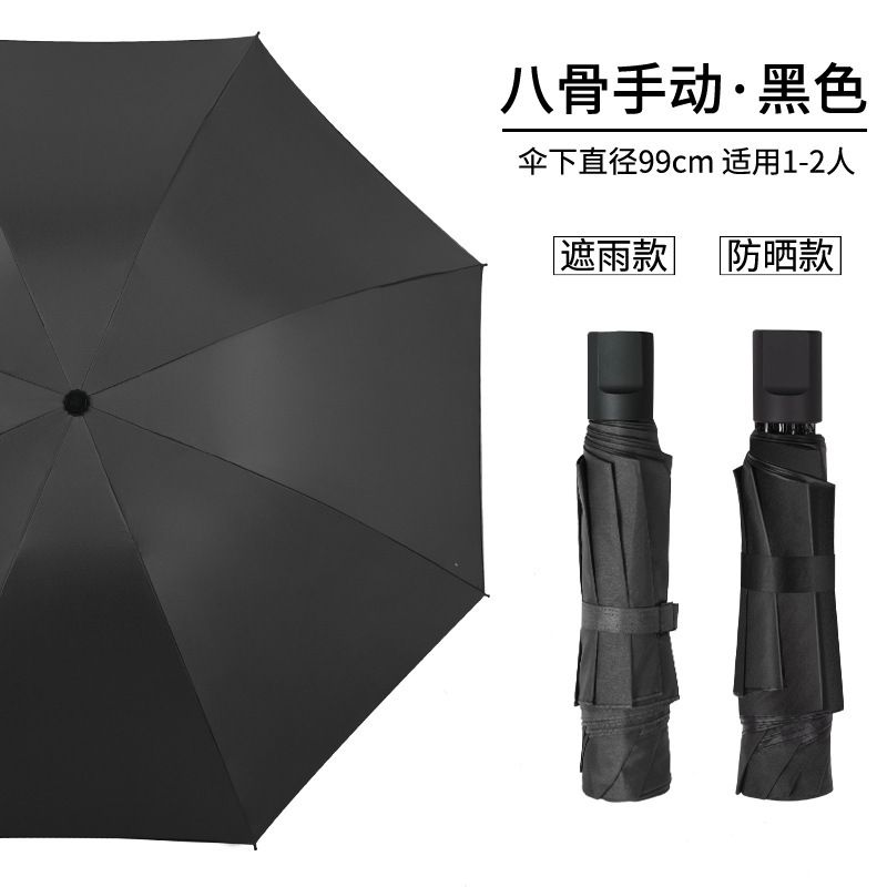 男女大号双人商务折叠雨伞黑胶遮阳广告太阳伞三折晴雨伞批发印制
