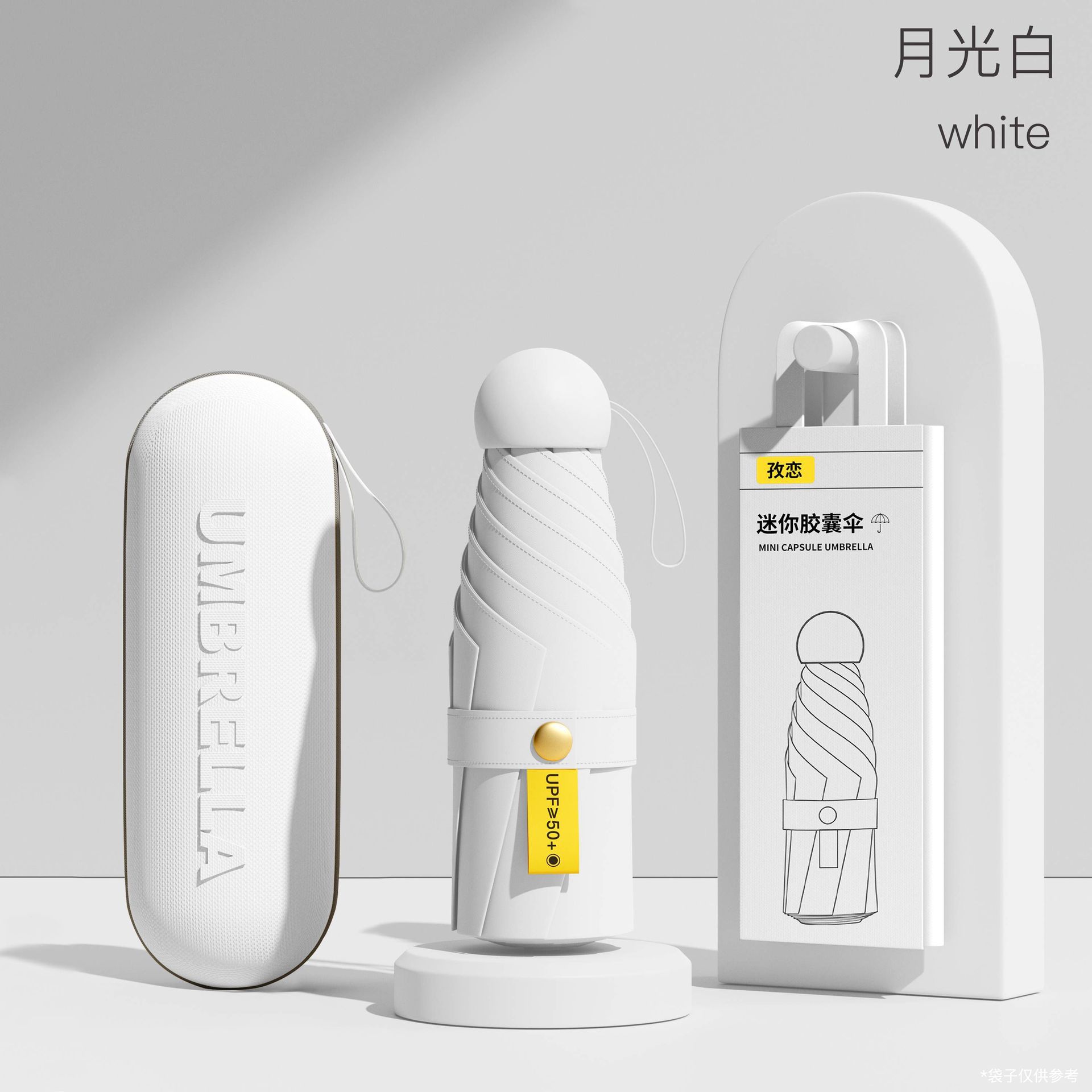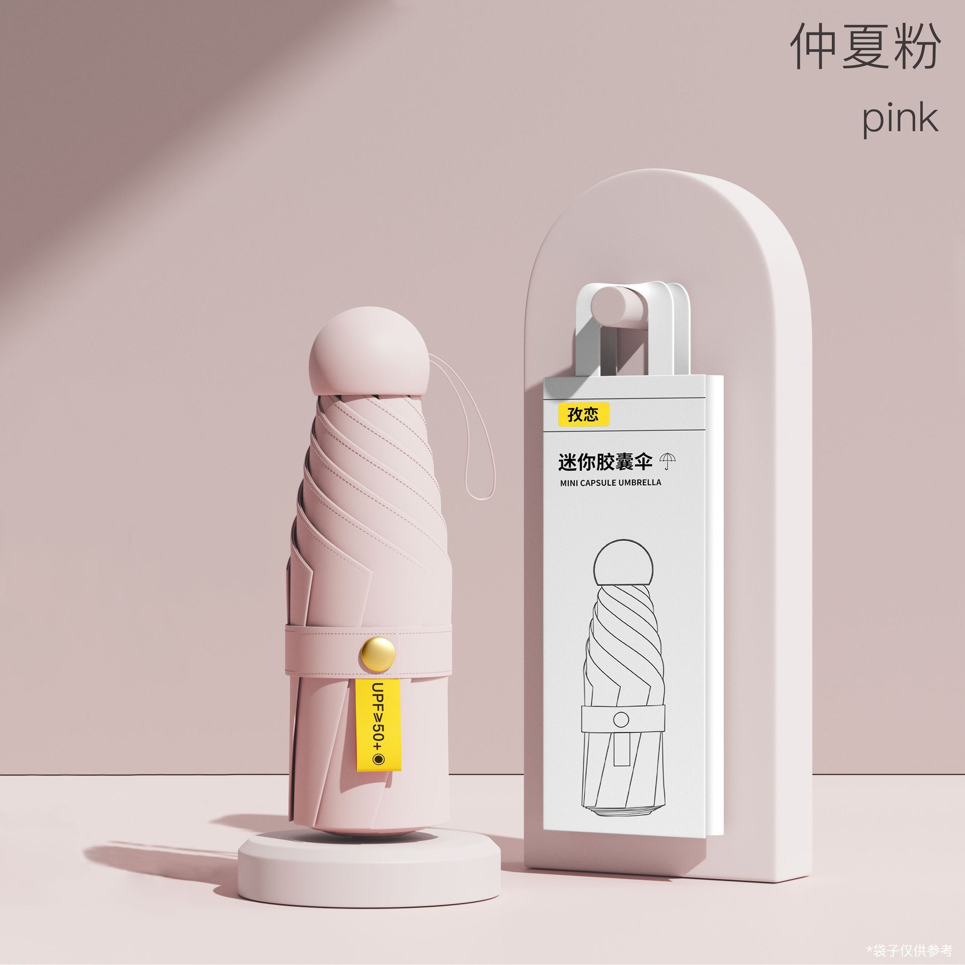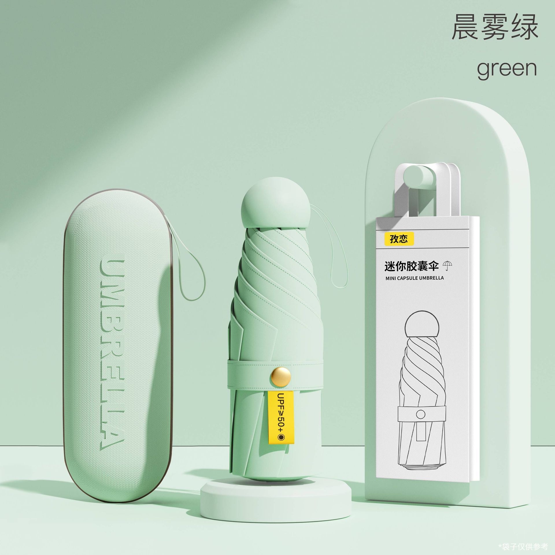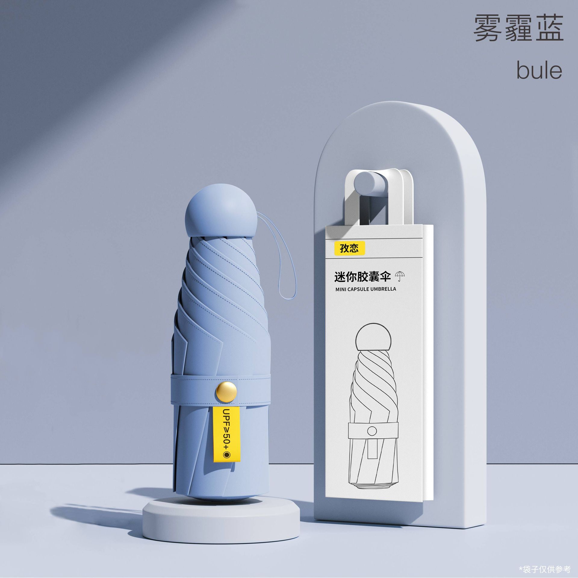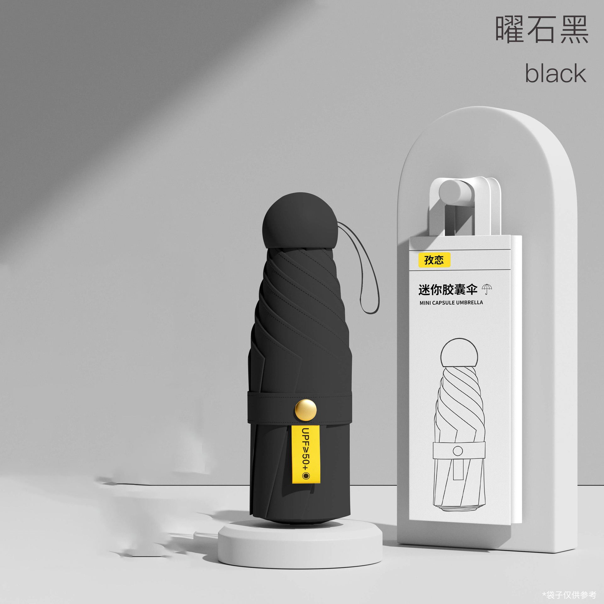 胶囊遮阳伞女士晴雨伞两用防晒防紫外线黑胶小巧便携五折叠口雨伞