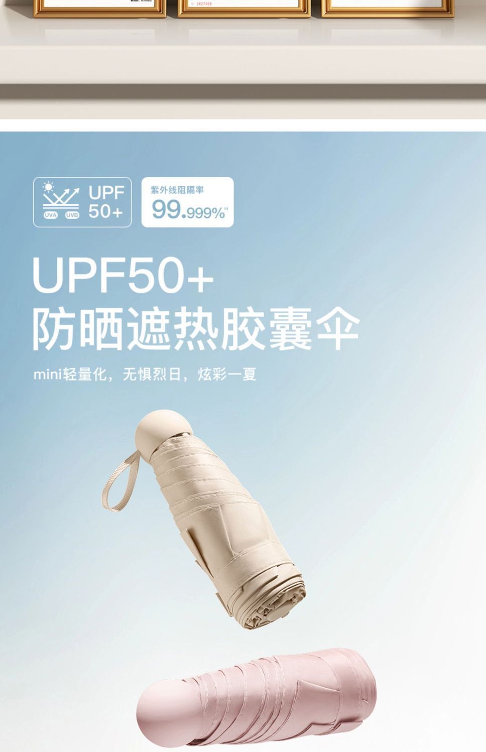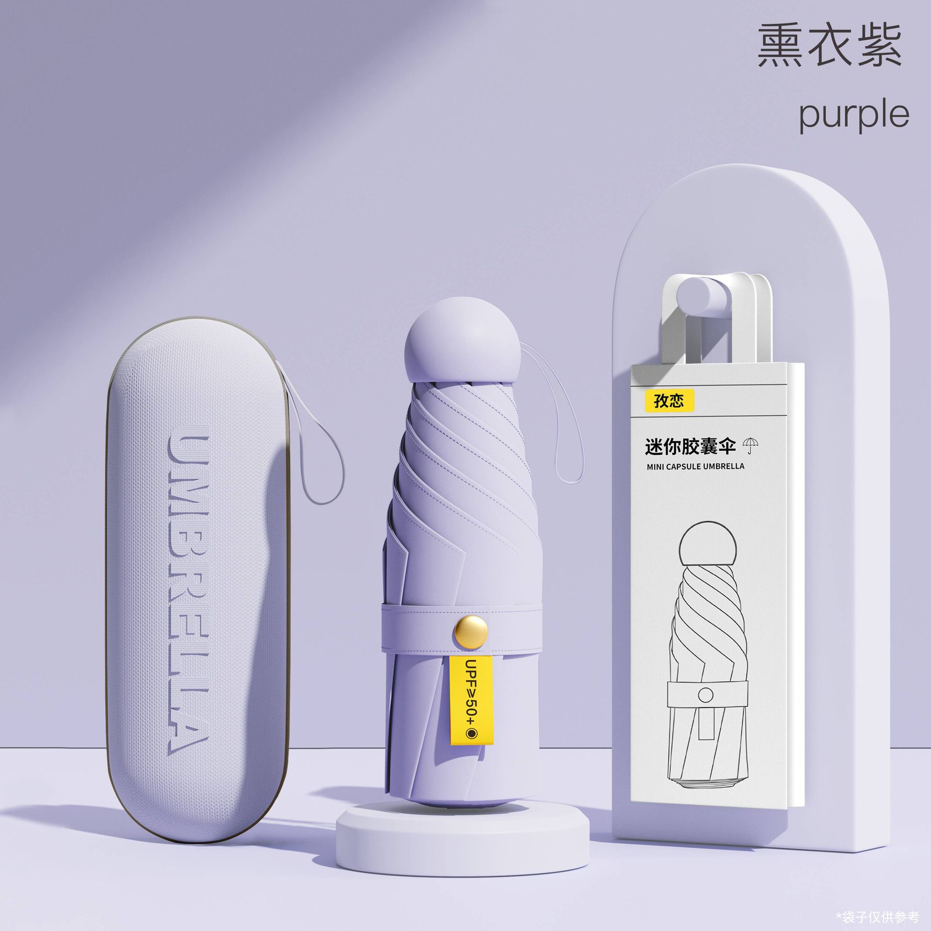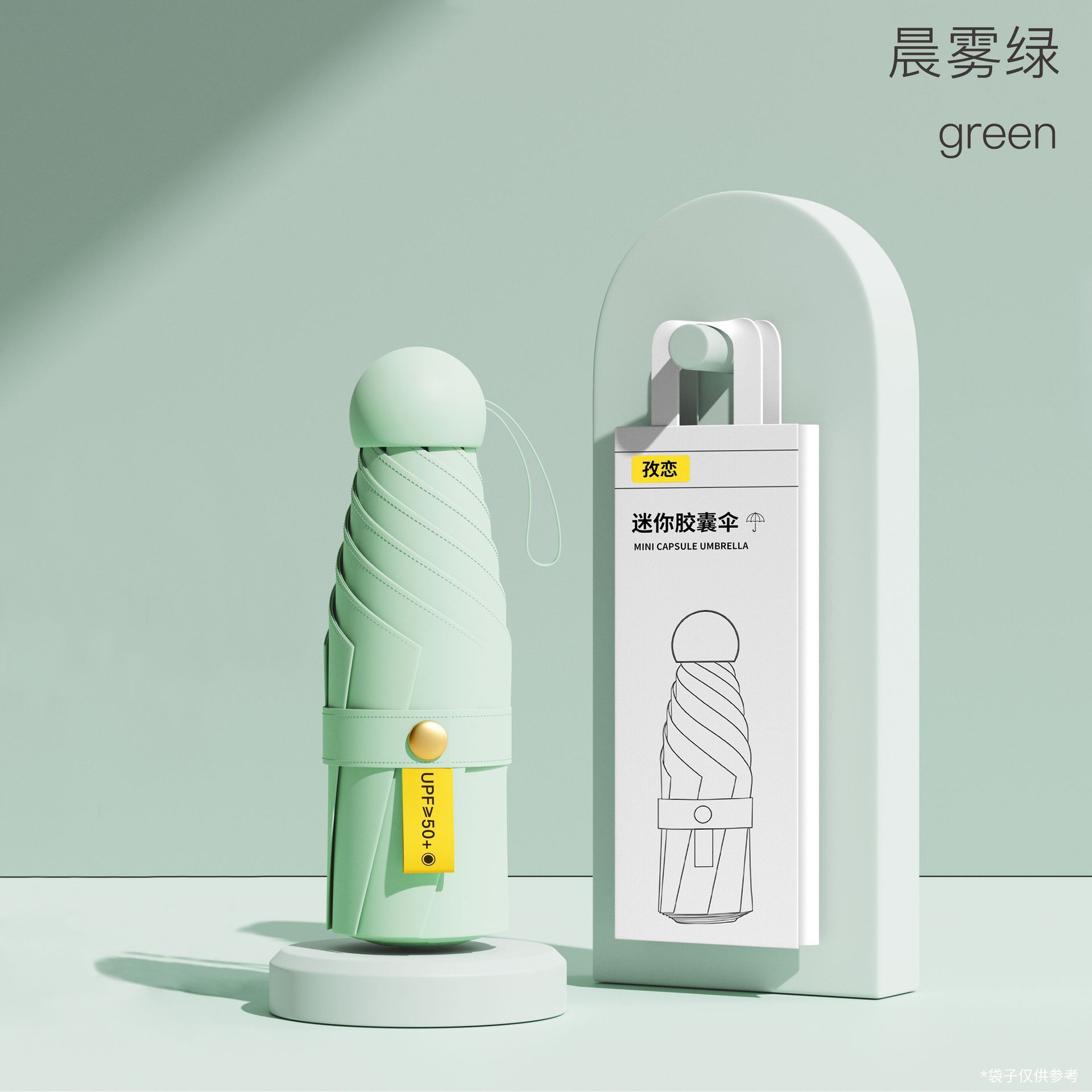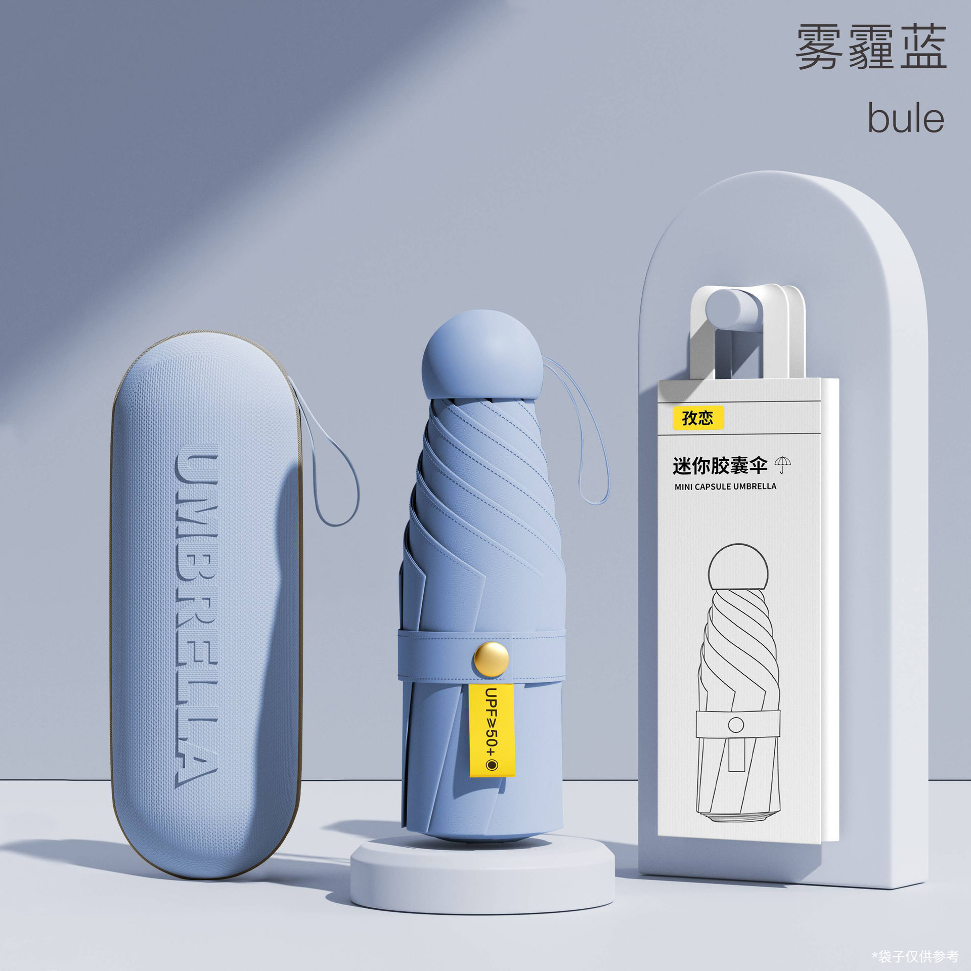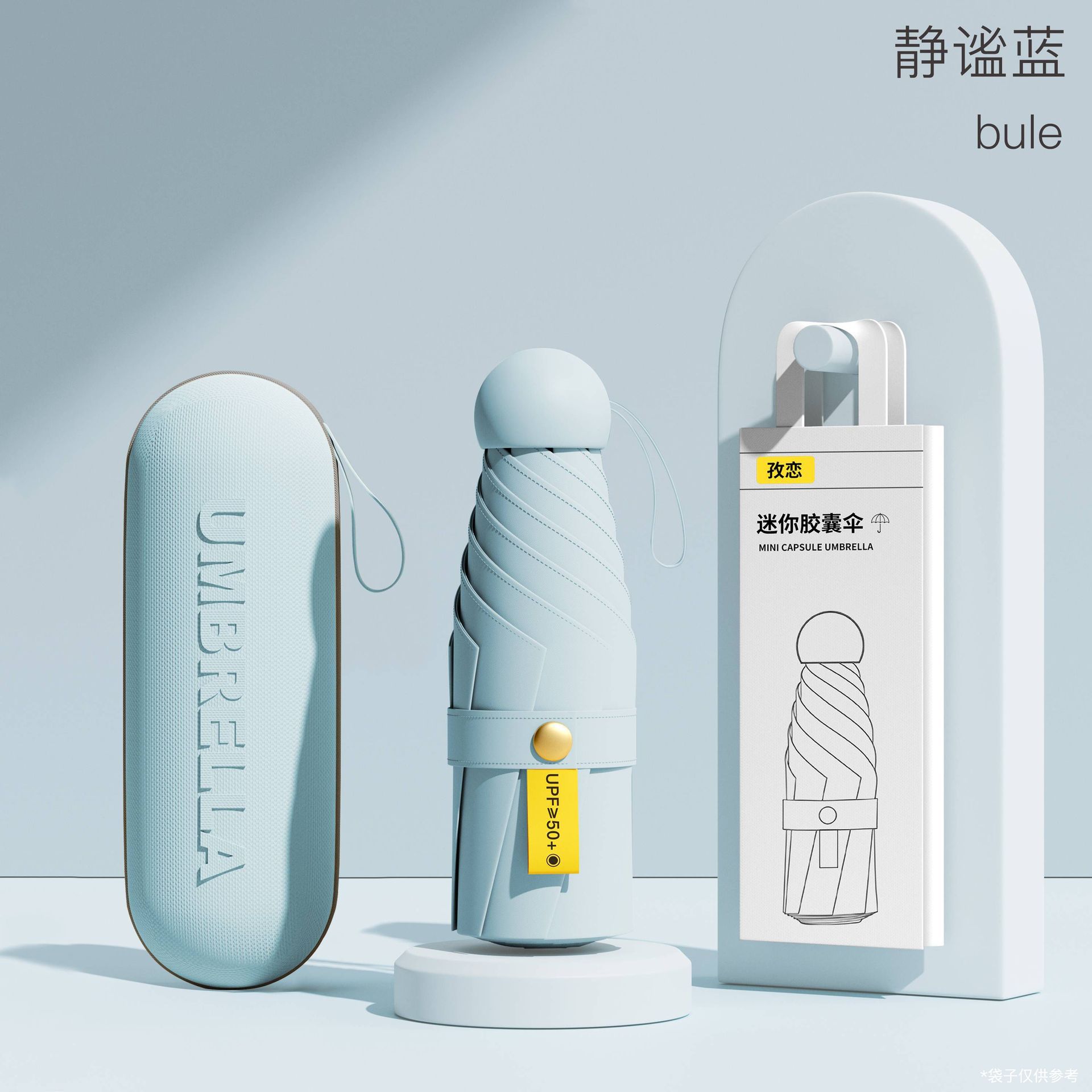 胶囊遮阳伞女士晴雨伞两用防晒防紫外线黑胶小巧便携五折叠口雨伞