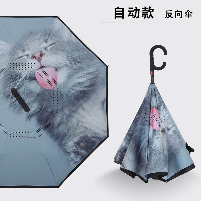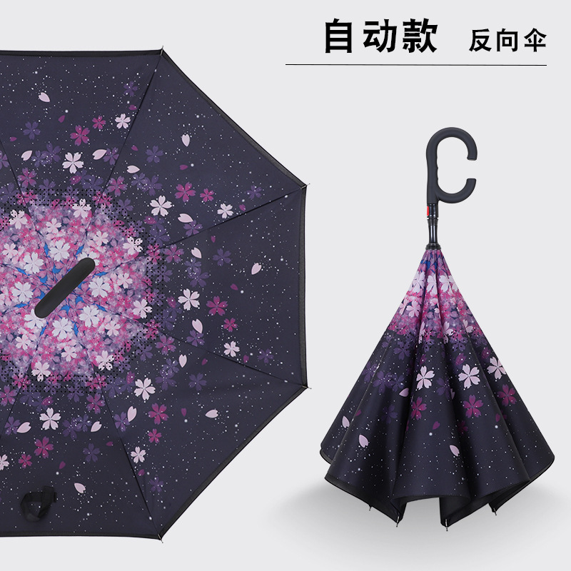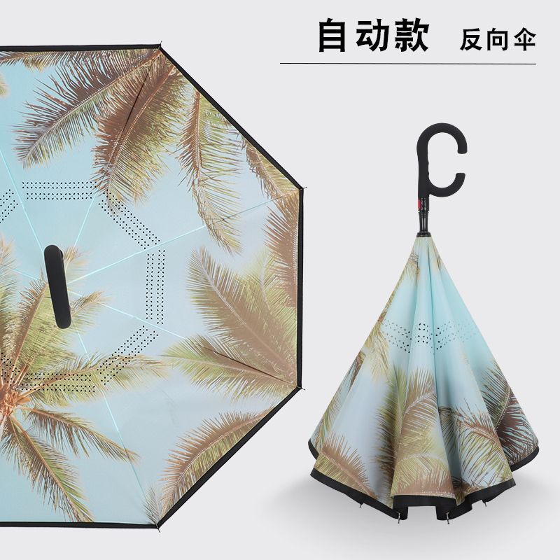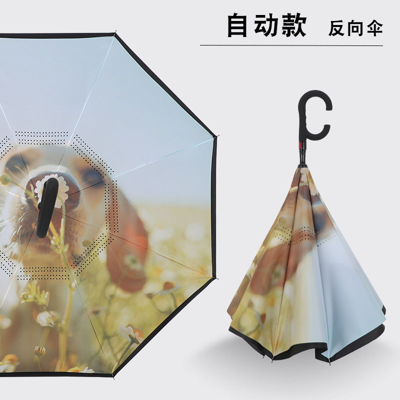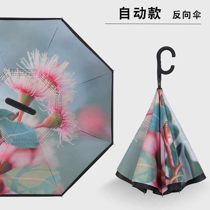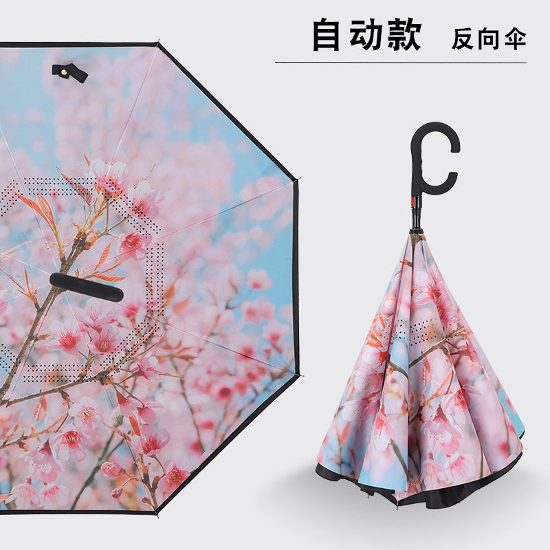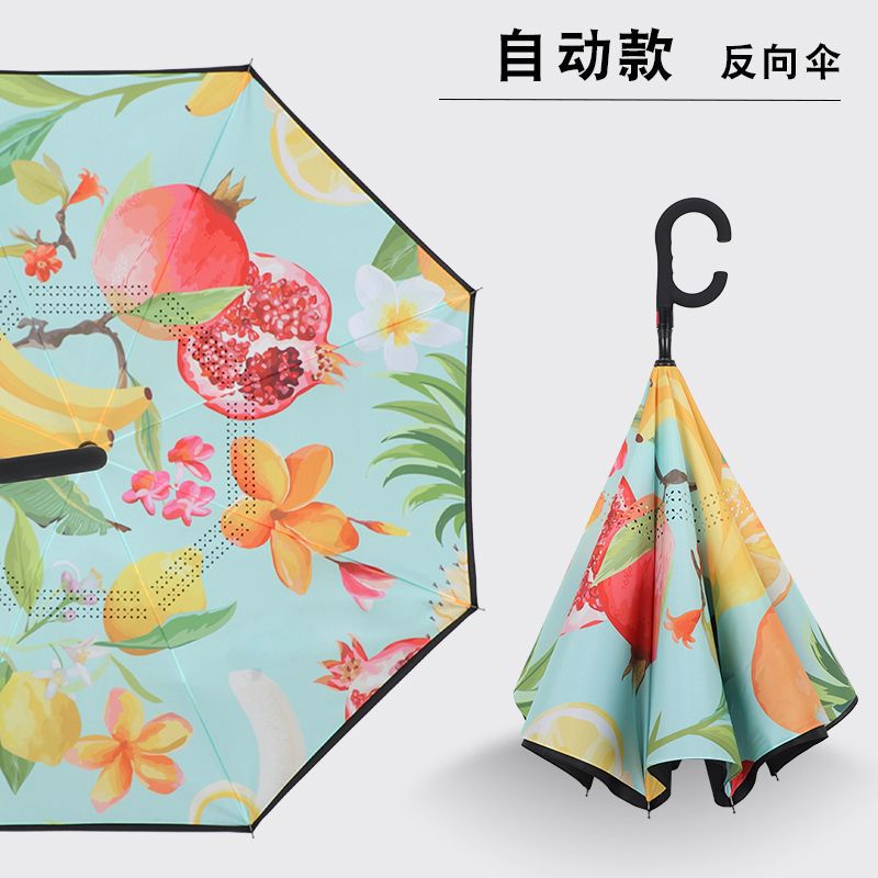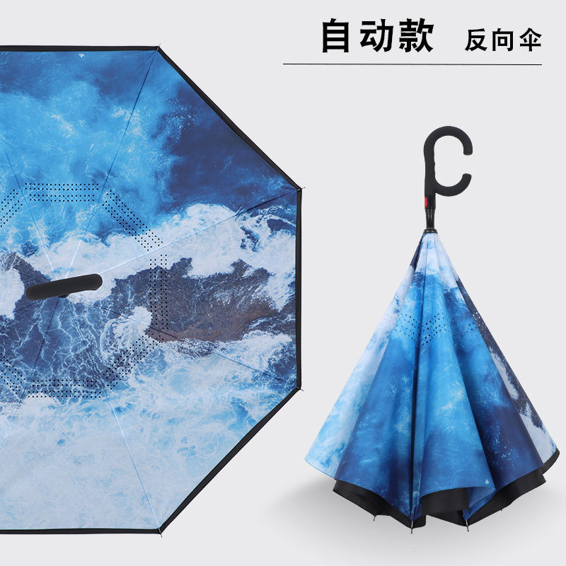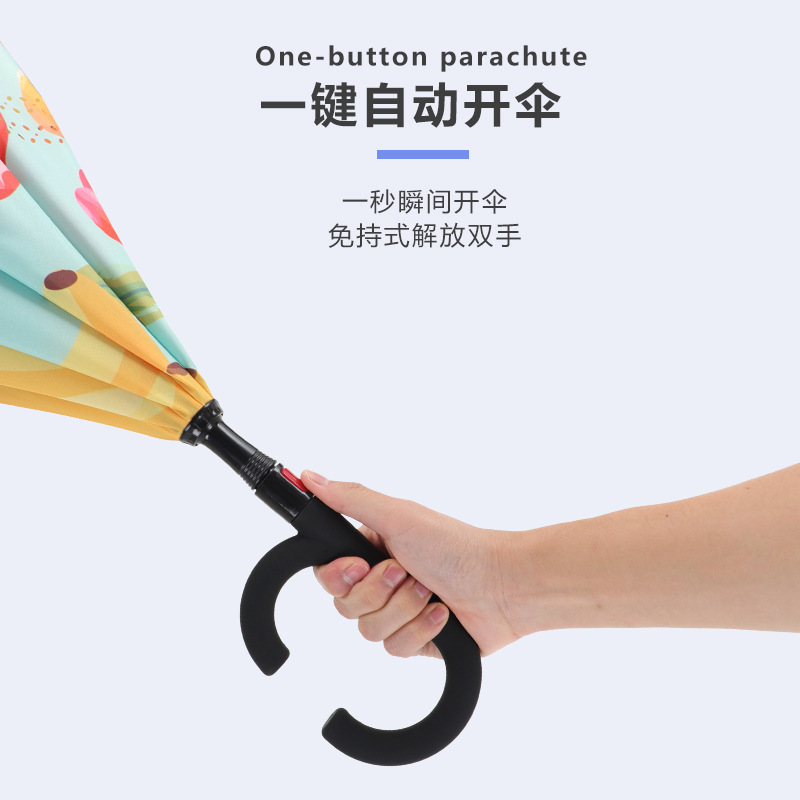 配色双层自动反向伞防紫外线免持式C型晴雨伞汽车长直杆伞可印LOG
