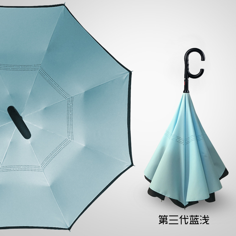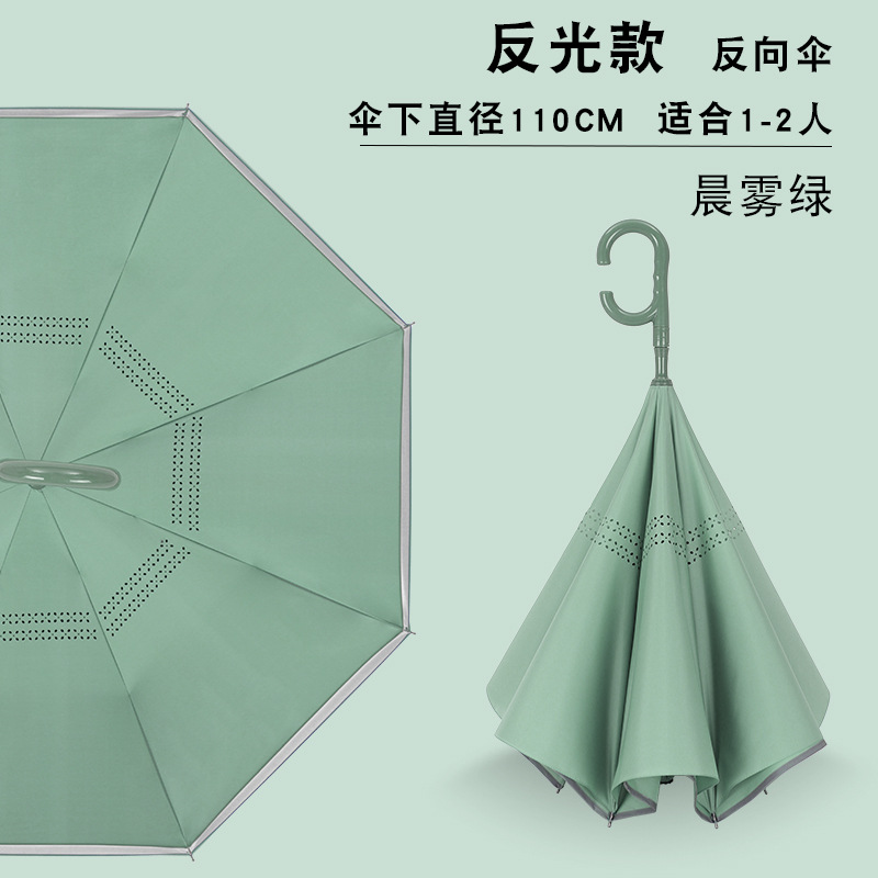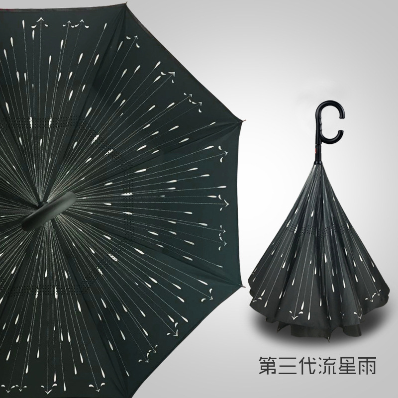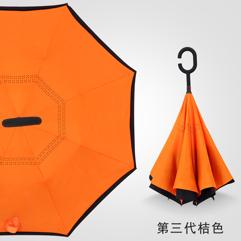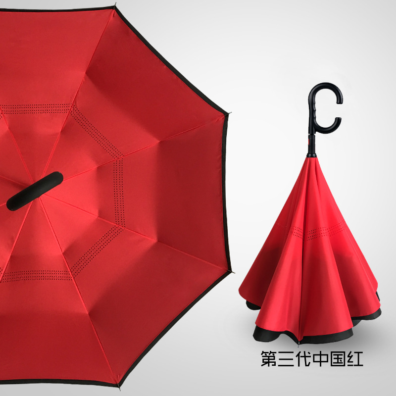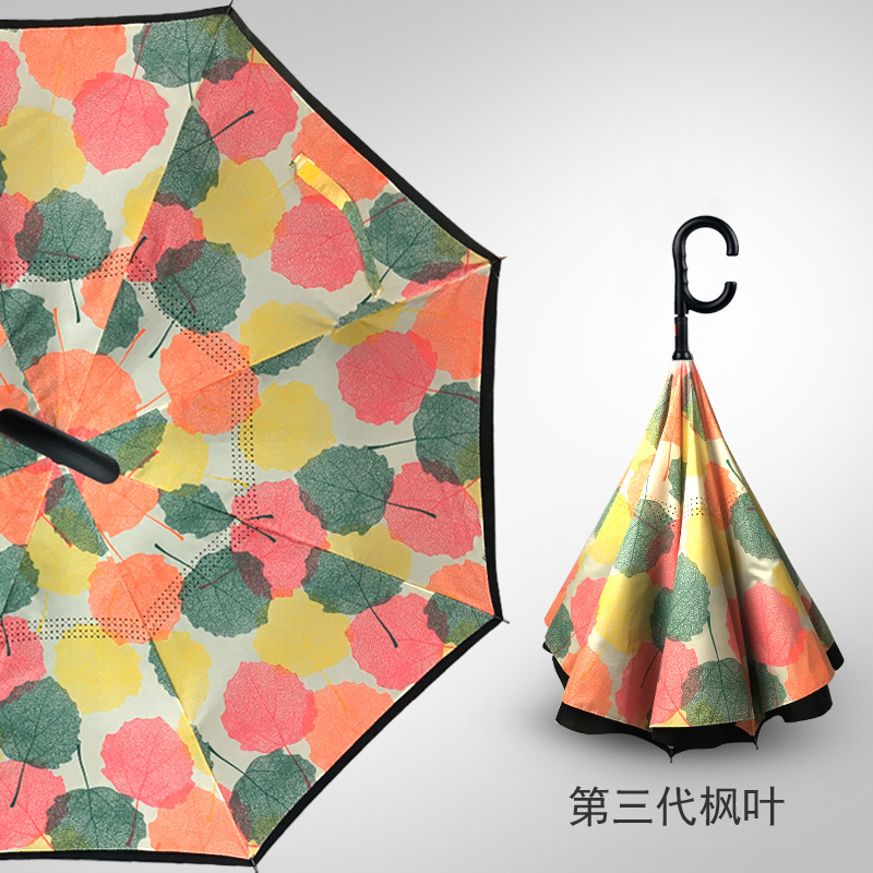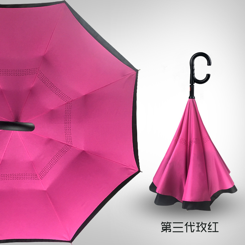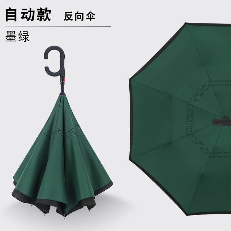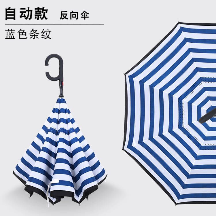 配色双层自动反向伞防紫外线免持式C型晴雨伞汽车长直杆伞可印LOG