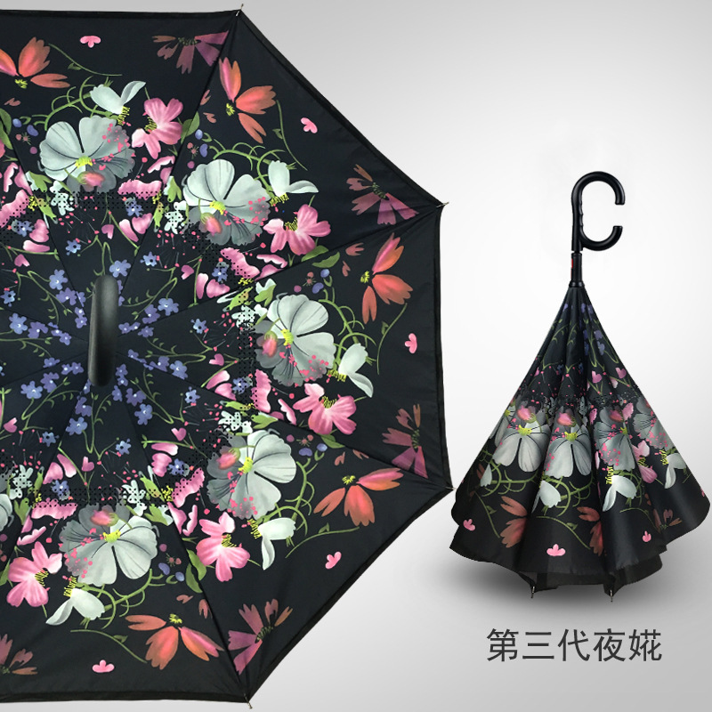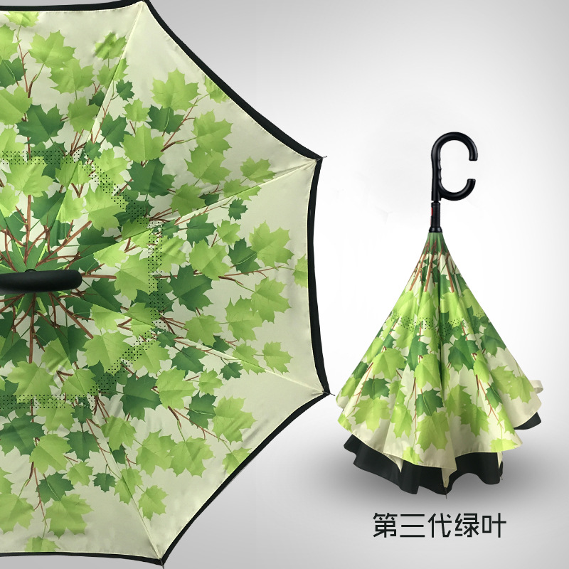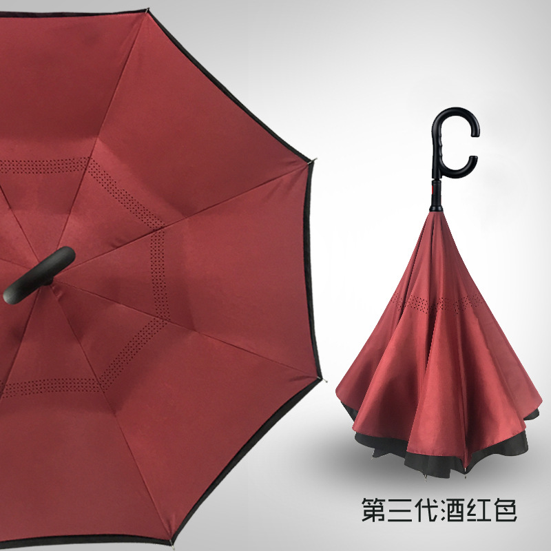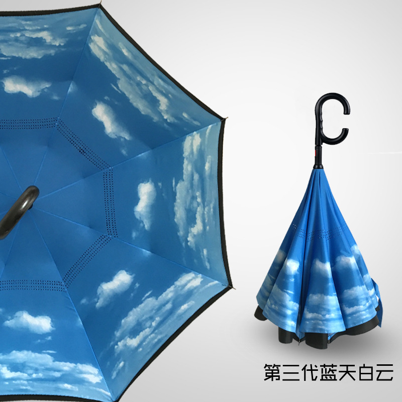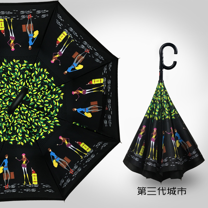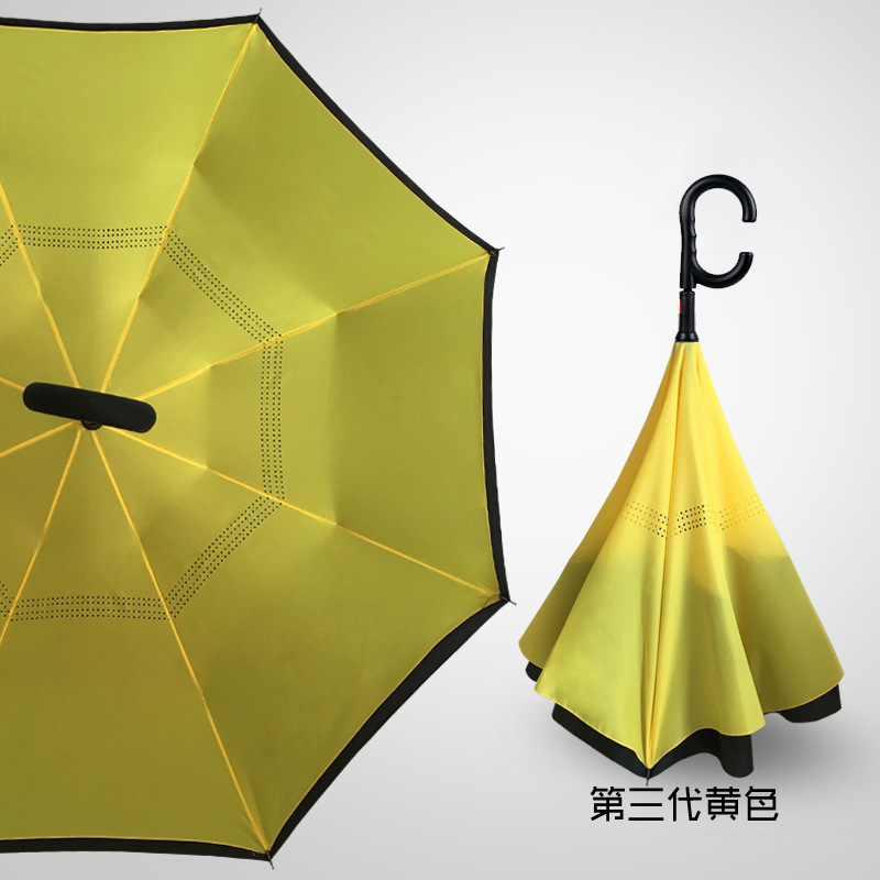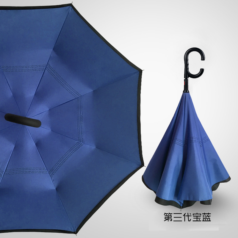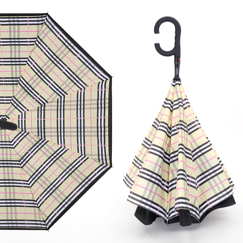 配色双层自动反向伞防紫外线免持式C型晴雨伞汽车长直杆伞可印LOG