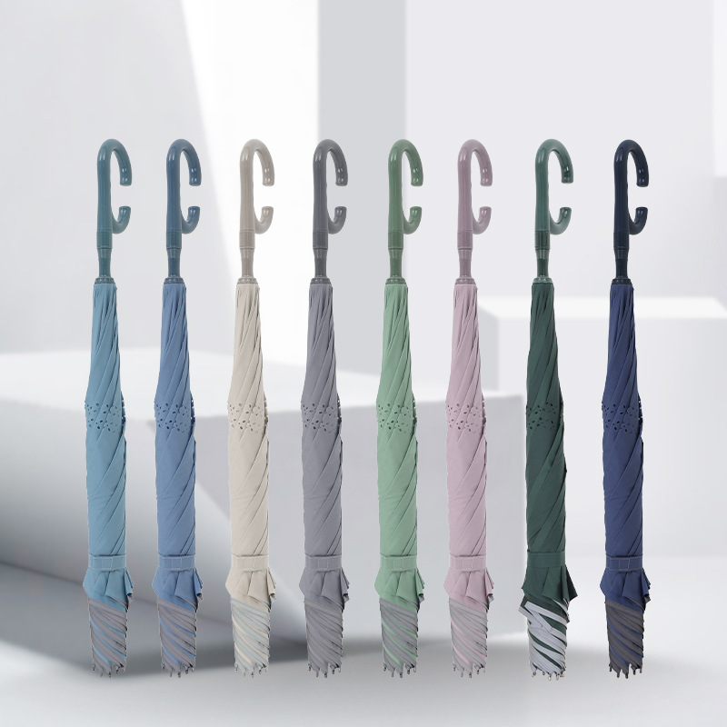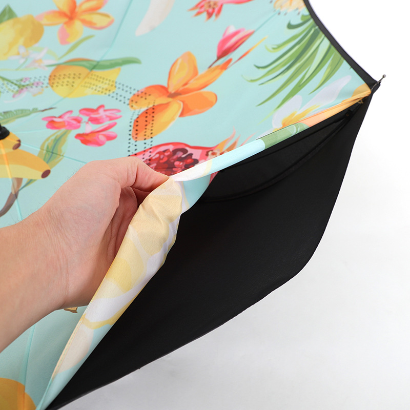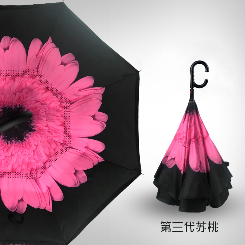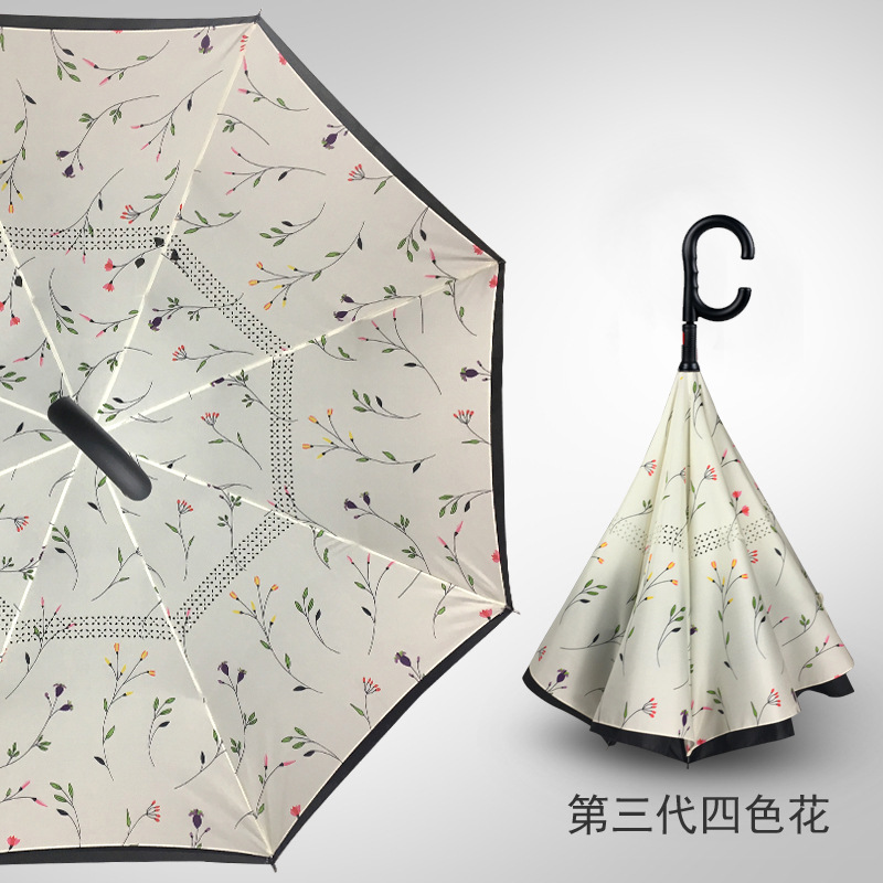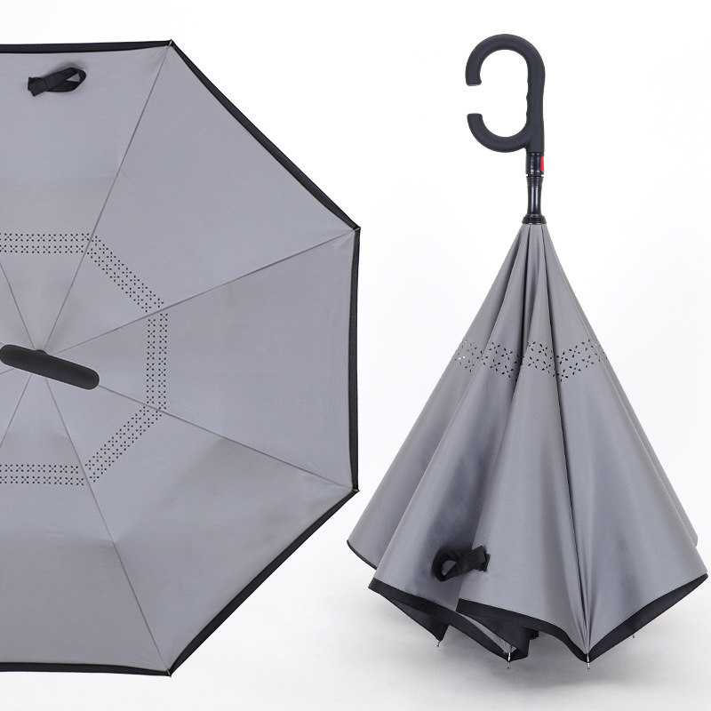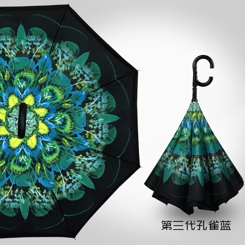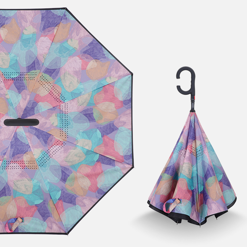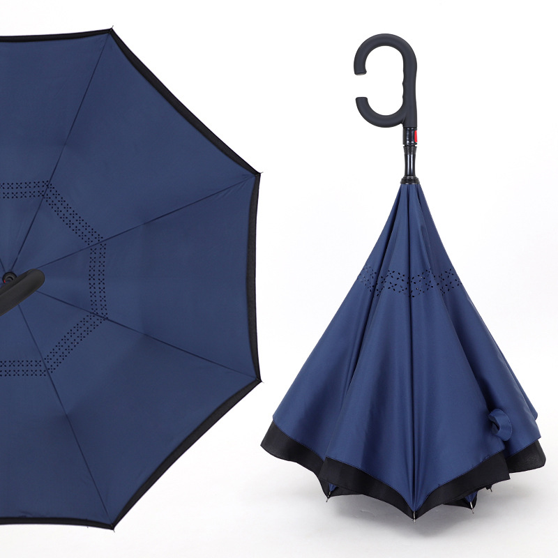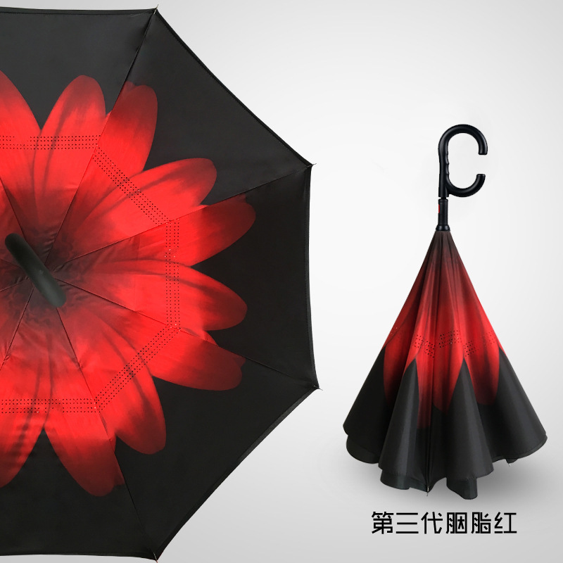配色双层自动反向伞防紫外线免持式C型晴雨伞汽车长直杆伞可印LOG