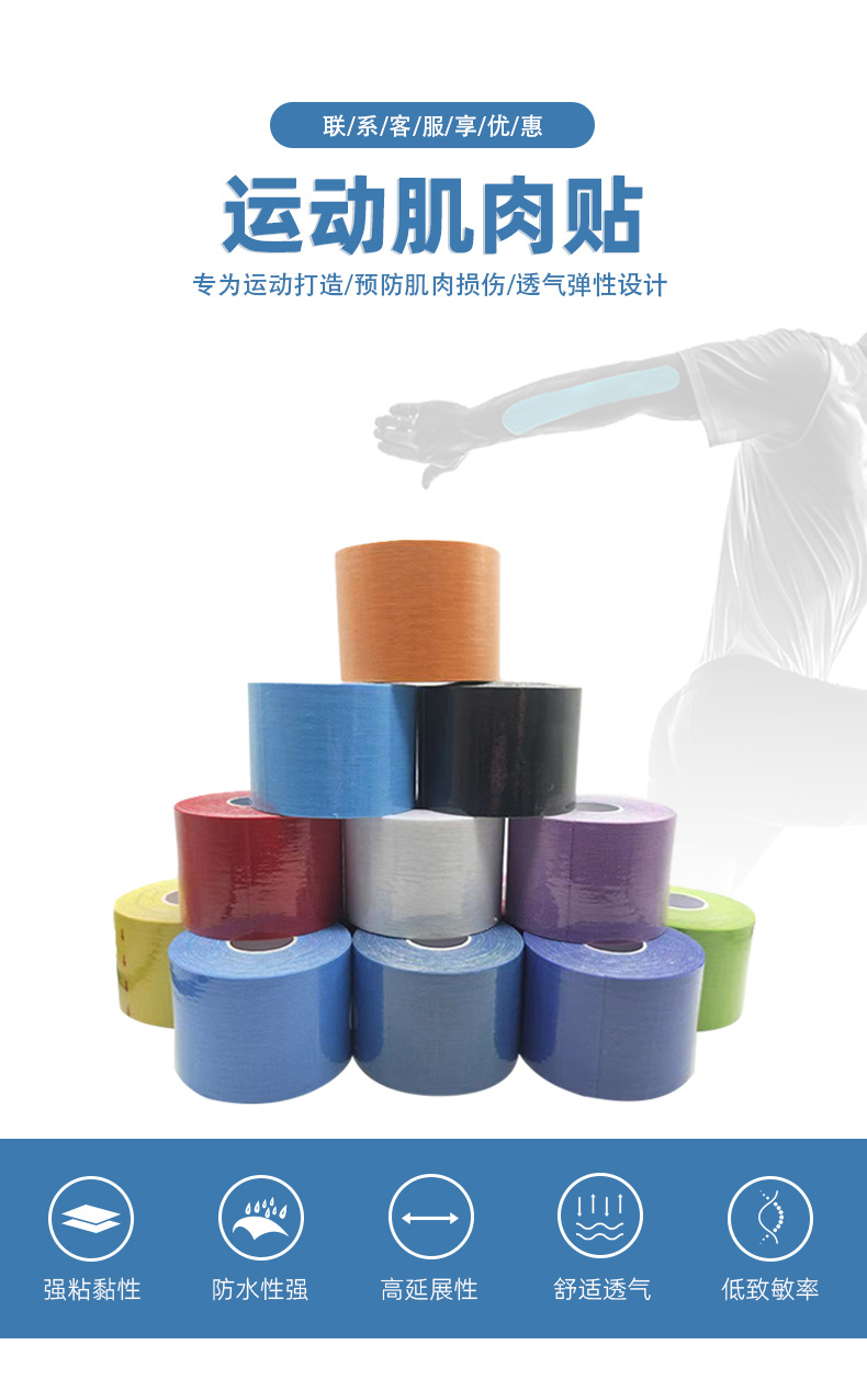 跨境 肌肉贴 运动胶带肌贴运动绷带肌内效贴布护膝弹力绷带 胸贴
