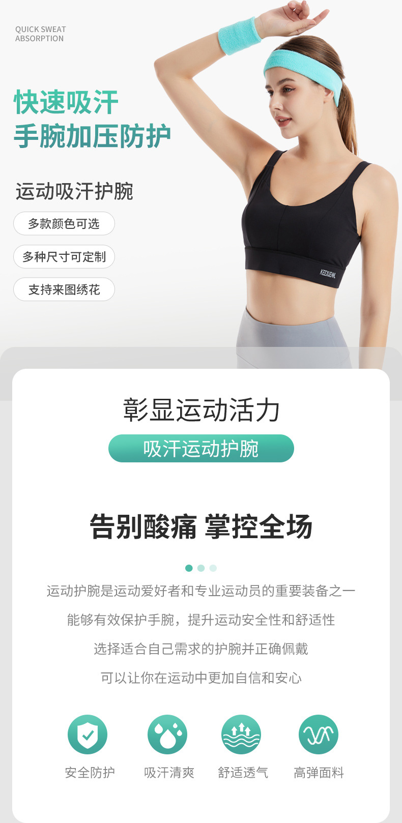 运动吸汗护手棉质篮球羽毛球腕带健身跑步扭伤防护关节毛巾护腕
