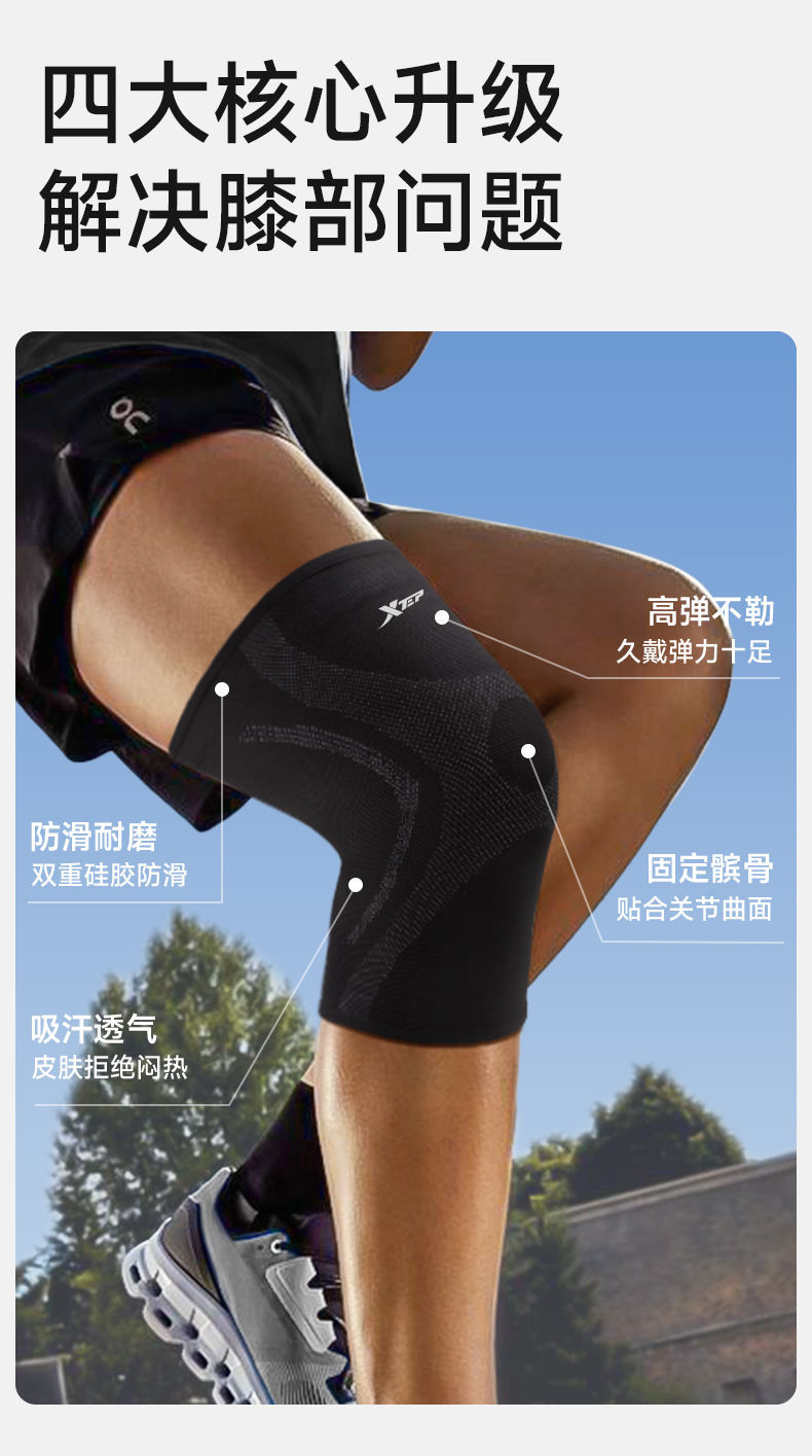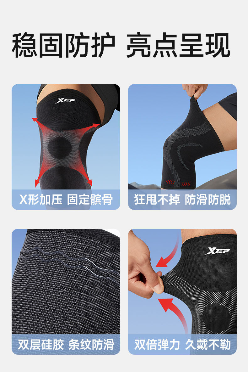 特步正品运动护膝男篮球跑步专业减震运动专用加压防滑膝盖关节