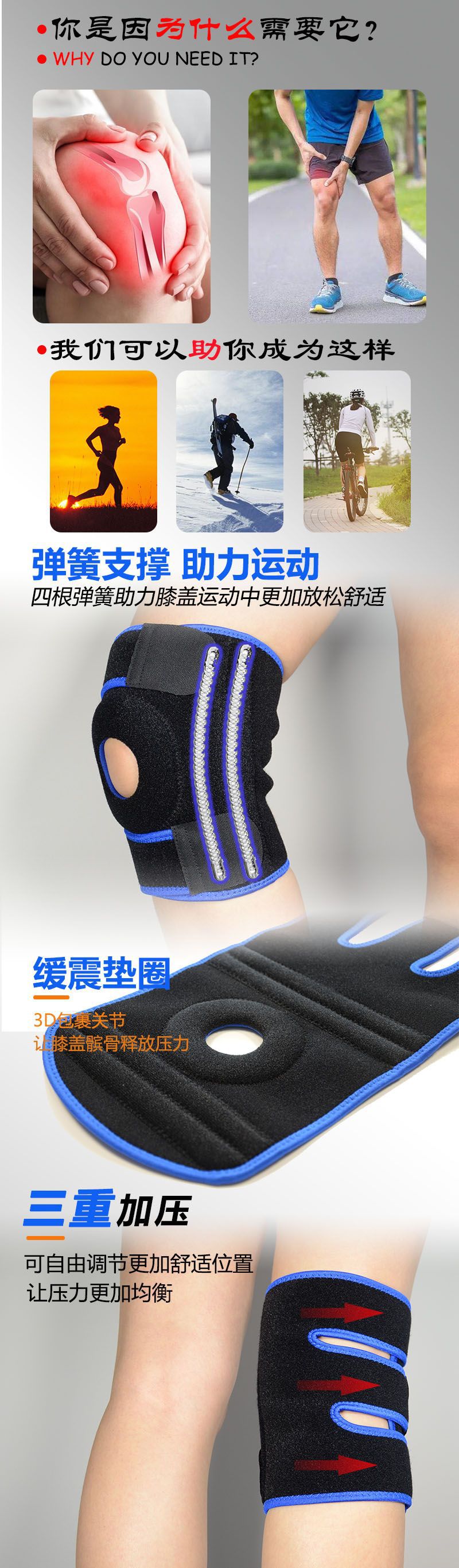 运动弹簧支撑护膝男女跑步登山骑行膝盖防护潜水料防震加压护膝