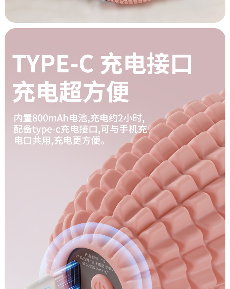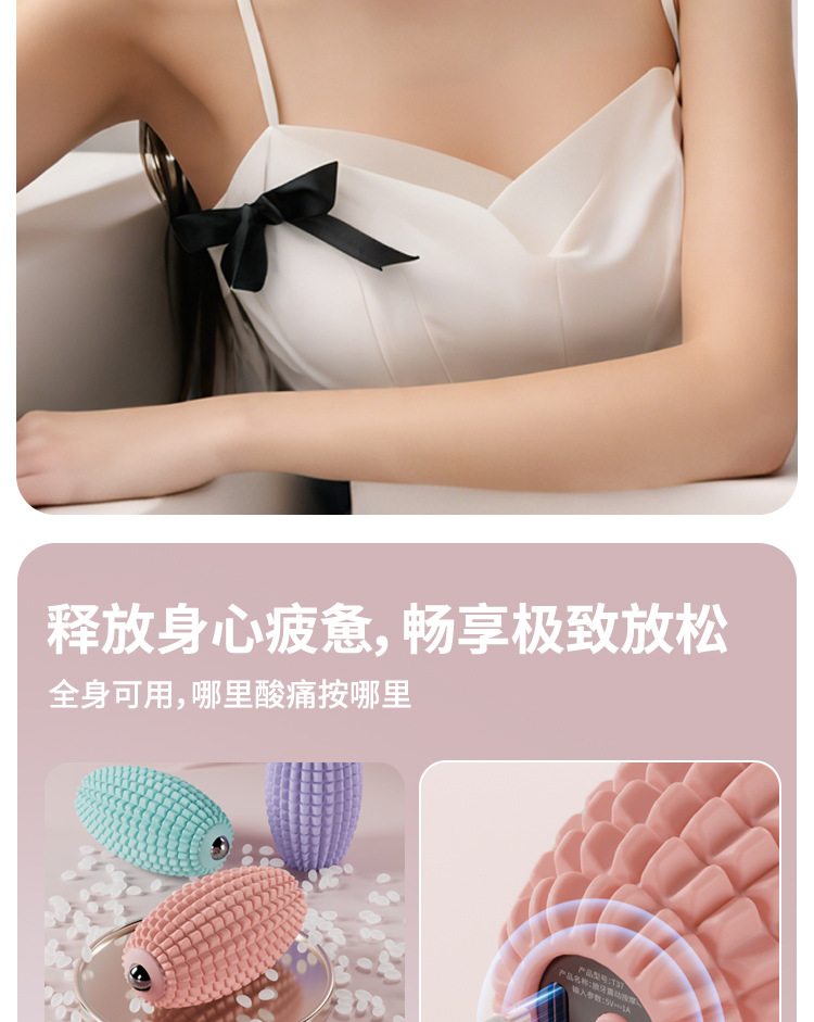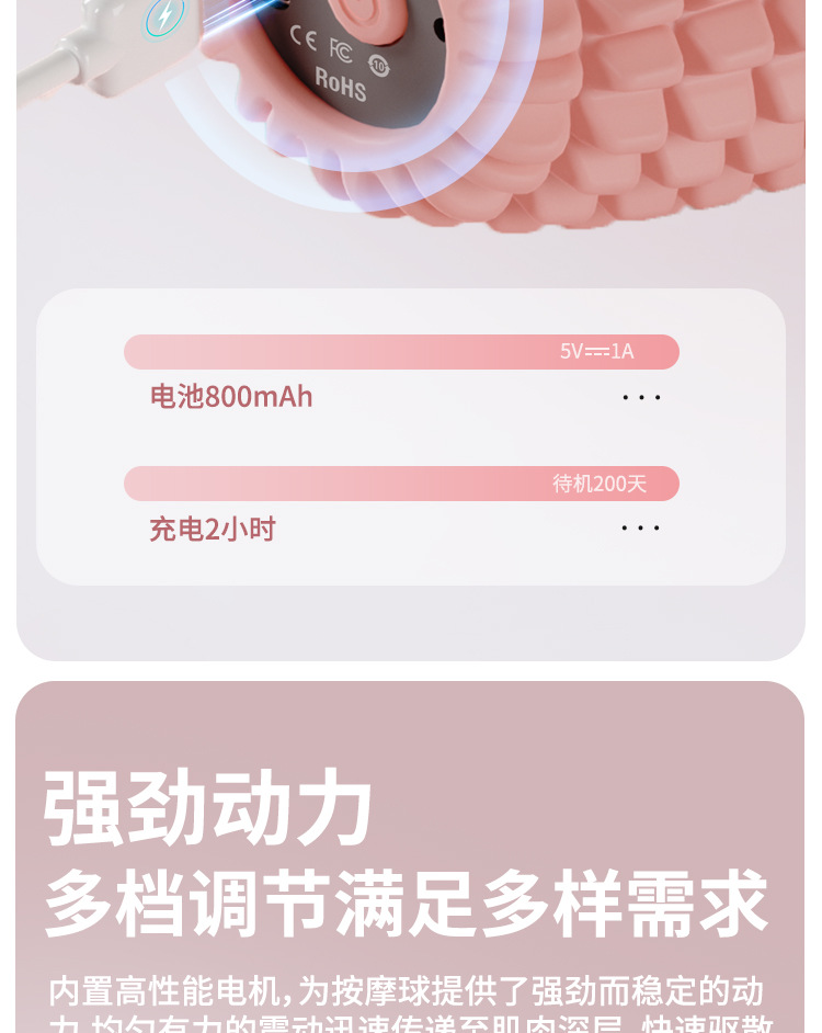 电动筋膜球足底按摩健身运动瑜伽锻炼多挡调节腰背颈肩硅胶按摩球