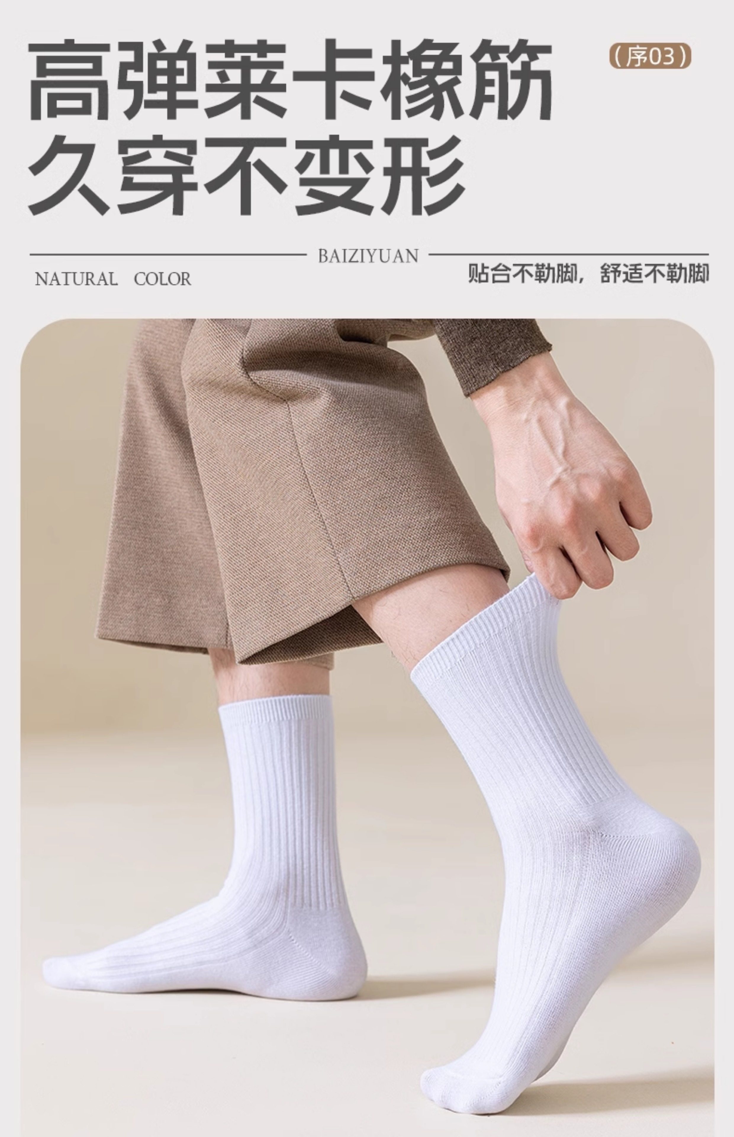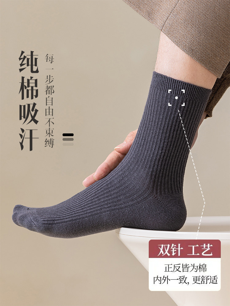 男士袜子纯棉吸汗防臭中筒袜春秋男袜运动黑白色夏季薄款男短袜子
