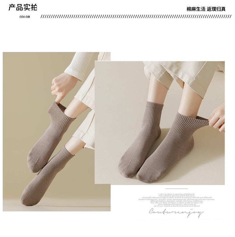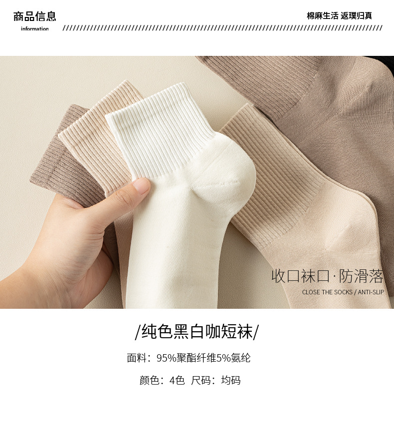 袜子女春夏新款纯色短筒袜无骨袜子吸汗透气中筒袜运动袜休闲百搭