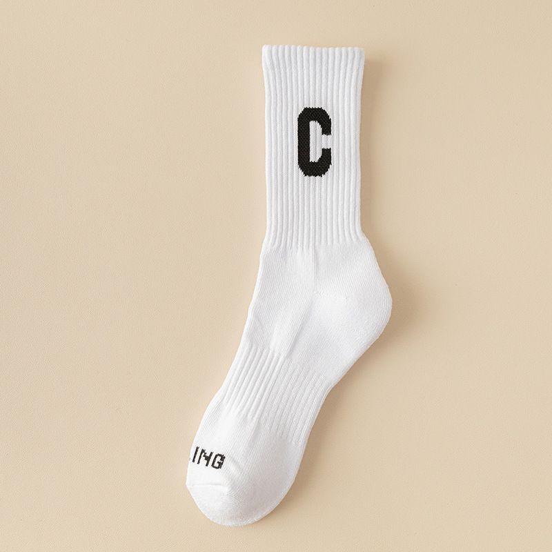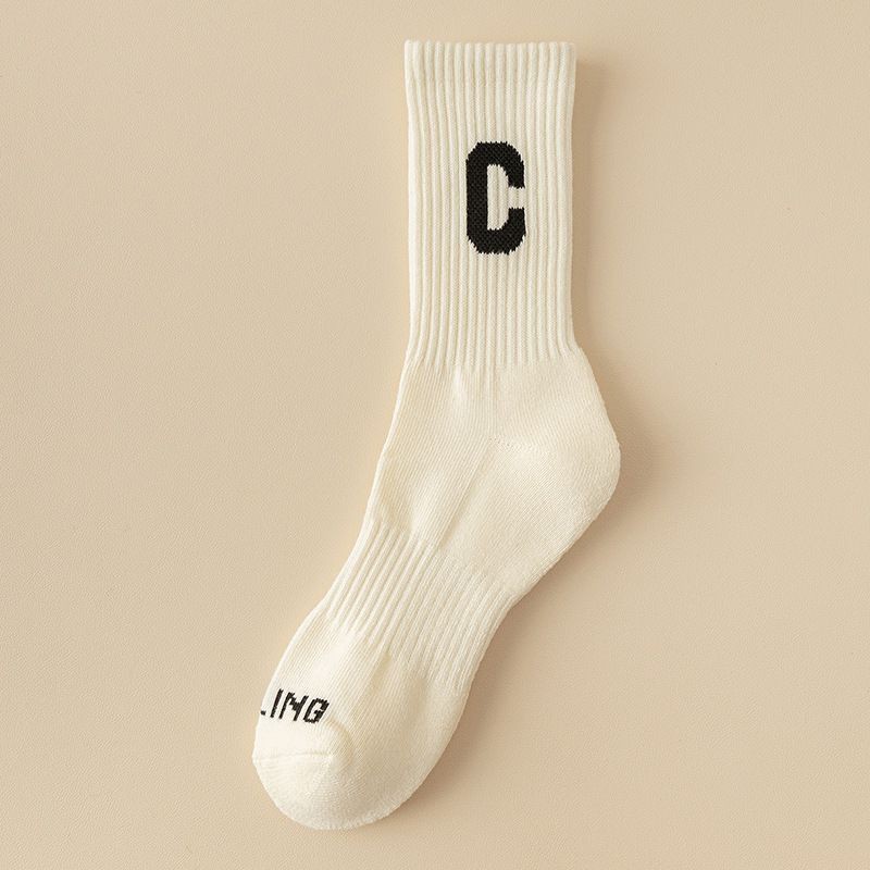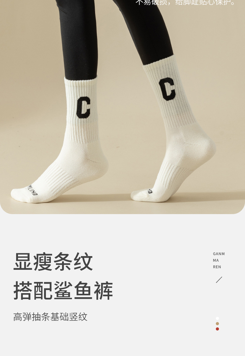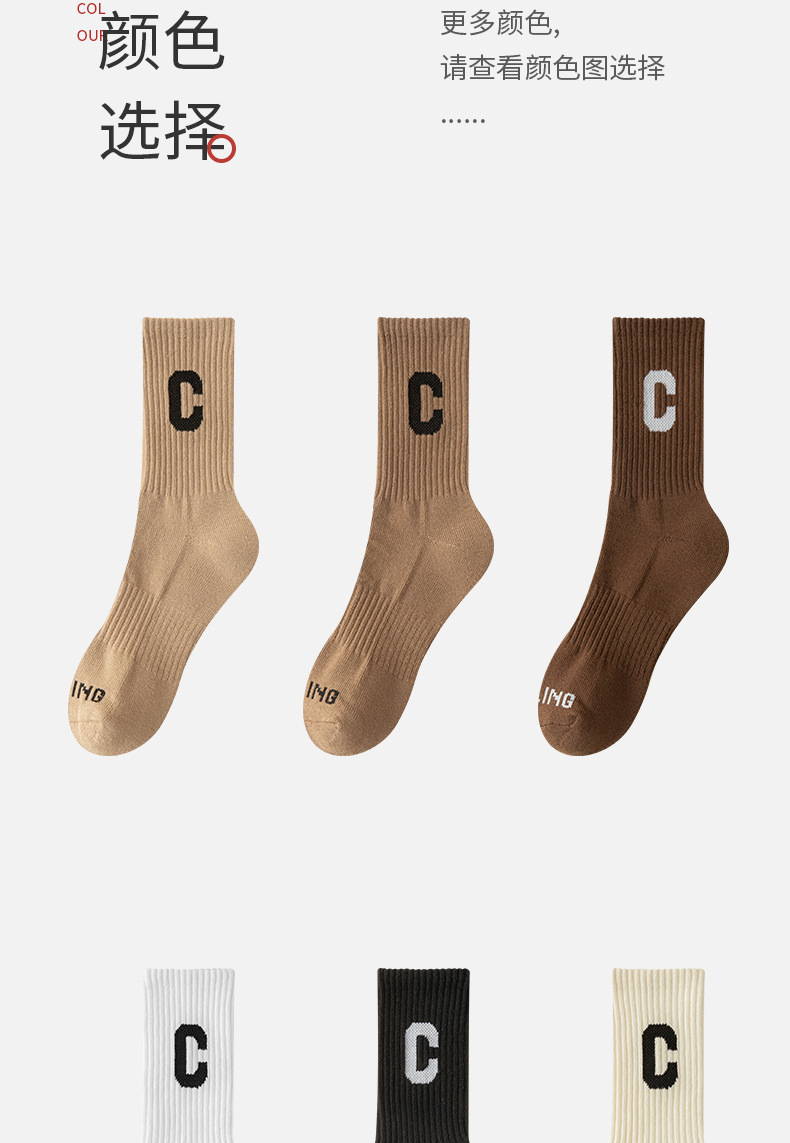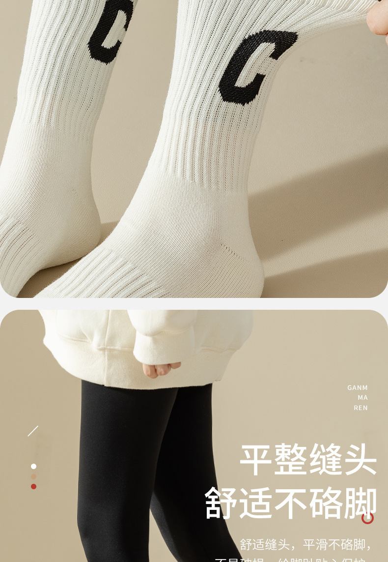 袜子女中筒袜秋冬季毛圈加厚保暖C字母网红款搭配鲨鱼裤运动长袜