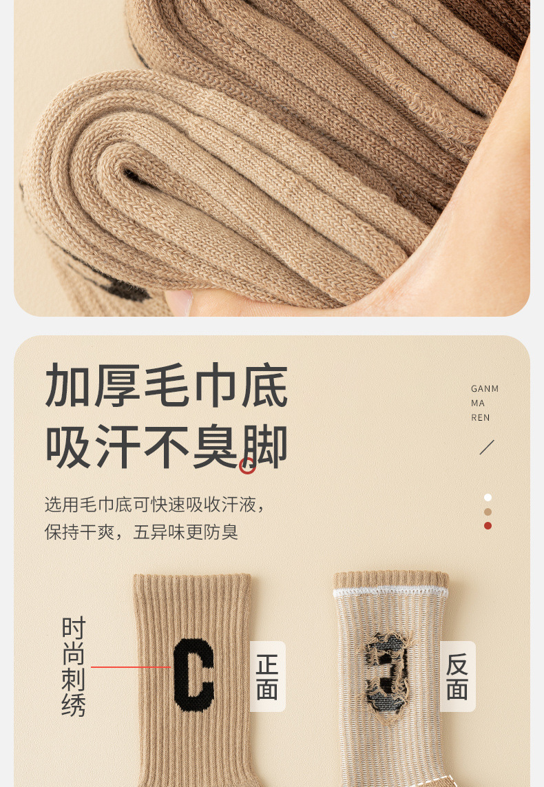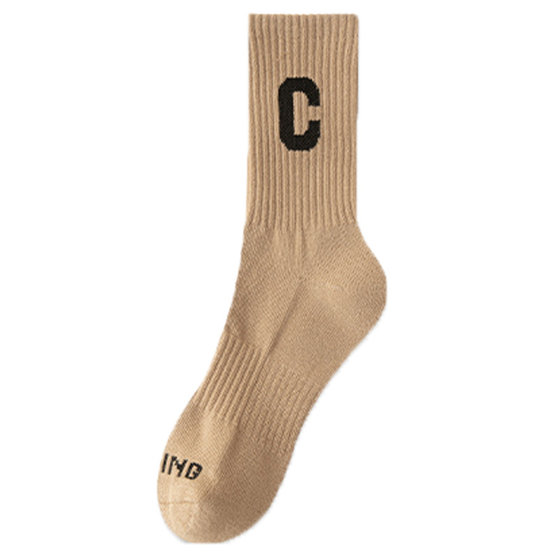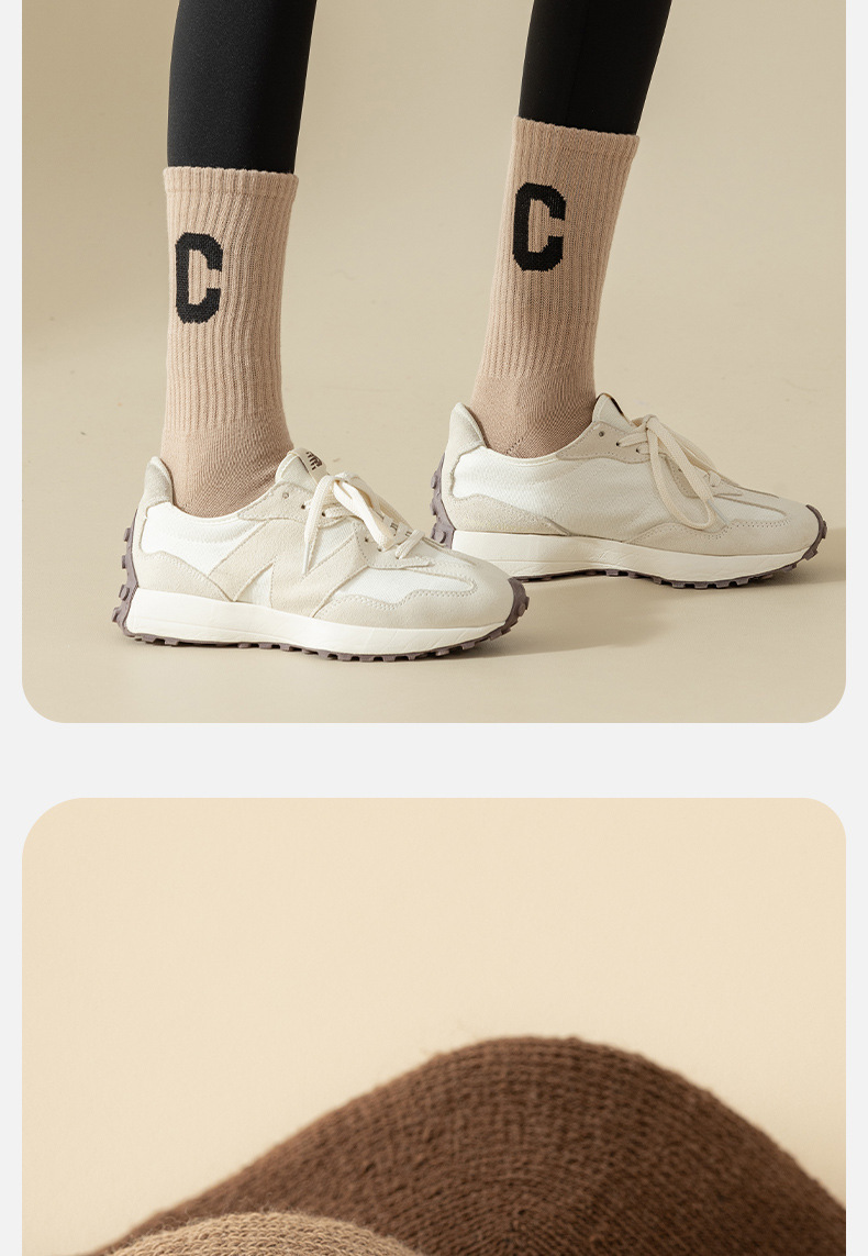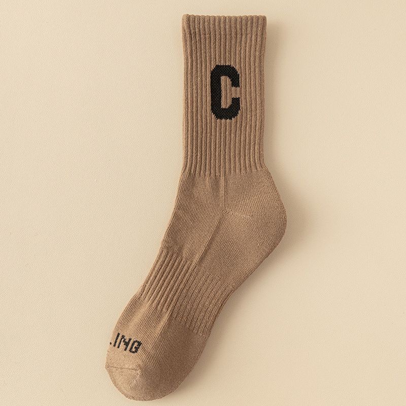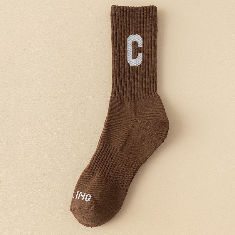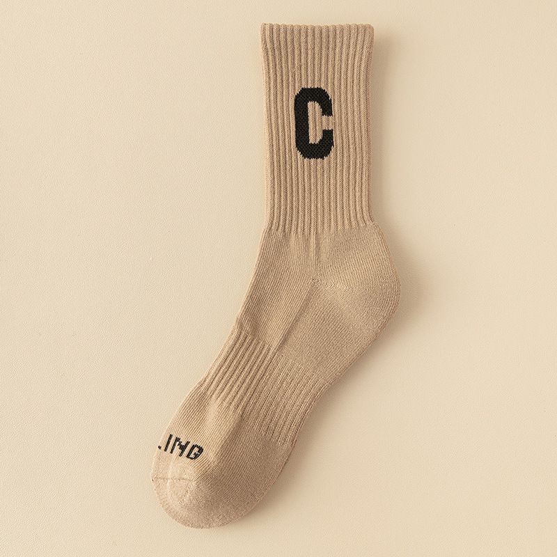 袜子女中筒袜秋冬季毛圈加厚保暖C字母网红款搭配鲨鱼裤运动长袜