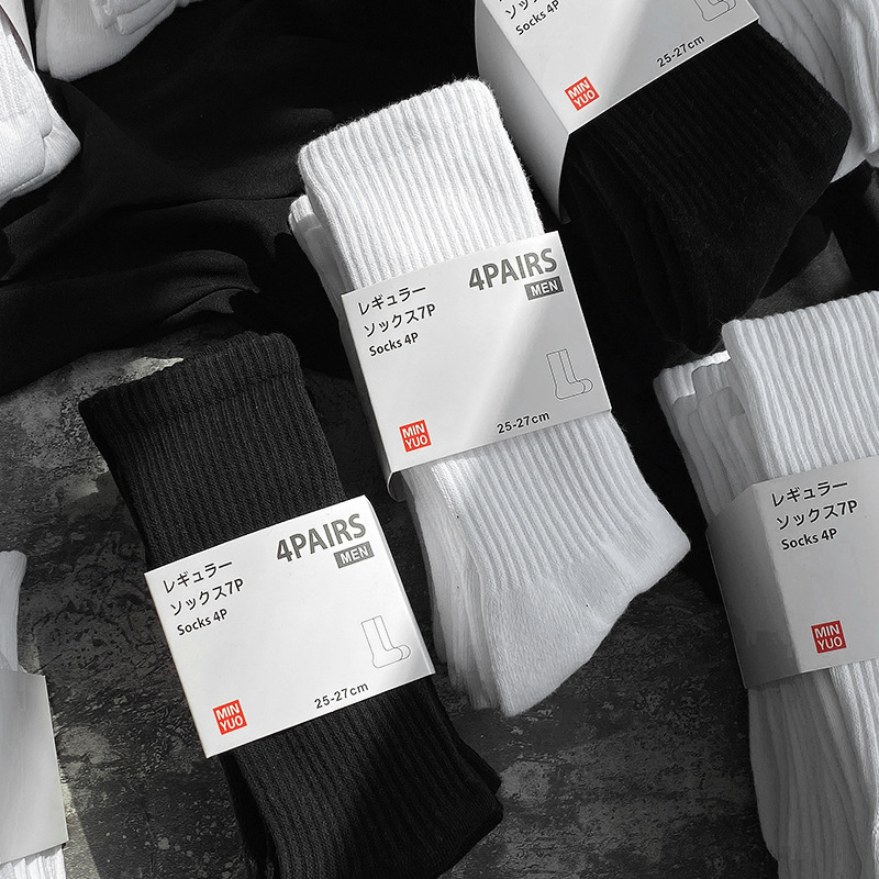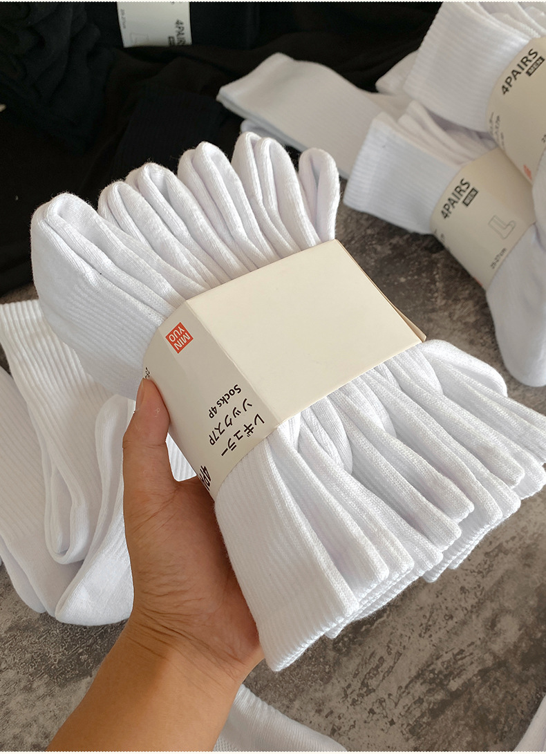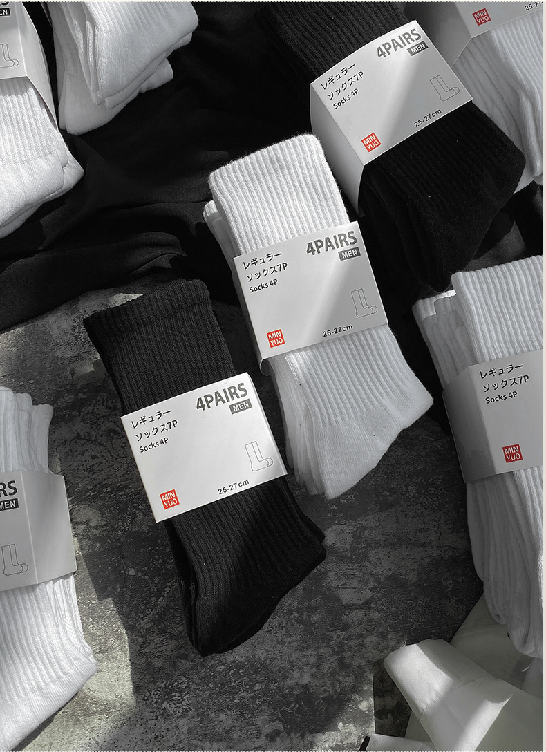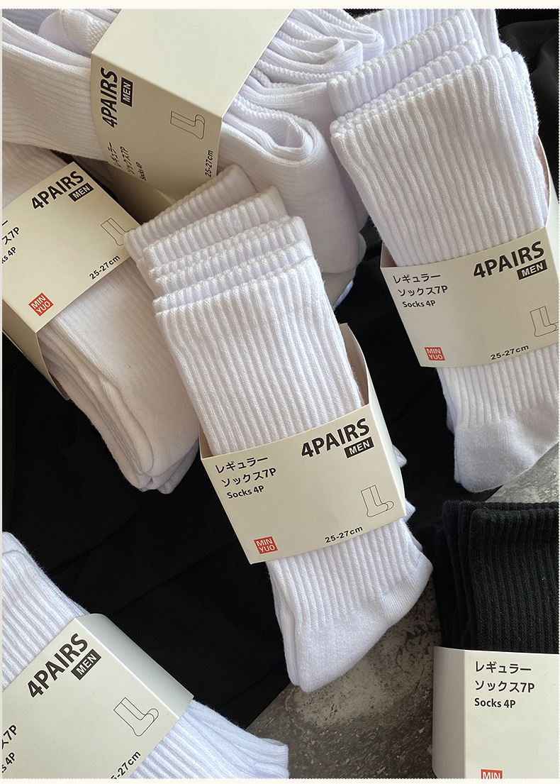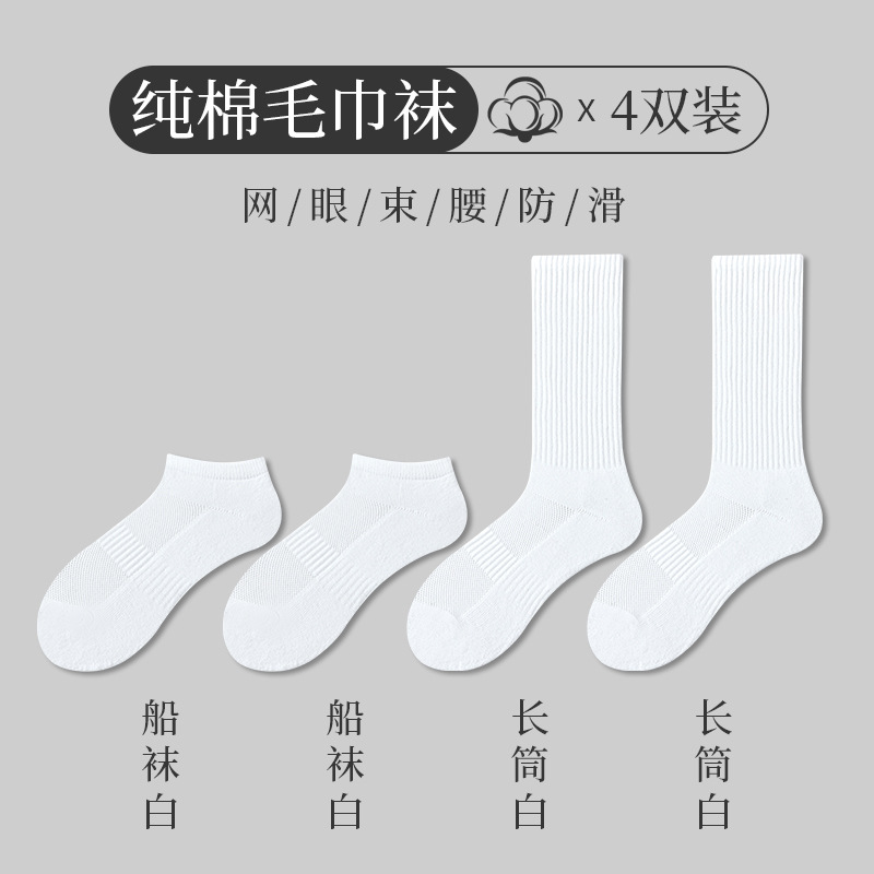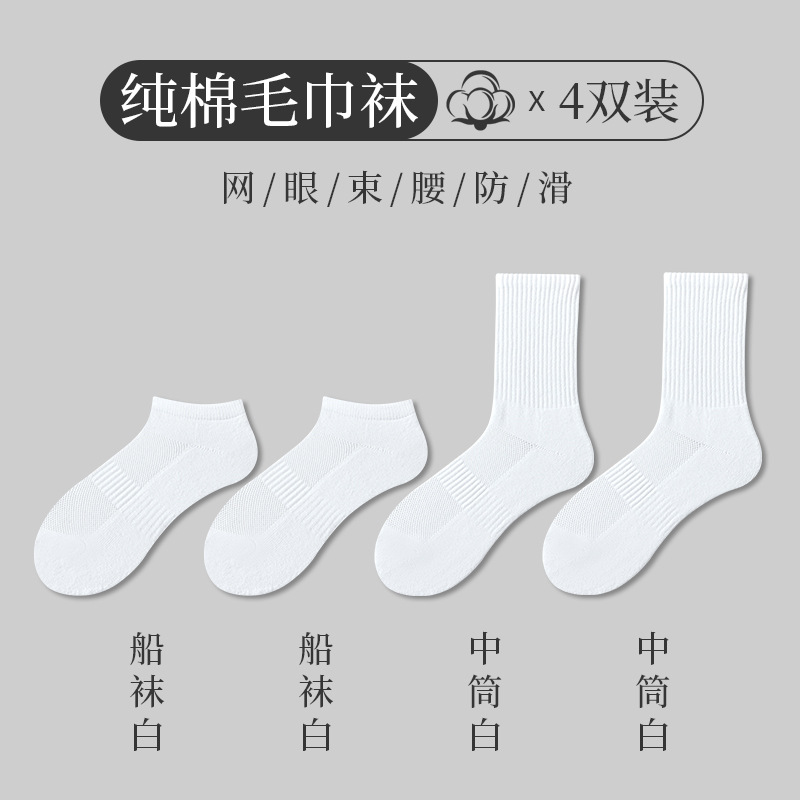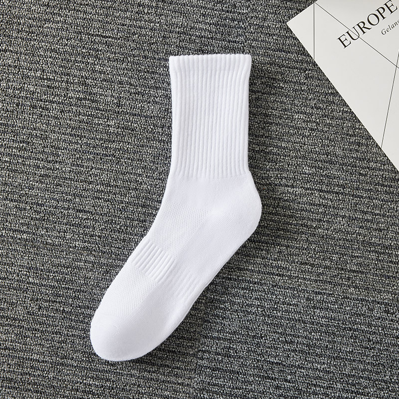 优家白色毛巾底袜子男中筒袜春秋款纯棉透气专业运动潮流风小白袜
