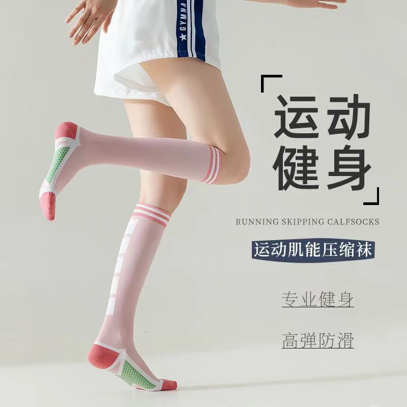 袜子女士春夏款防臭吸汗运动棉袜跑步小腿袜压力长筒袜女诸暨袜业