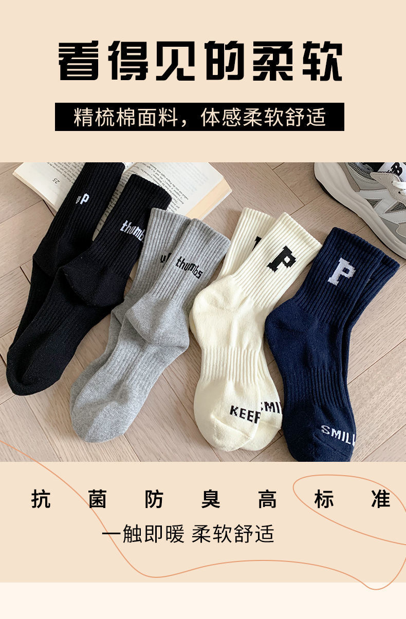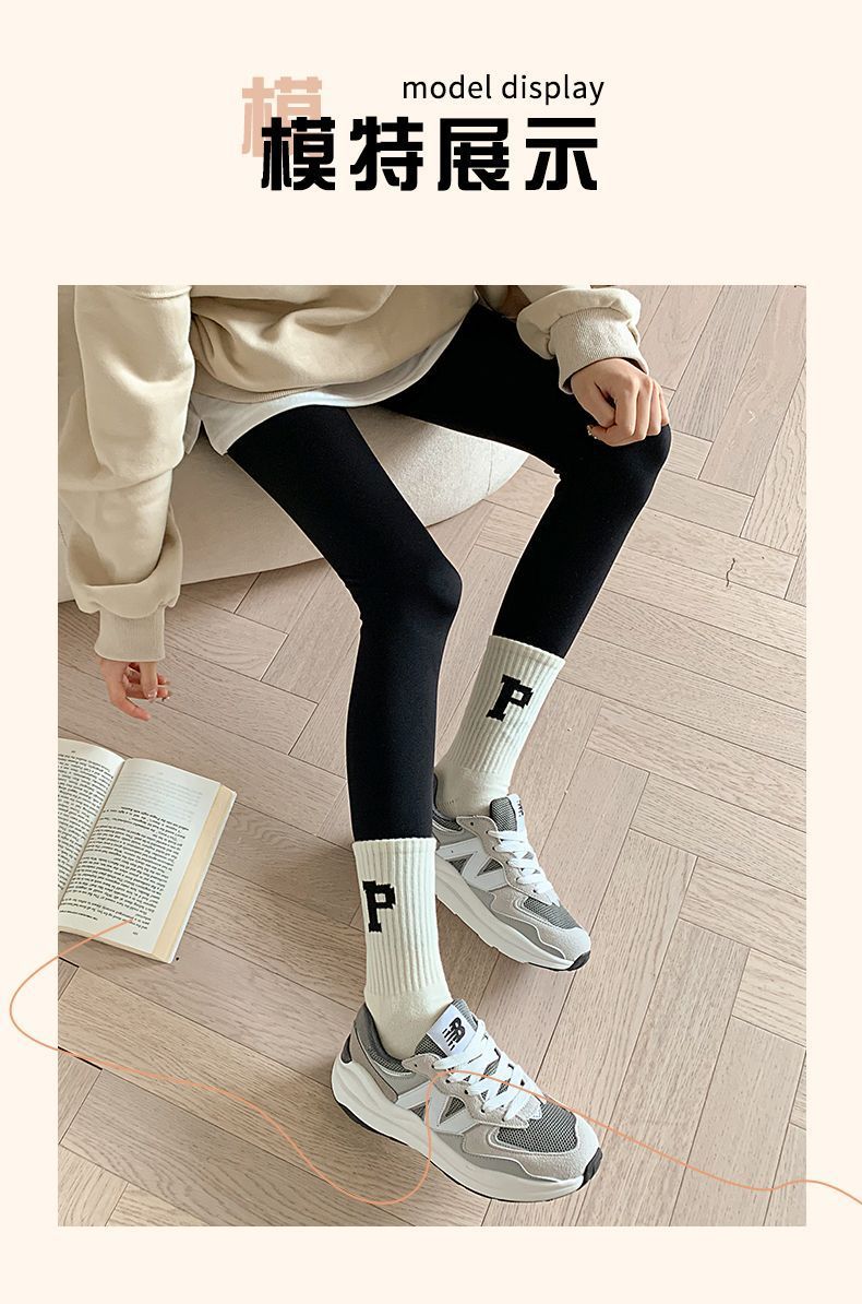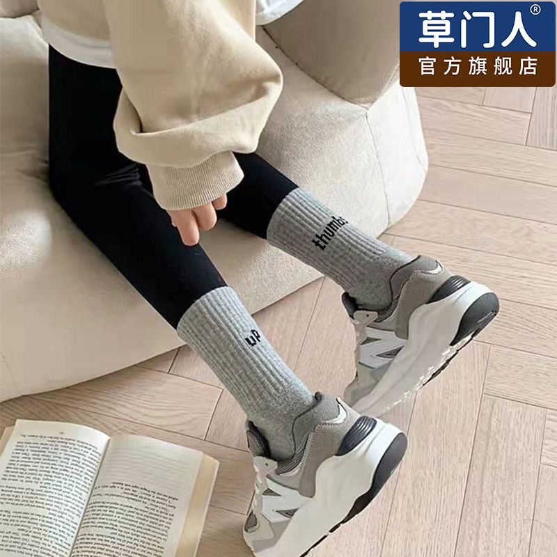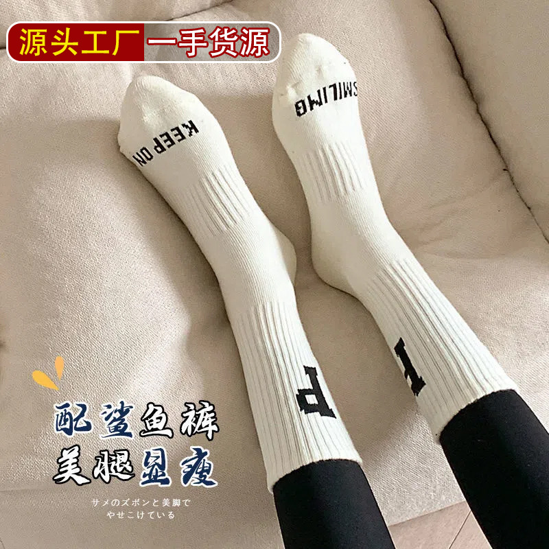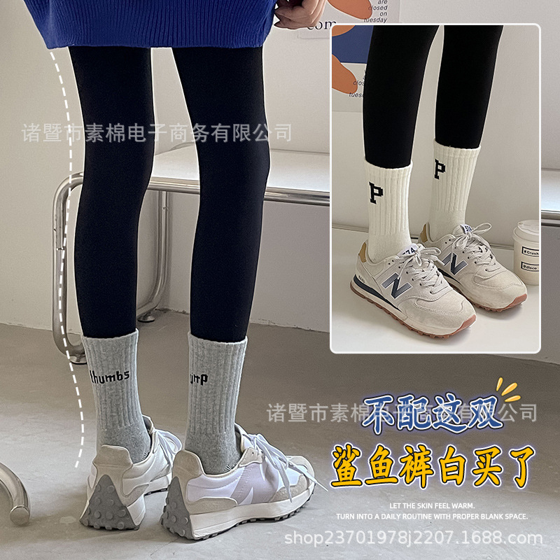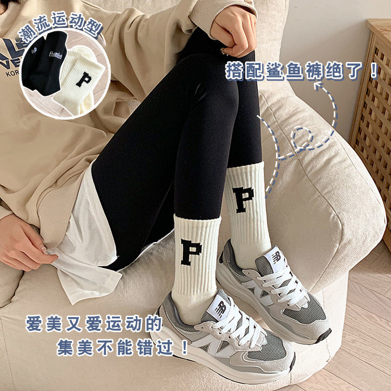 袜子女士夏季薄款中筒春秋纯棉秋冬季鲨鱼裤外穿潮运动百搭长筒袜