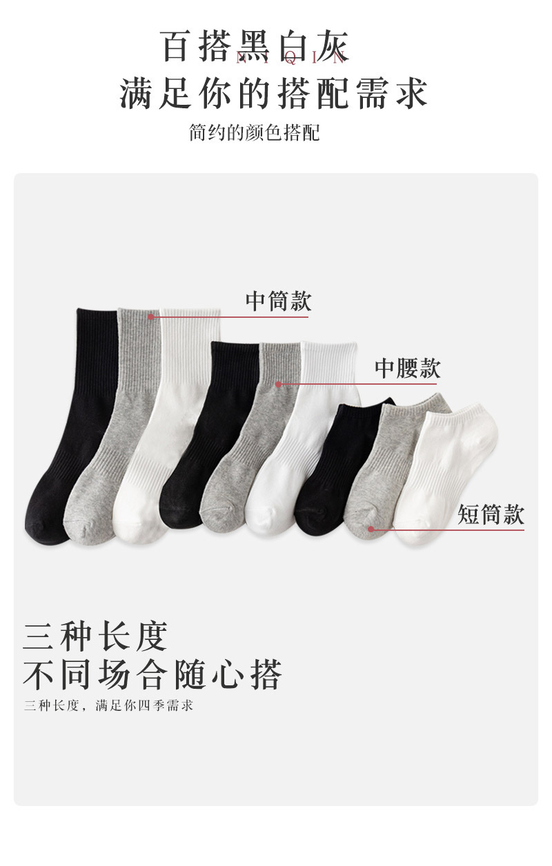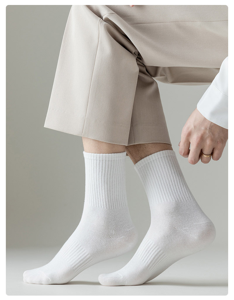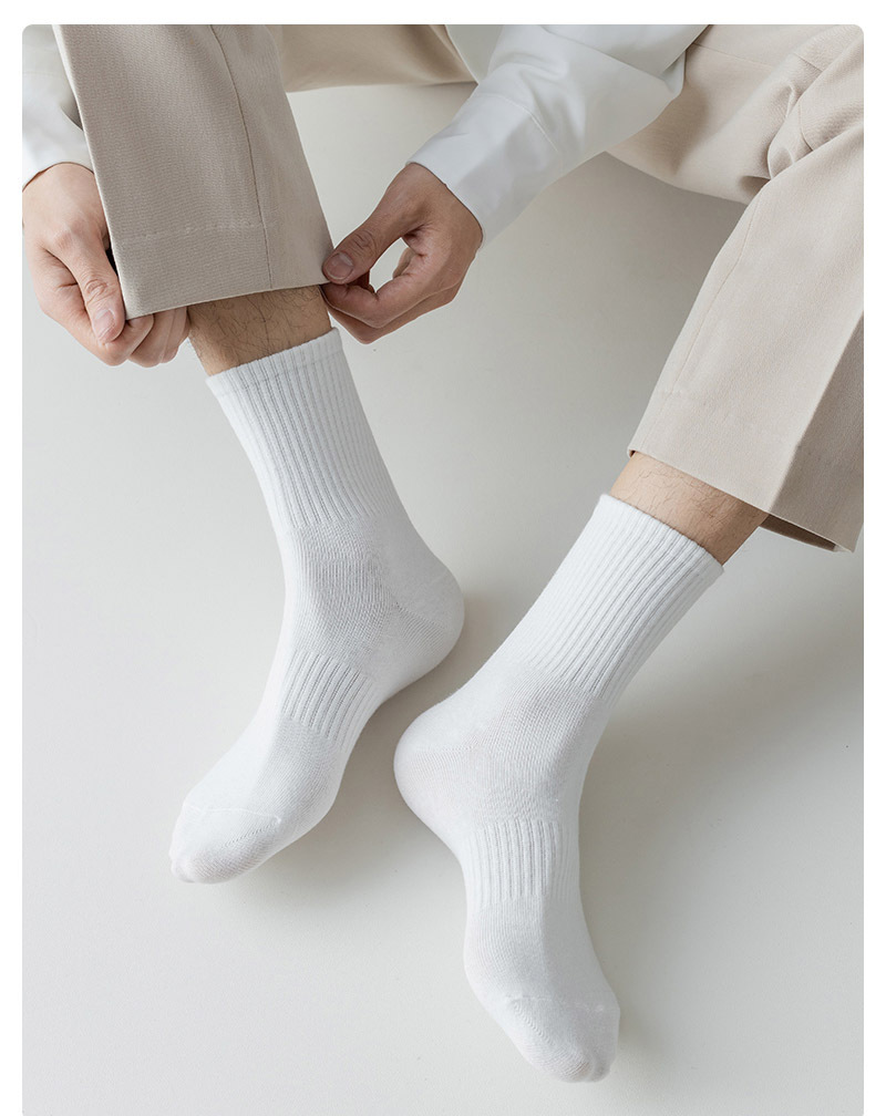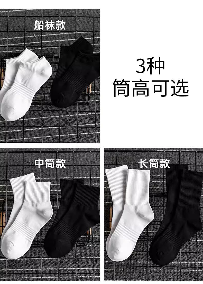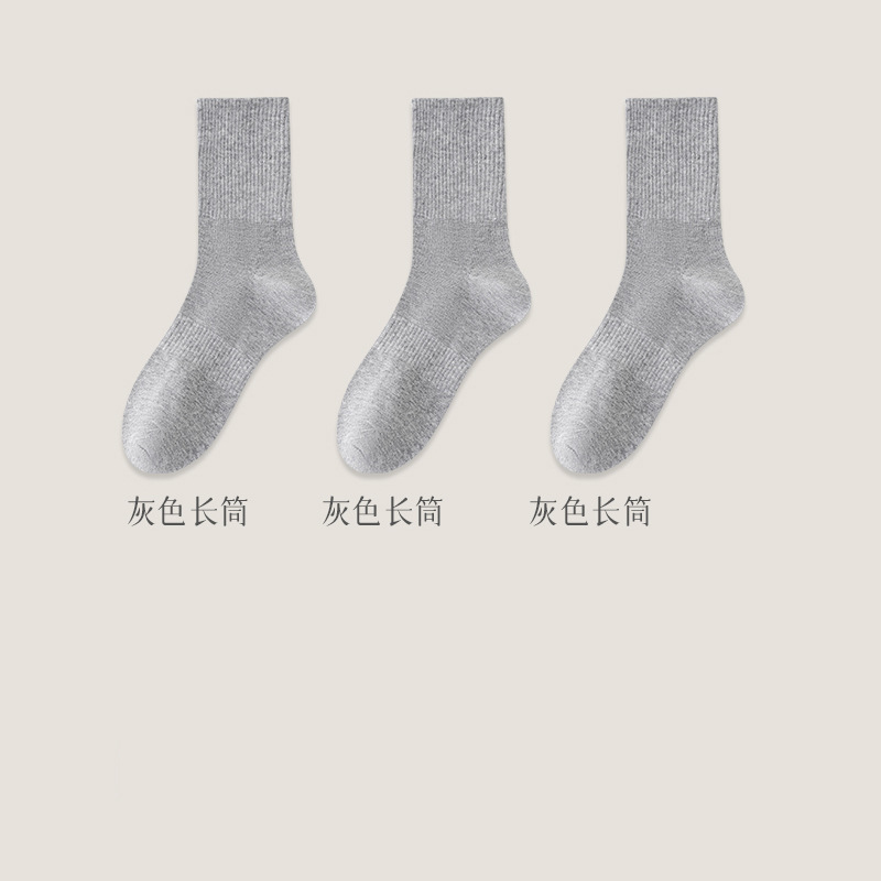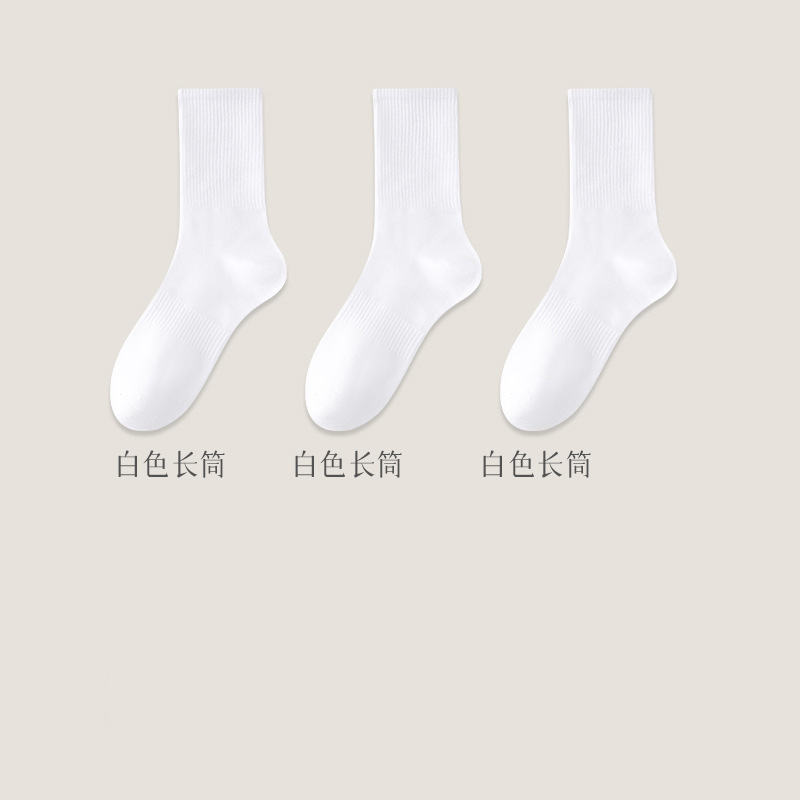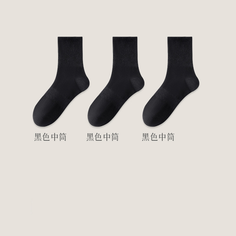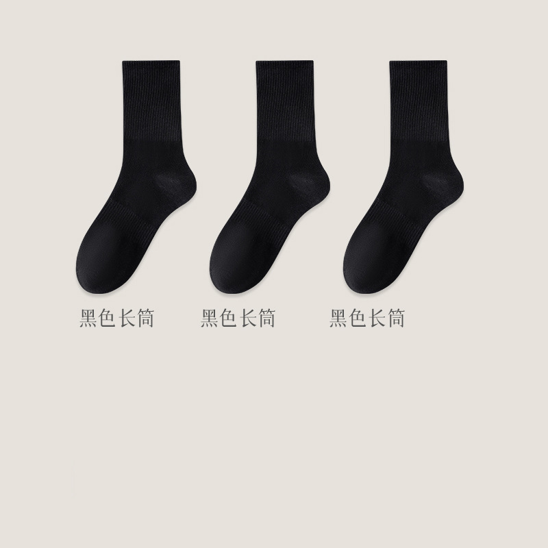 黑白袜子男士秋季中筒纯色棉底防臭长袜加厚秋冬加厚运动长筒袜男