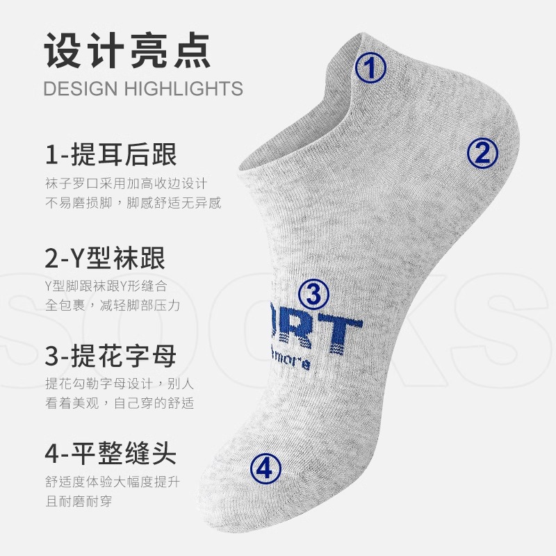 运动袜子男士夏季纯棉短袜防臭吸汗透气青少年夏天薄款跑步袜诸暨