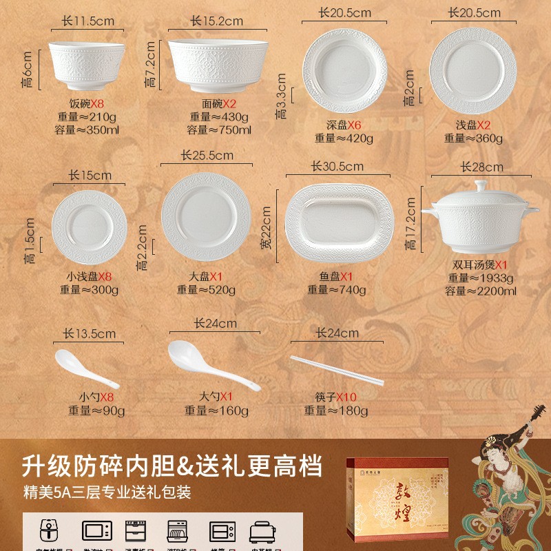 故宫文创景德镇陶瓷定制餐具套装高级感碗碟套装家用乔迁节日礼品