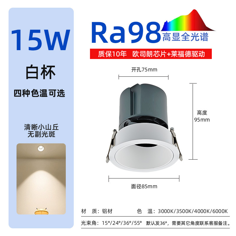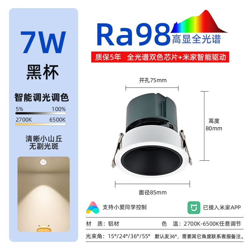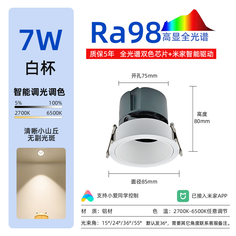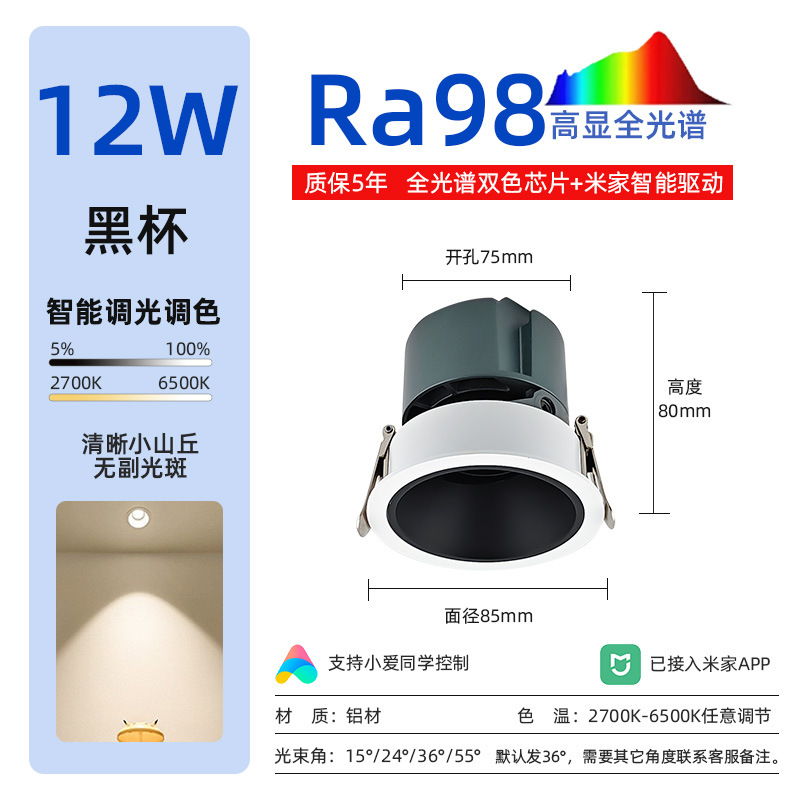 全光谱98显洗墙射灯家用客厅深防眩米家智能led射灯嵌入式小山丘