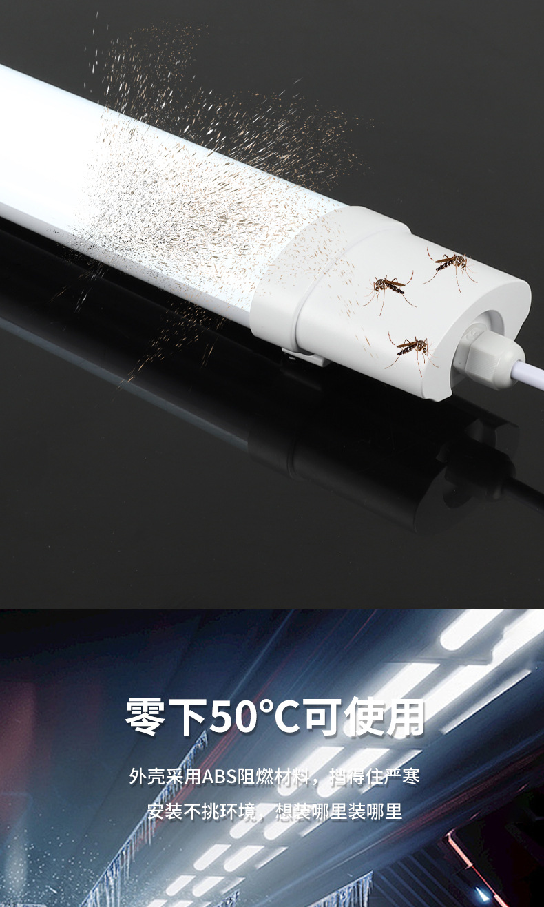 led三防灯IP65户外防水防尘厂房冷库浴室超亮长条灯洗车店照明灯