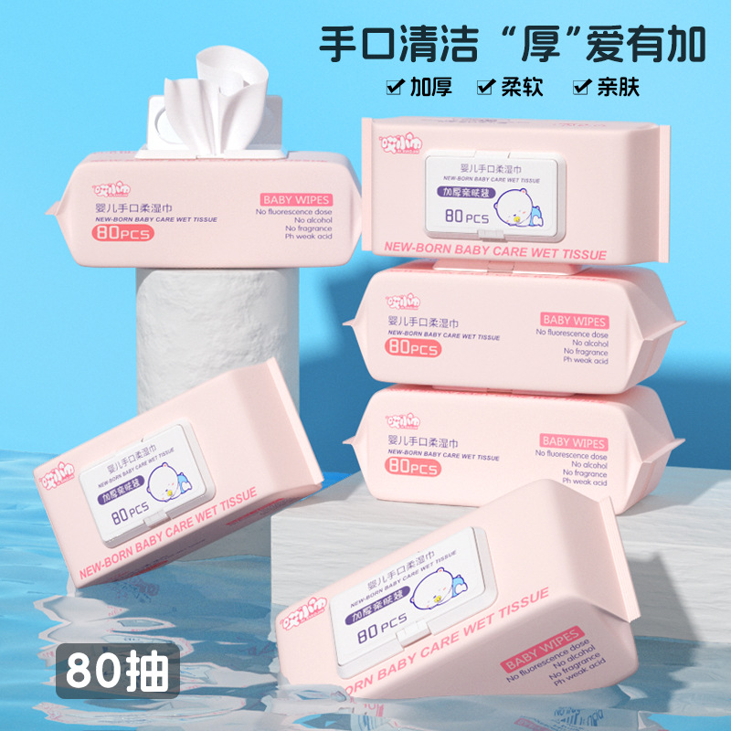 婴儿湿巾新生宝宝手口大包湿纸巾80片装抽取湿巾低价母婴赠品批发