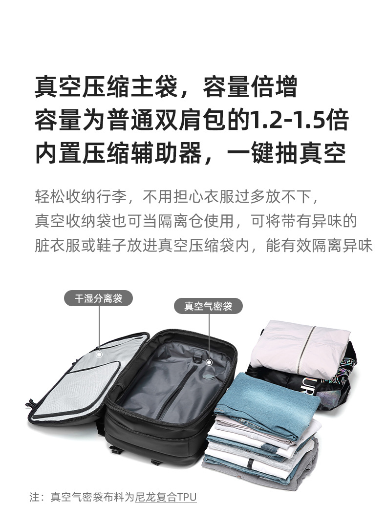 跨境新品男款双肩包多功能商务通勤旅行背包电脑包一键抽真空背包