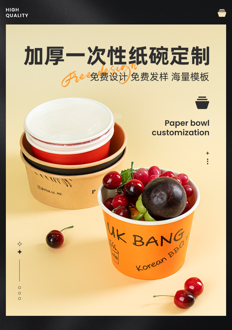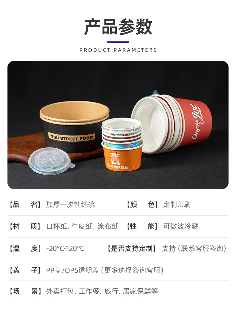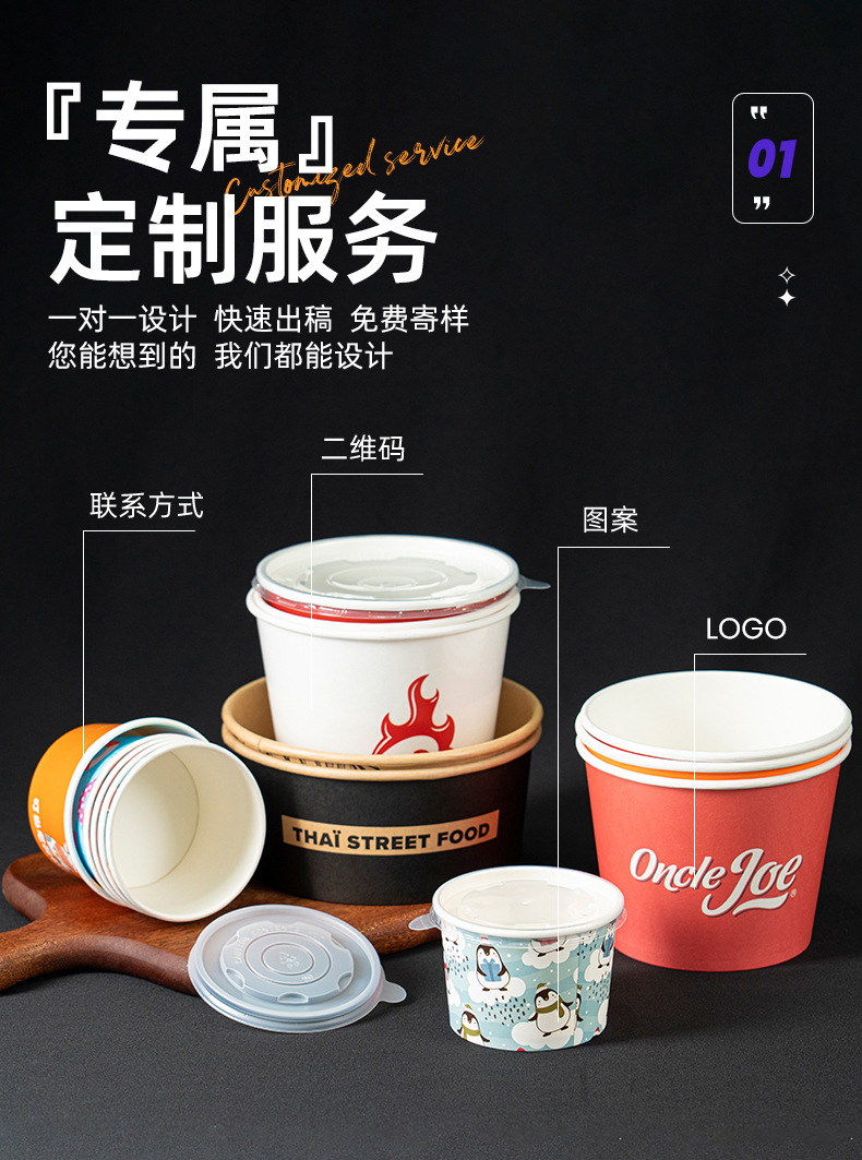 加厚一次性纸碗冰淇淋杯外卖打包餐盒可定制印刷商标logo可配盖
