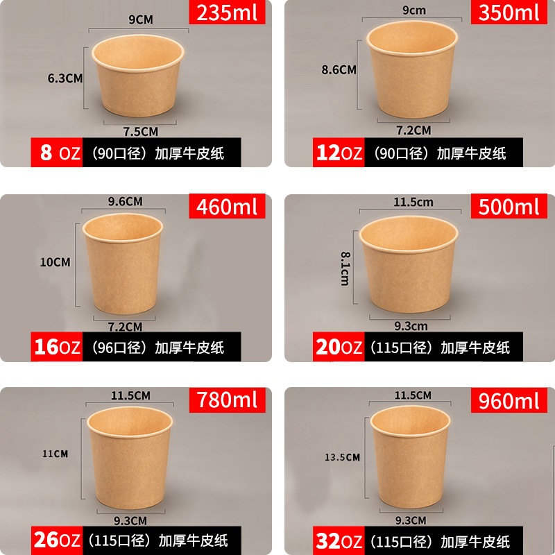 一次性餐盒牛皮纸快餐盒汤桶外卖打包餐盒汤桶圆形加厚饭盒粥桶碗