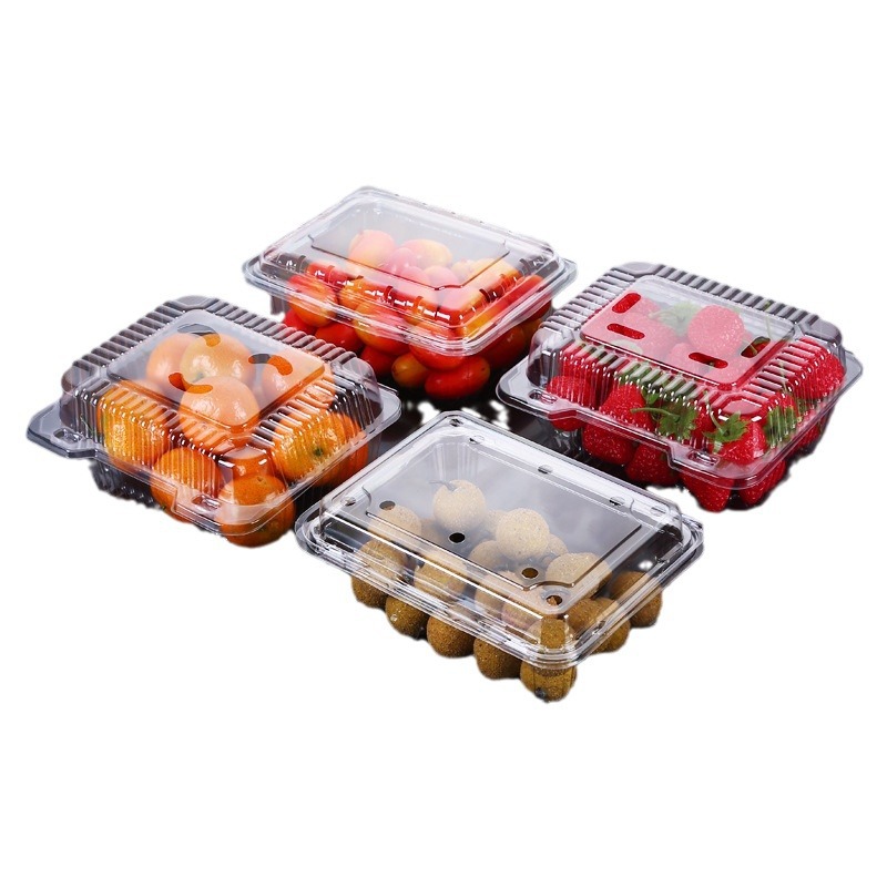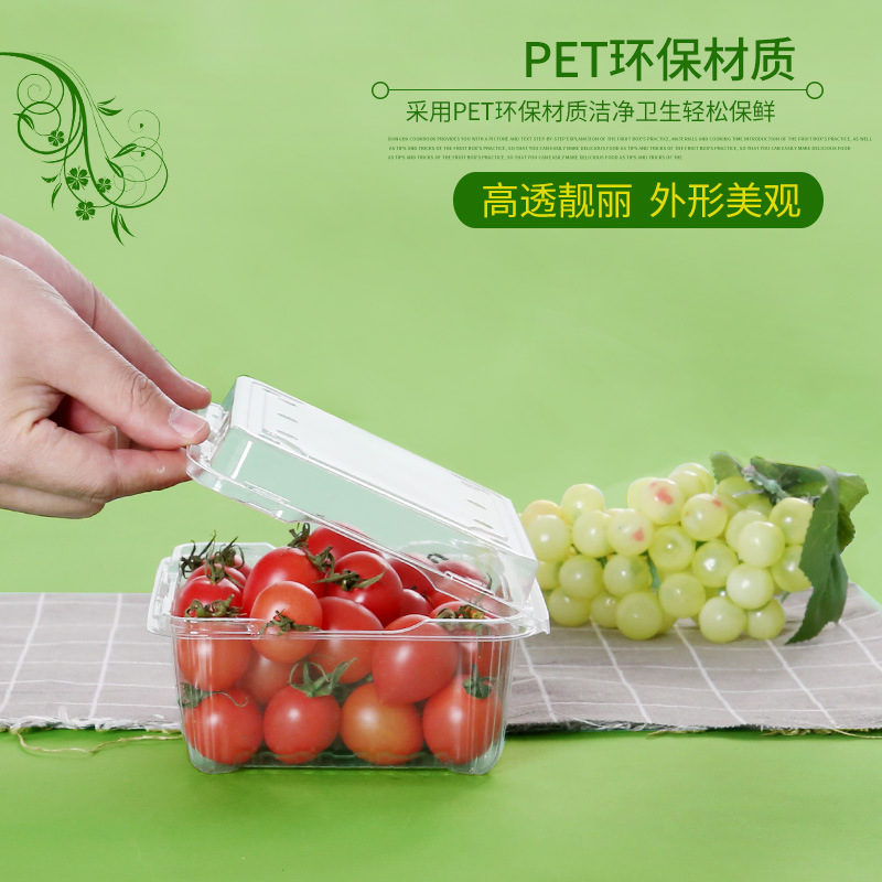 一次性水果包装塑料带盖透明车厘子草莓打包盒长方形果蔬盒餐盒